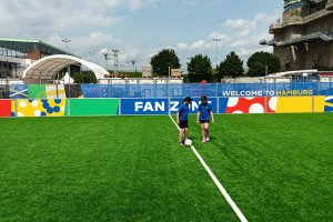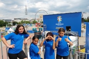 Der karitative Verein Nestwerk e.V. empfing unsere Auswahlen in der beeindruckenden und extra für die Europmeisterschaft geschaffenen Fanzone auf dem Heiligengeistfeld.