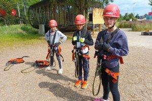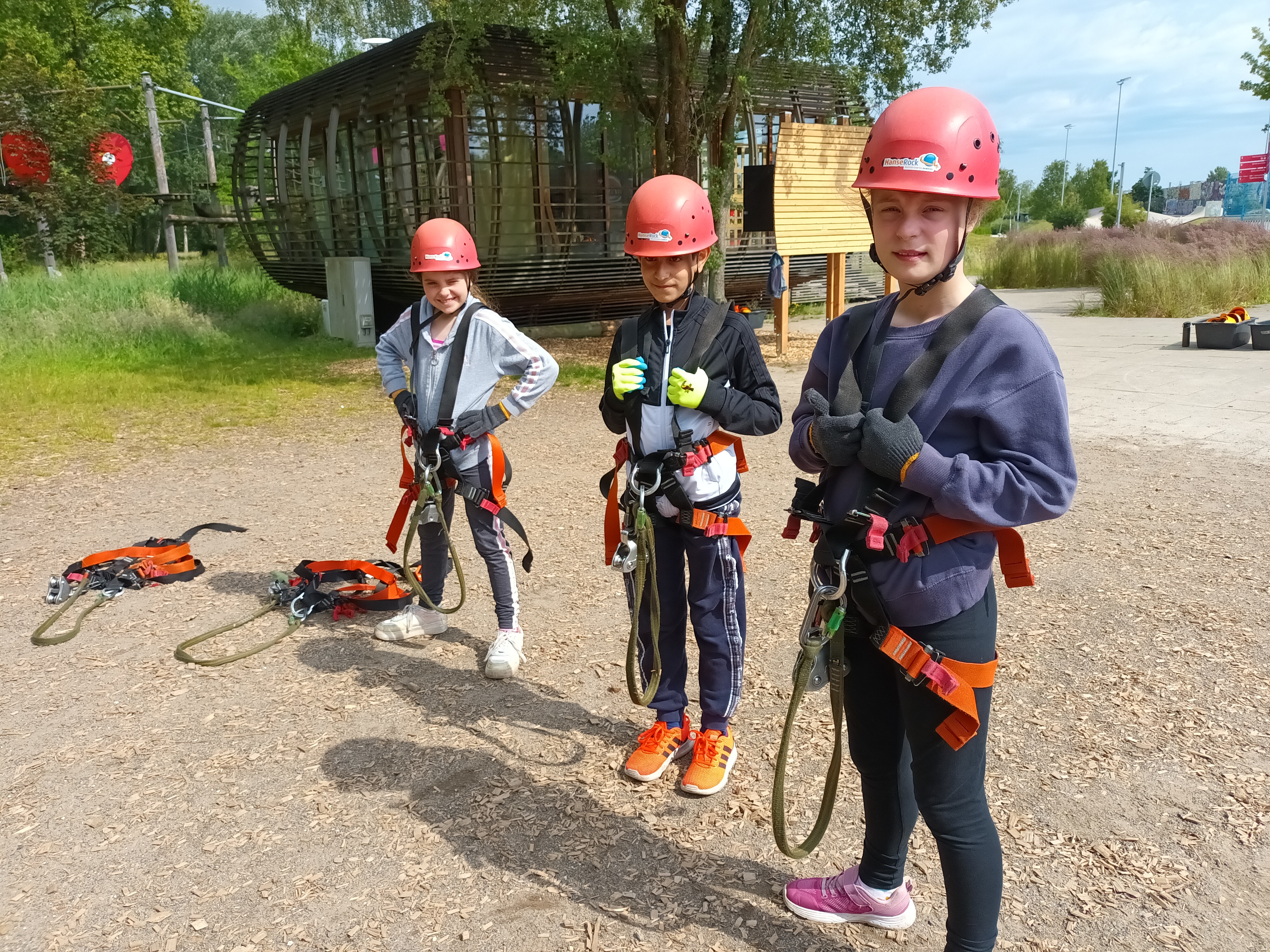 Mut, Selbstvertrauen und Risikobereitschaft: Der Klasse 3a wurde bei ihrem Ausflug in den Hochseilgarten viel abverlangt. Die 17 Mädchen und Jungs machten sich in Begleitung von Frau Brümmer und Herrn Röseler früh morgens auf den langen Weg nach Wilhelmsburg.