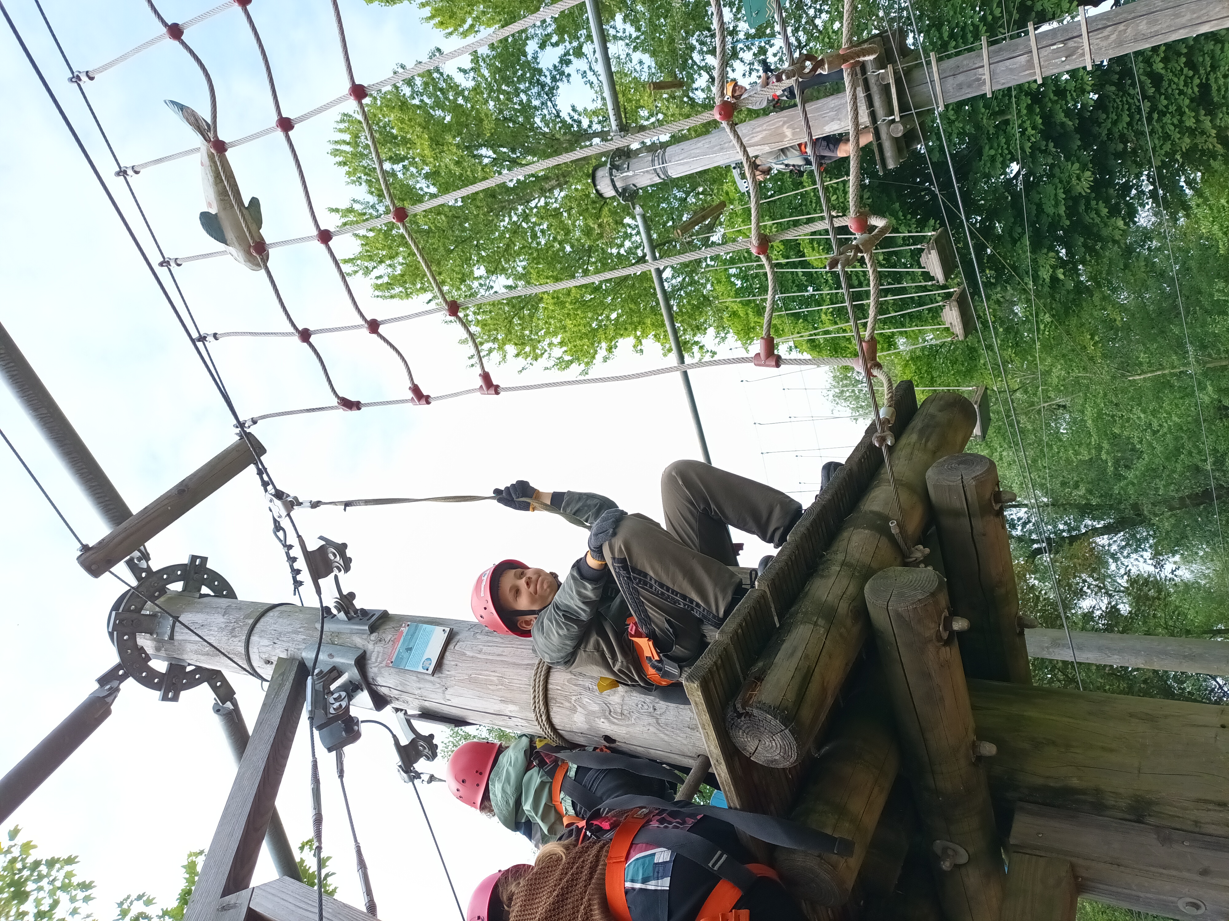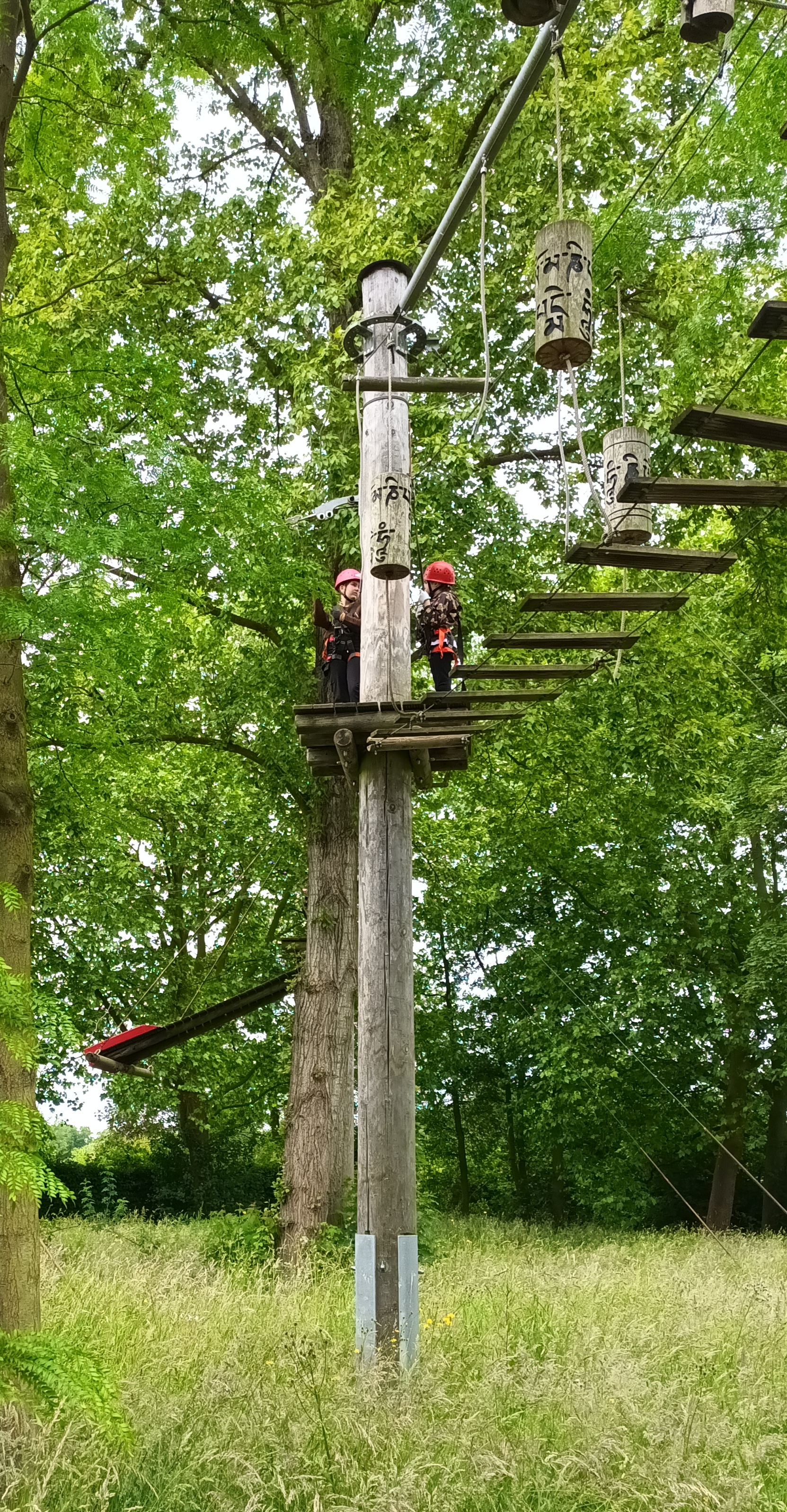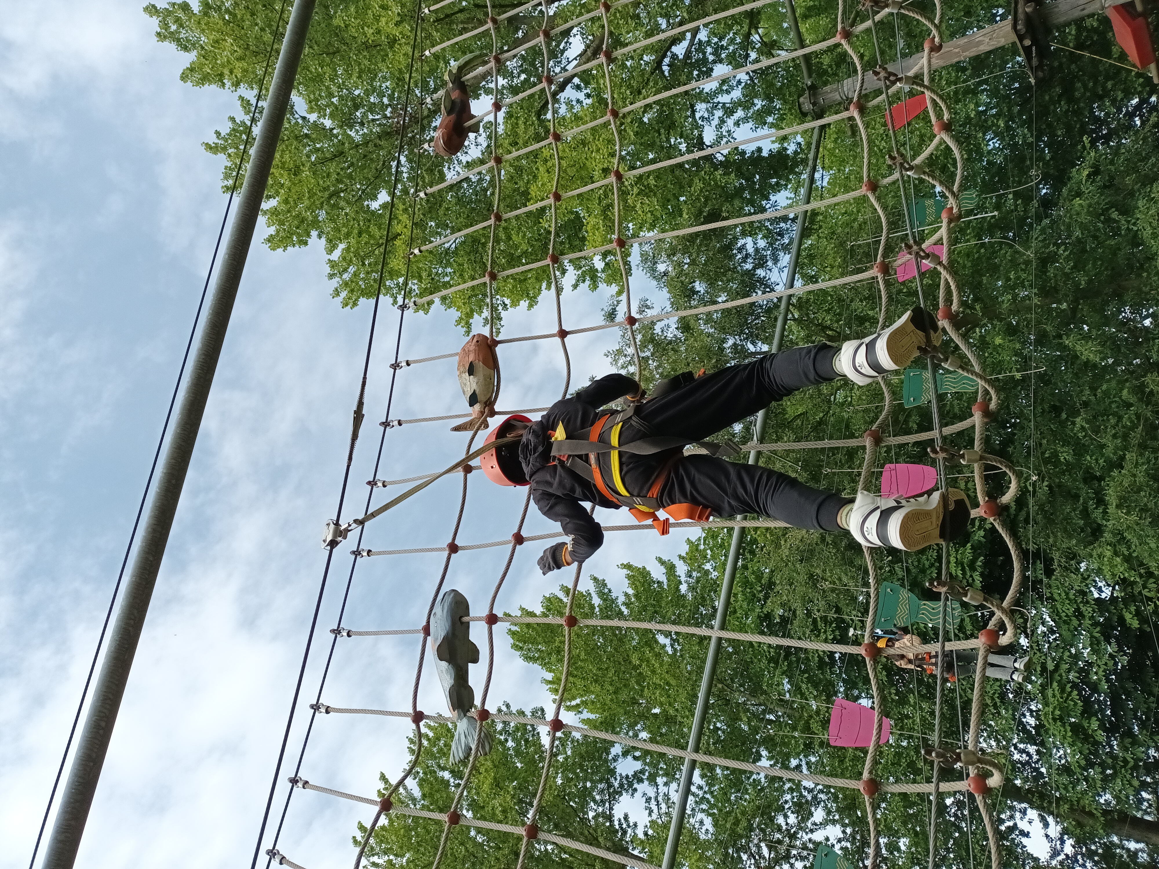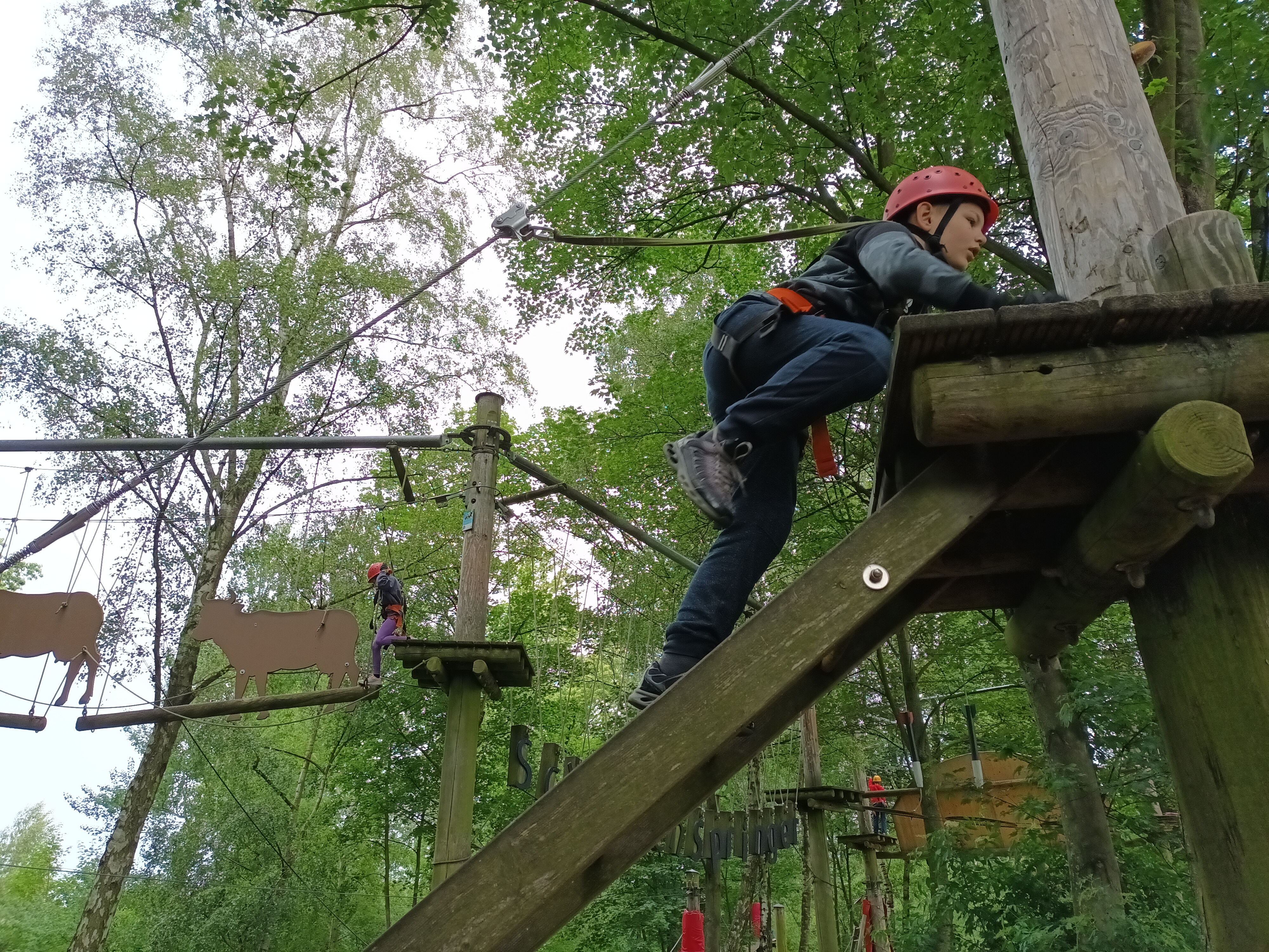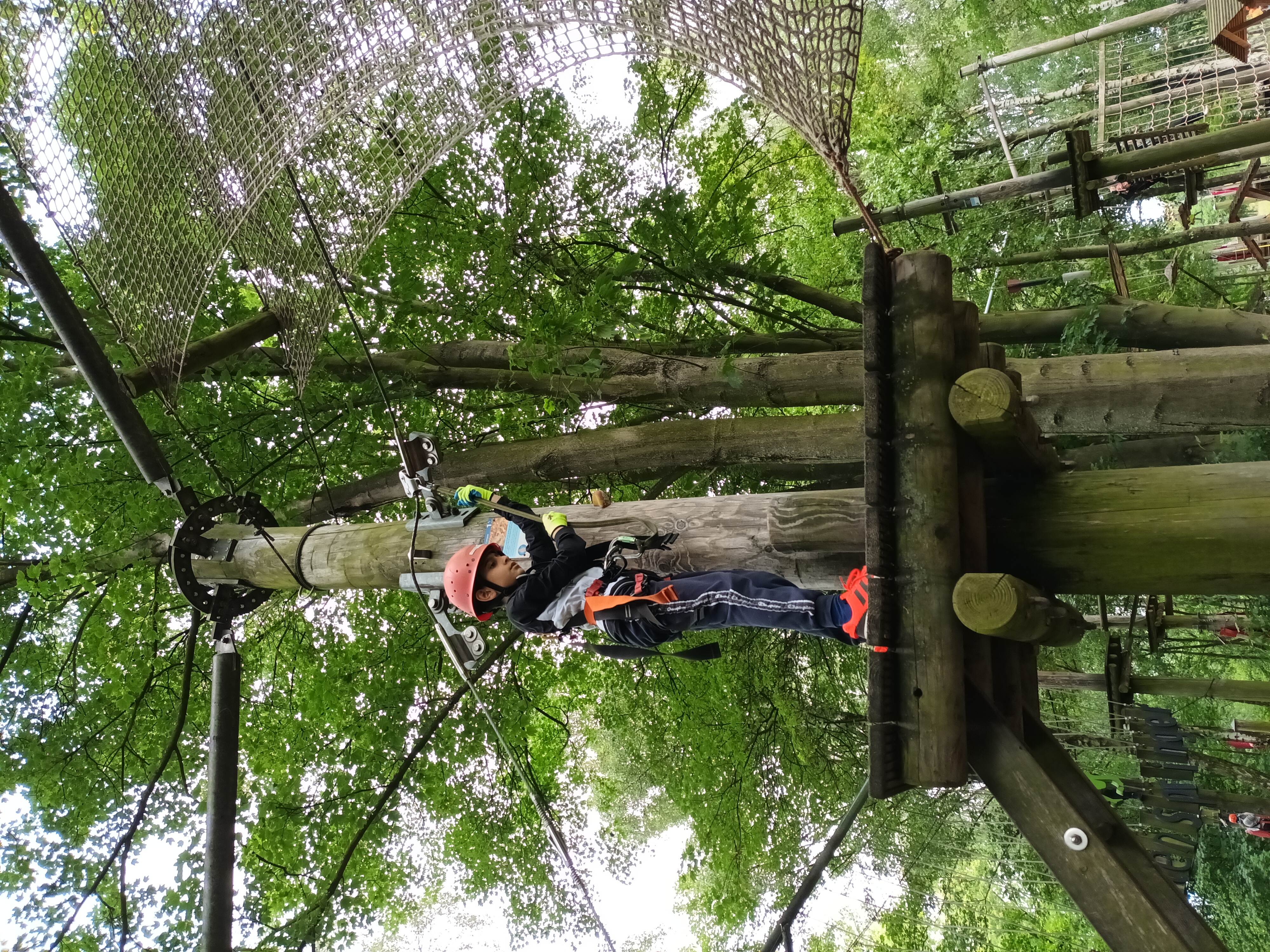 Besonders cool, als einer unserer Schüler zunächst unter Tränen den Weg zurück zur sicheren Plattform wählte, kurz pausierte, um im Anschluss doch mit letzter Kraft und aus eigener Motivation den Parcours schlußendlich meisterte. Auch die Kinder, die sich nicht oder erst nach einigem Zögern beim Klettern probierten, zeigten genau damit Stärke.