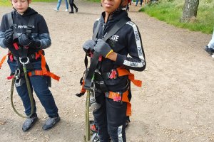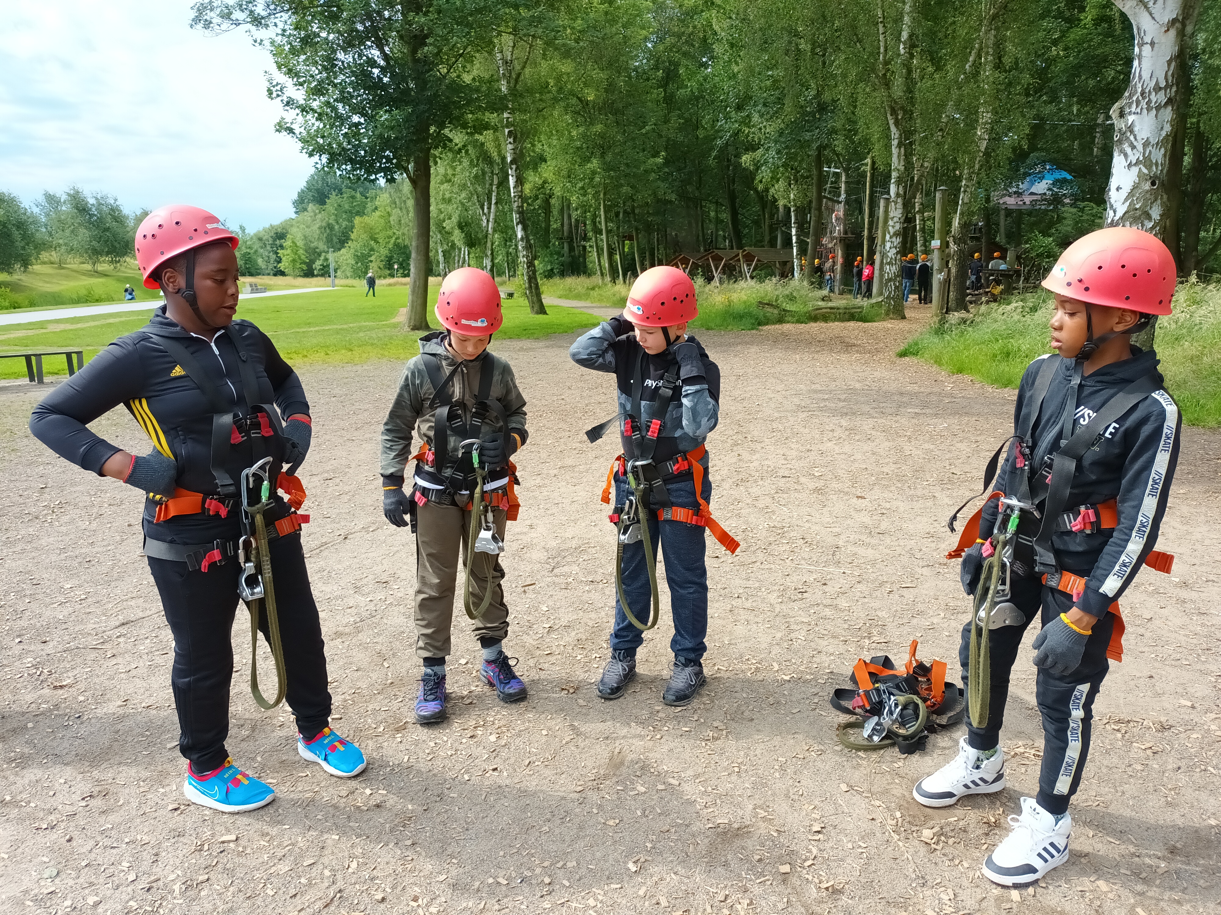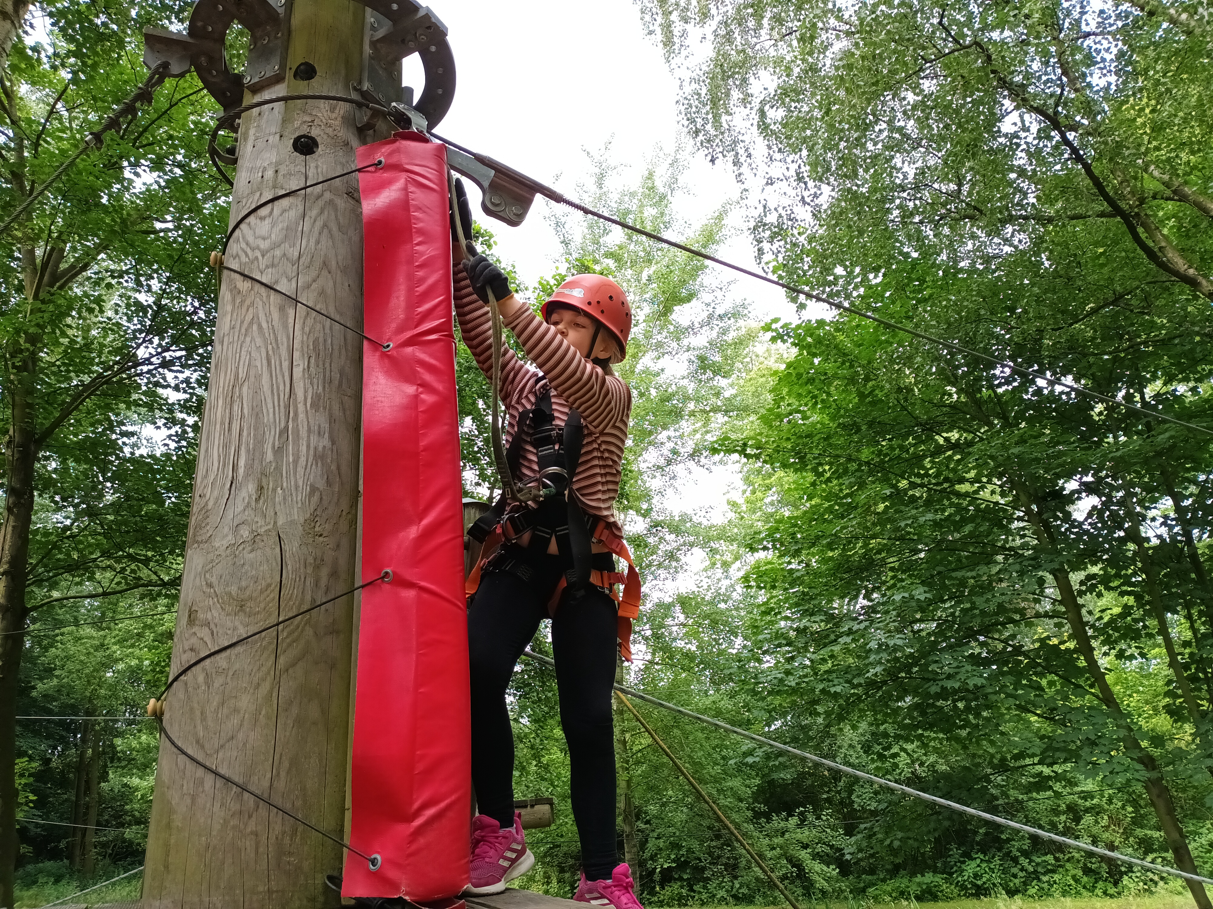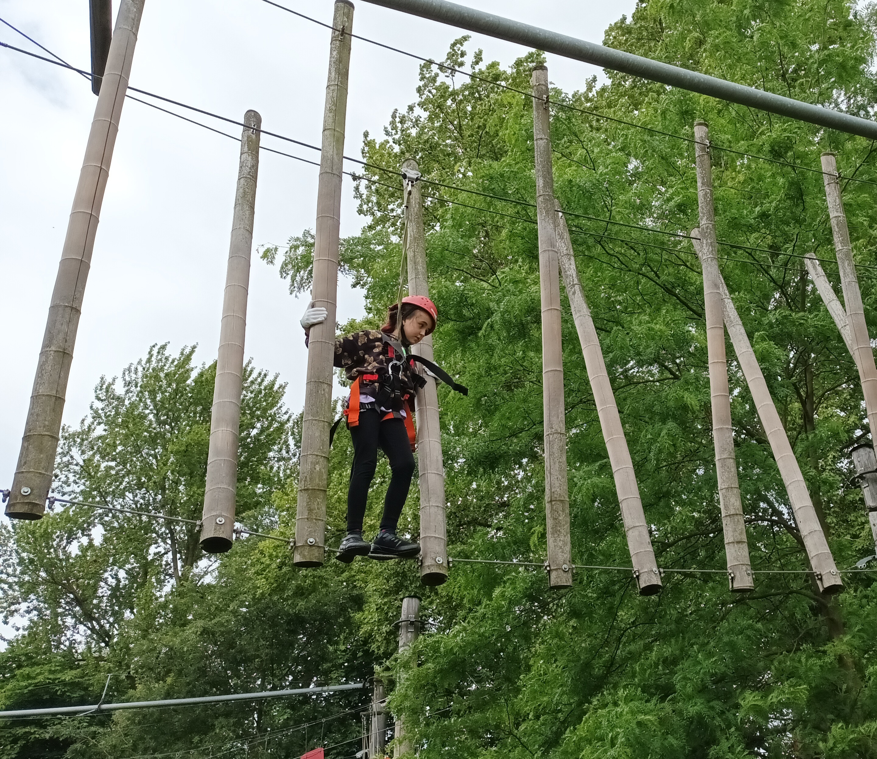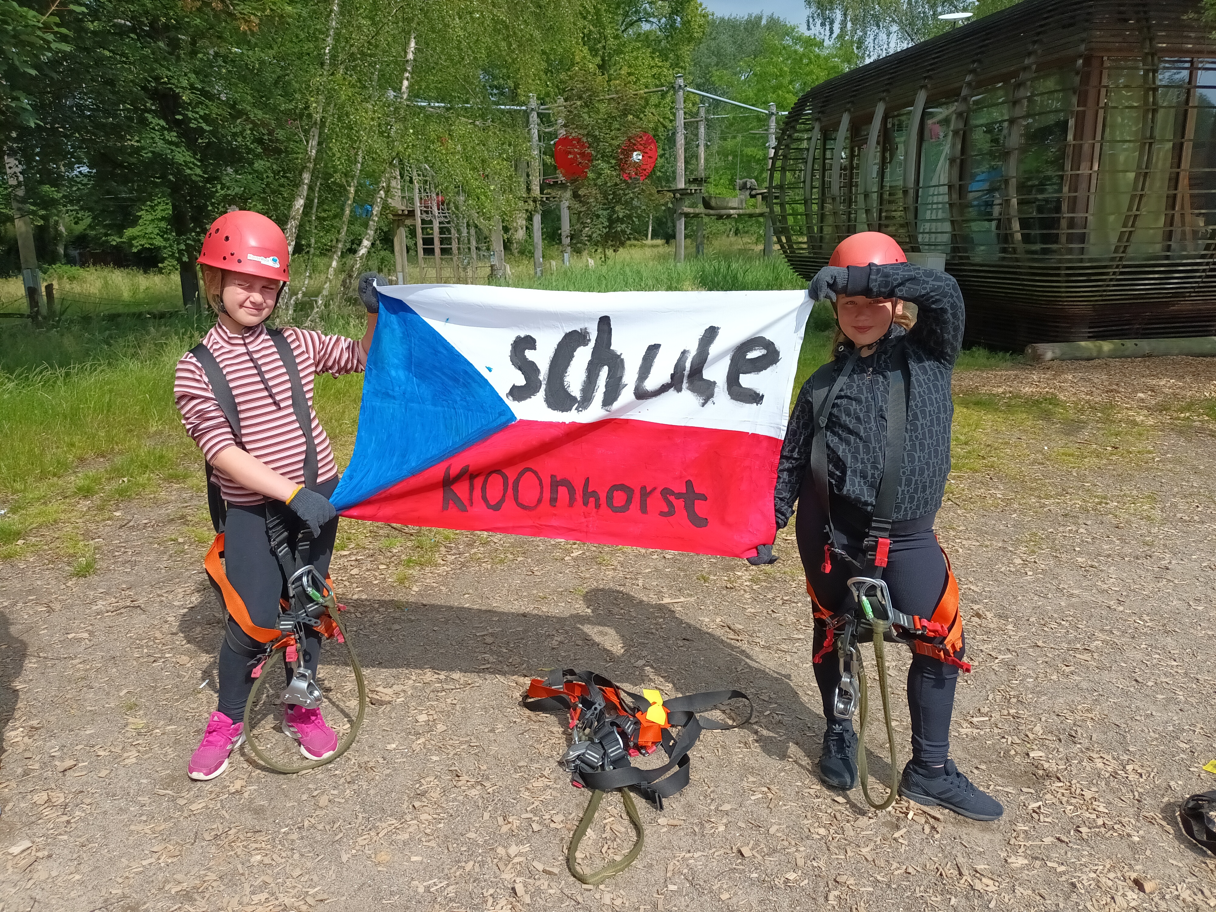 Besonders cool, als einer unserer Schüler zunächst unter Tränen den Weg zurück zur sicheren Plattform wählte, kurz pausierte, um im Anschluss doch mit letzter Kraft und aus eigener Motivation den Parcours schlußendlich meisterte. Auch die Kinder, die sich nicht oder erst nach einigem Zögern beim Klettern probierten, zeigten genau damit Stärke.
