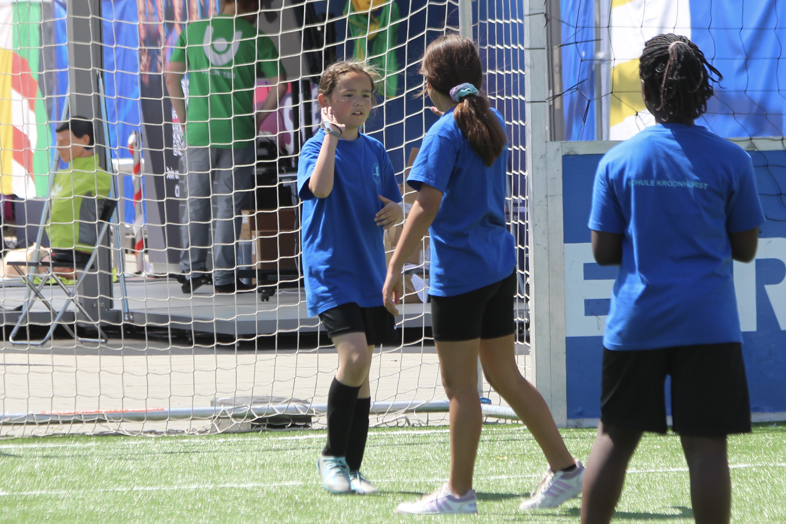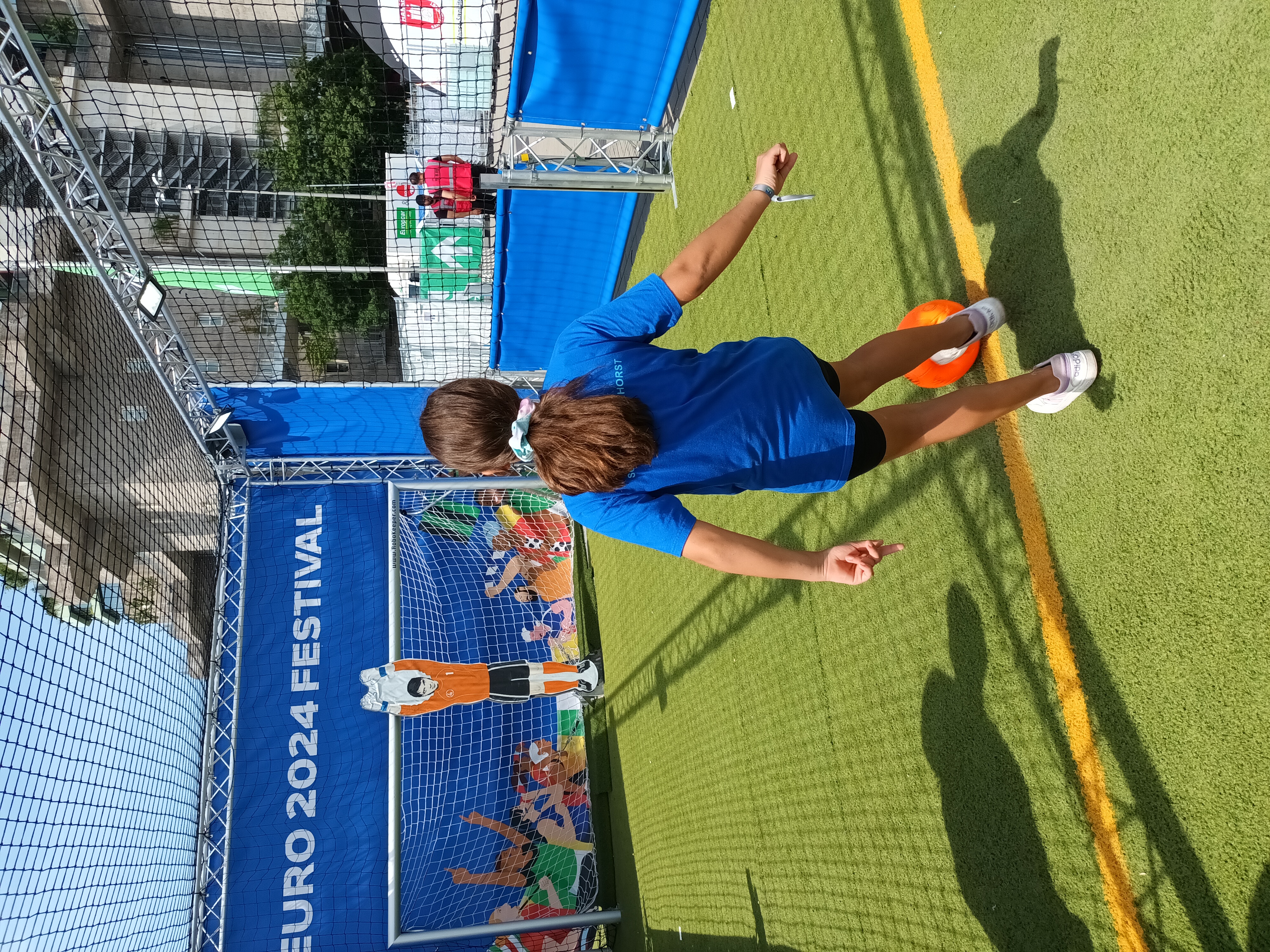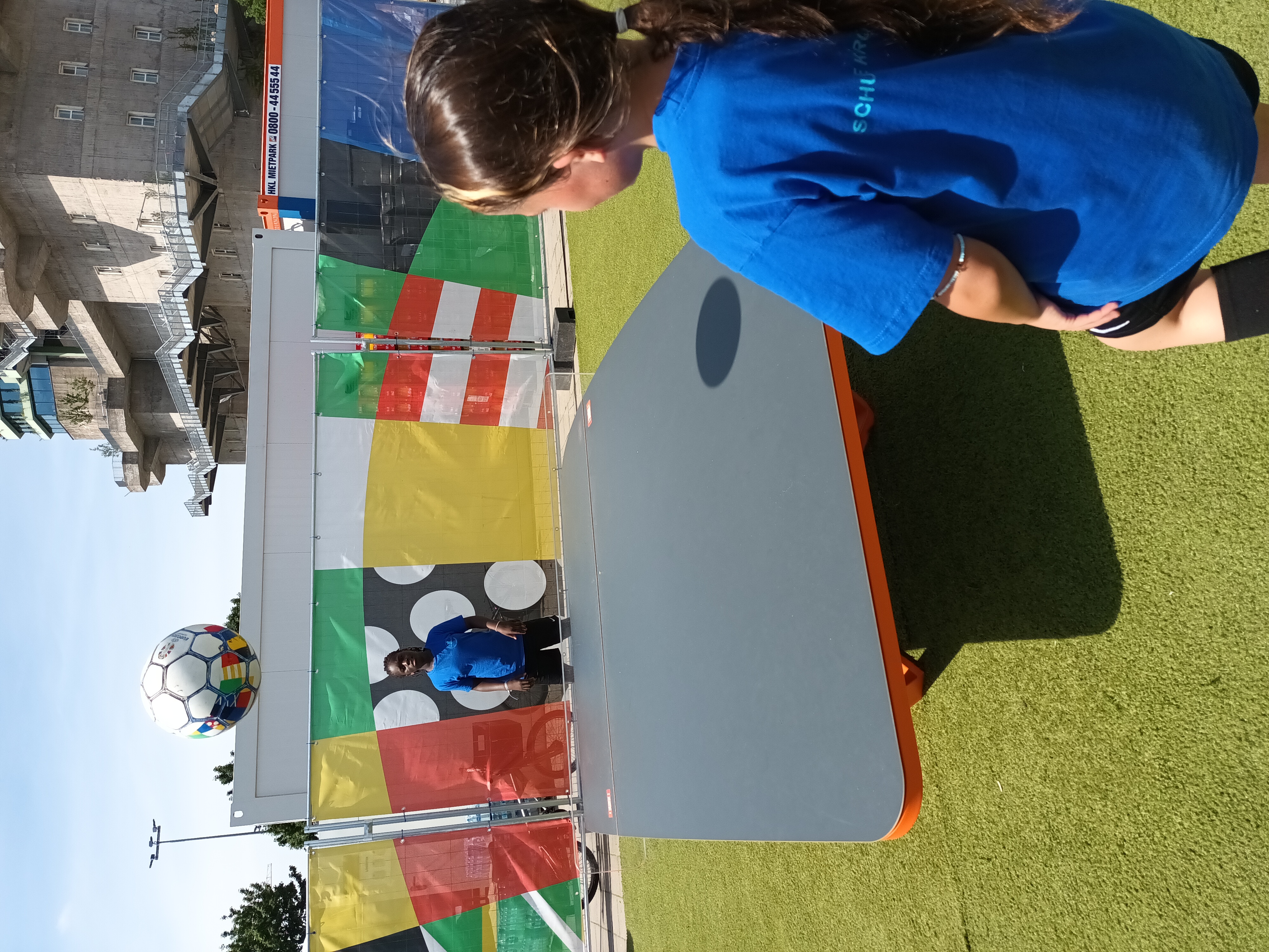 Während wir in der Zwischenzeit auf unseren nächsten Einsatz warteten, nahmen unsere Mädchen mit großem Spaß die viele Angeboten wahr, die im Rahmenprogramm und in der Fanzone gestaltet wurden. Wir schossen auf einen Torwartroboter, lösten Länder- und Flaggenrätsel, dribbelten durch Parcours, lernten die Herzdruckmassage kennen oder regenerierten auf der Tribüne.