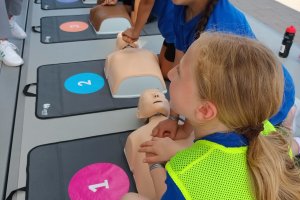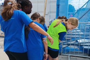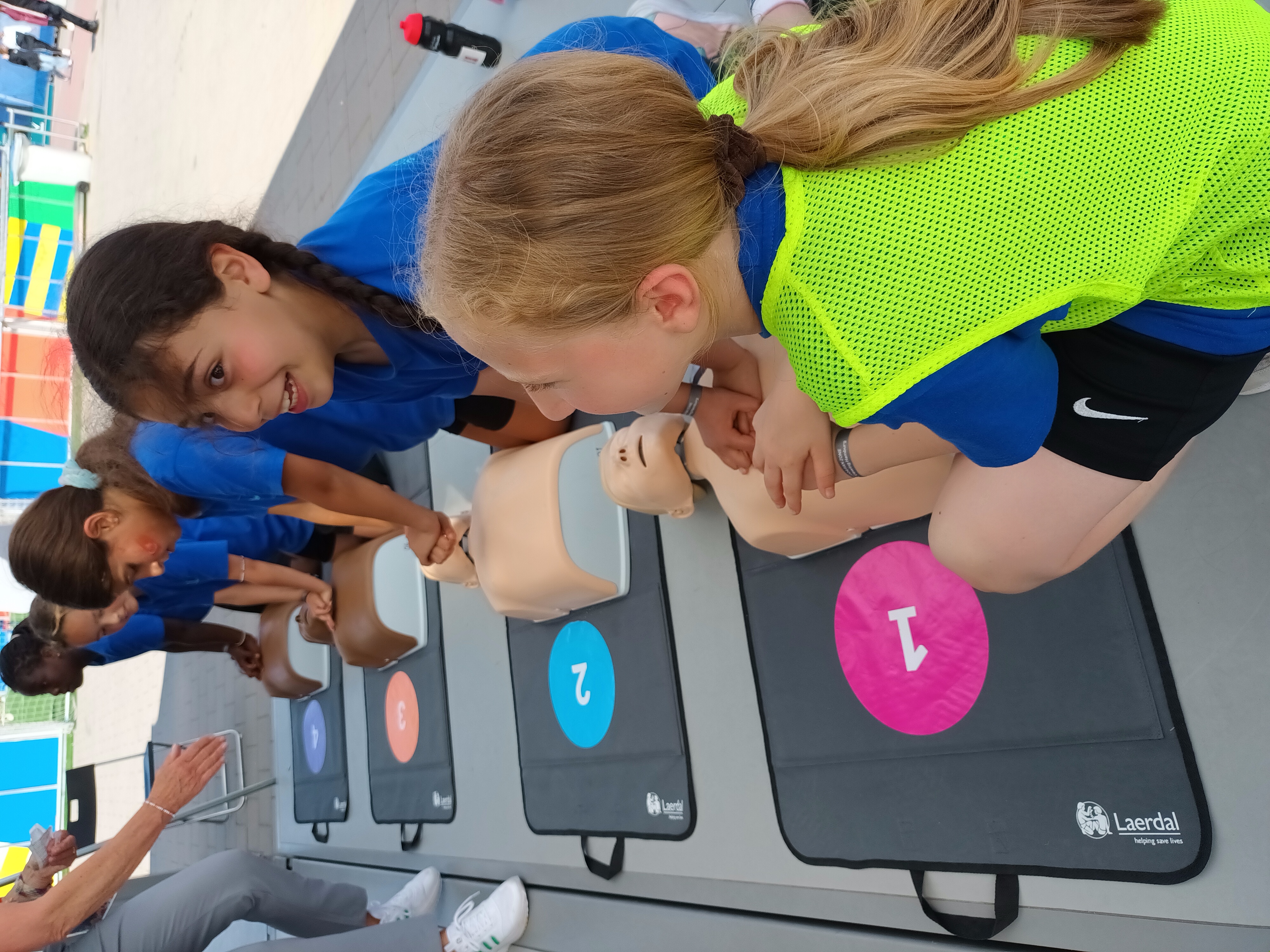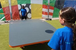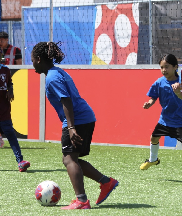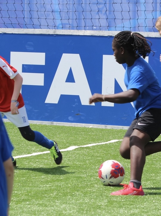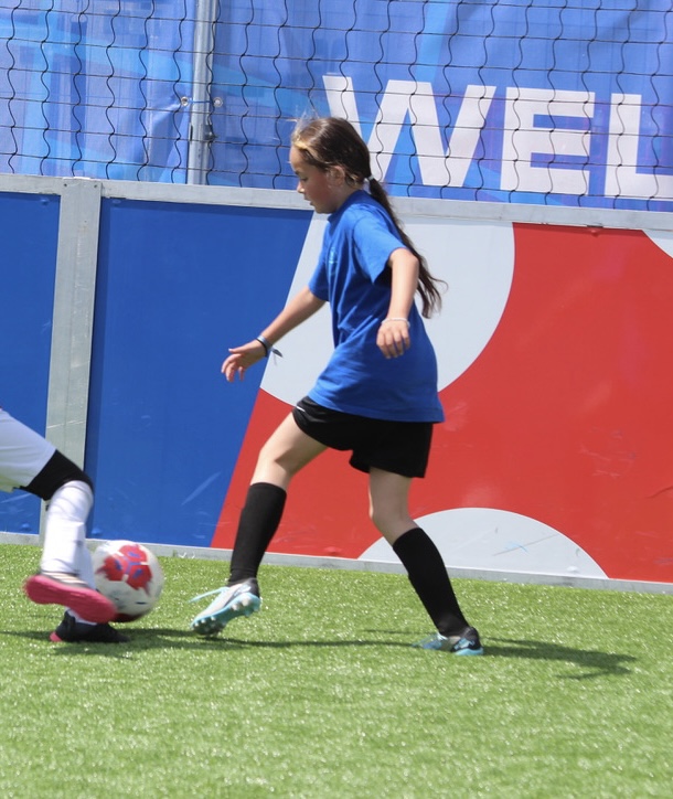 Während wir in der Zwischenzeit auf unseren nächsten Einsatz warteten, nahmen unsere Mädchen mit großem Spaß die viele Angeboten wahr, die im Rahmenprogramm und in der Fanzone gestaltet wurden. Wir schossen auf einen Torwartroboter, lösten Länder- und Flaggenrätsel, dribbelten durch Parcours, lernten die Herzdruckmassage kennen oder regenerierten auf der Tribüne.