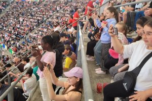 Weit oben auf der Südtribüne in Block 10C verfolgen derweil zwanzig Mädchen und Jungs der Schule Kroonhorst mit großen Augen das Geschehen auf und neben dem Platz.