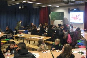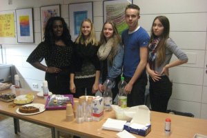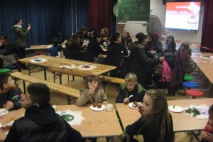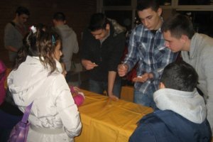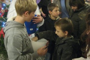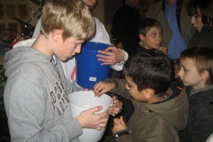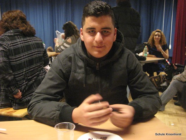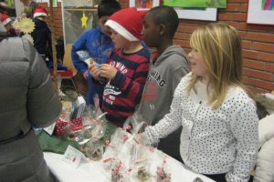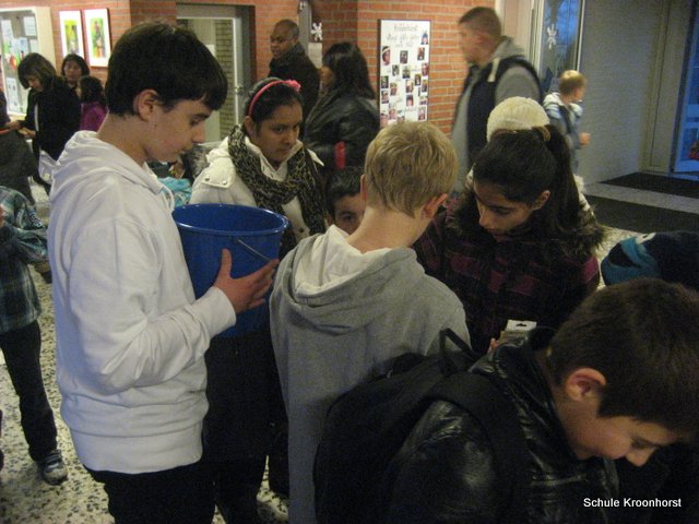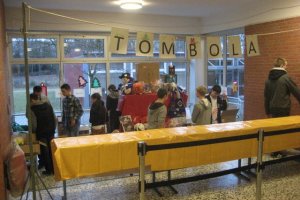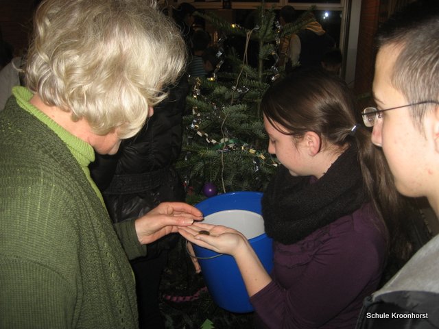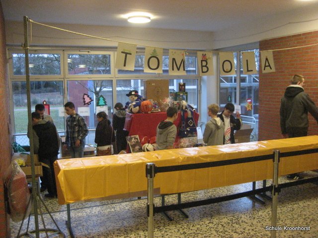Höhepunkt war natürlich wieder die Tombola. Mehr als 1000 Gewinne warteten auf die Besucher des Weihnachtsmarktes. Mit etwas Glück konnte man Fußbälle, Kopfhörer, Bücher, Fotogutscheine, ein Einrad, ein Smartphone oder einen der vielen anderen kleinen und großen Preise gewinnen, die die fleißigen Schülerinnen und Schüler der Klasse 10 schon mehrere Wochen zuvor als Spenden von umliegenden Unternehmern gesammelt hatten. Jedes dritte Los war ein Gewinnlos, so dass niemand mit leeren Händen nach Hause gehen musste. Die Freude war besonders groß, als endlich das Los mit der Nummer 1000 und damit der Hauptgewinn gezogen wurde. Den fleißigen Sammlern und großzügigen Spendern sei an dieser Stelle herzlich gedankt.