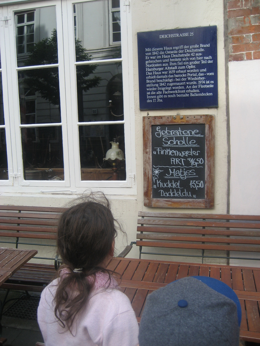 Mit Bus & Bahn fuhren wir vom "Achtern Born/Kindermu" über "Klein Flottbek" bis zur "Stadthausbrücke", wo wir uns vor unserer anstrengenden Stadttour erst einmal mit einem Frühstück stärkten.