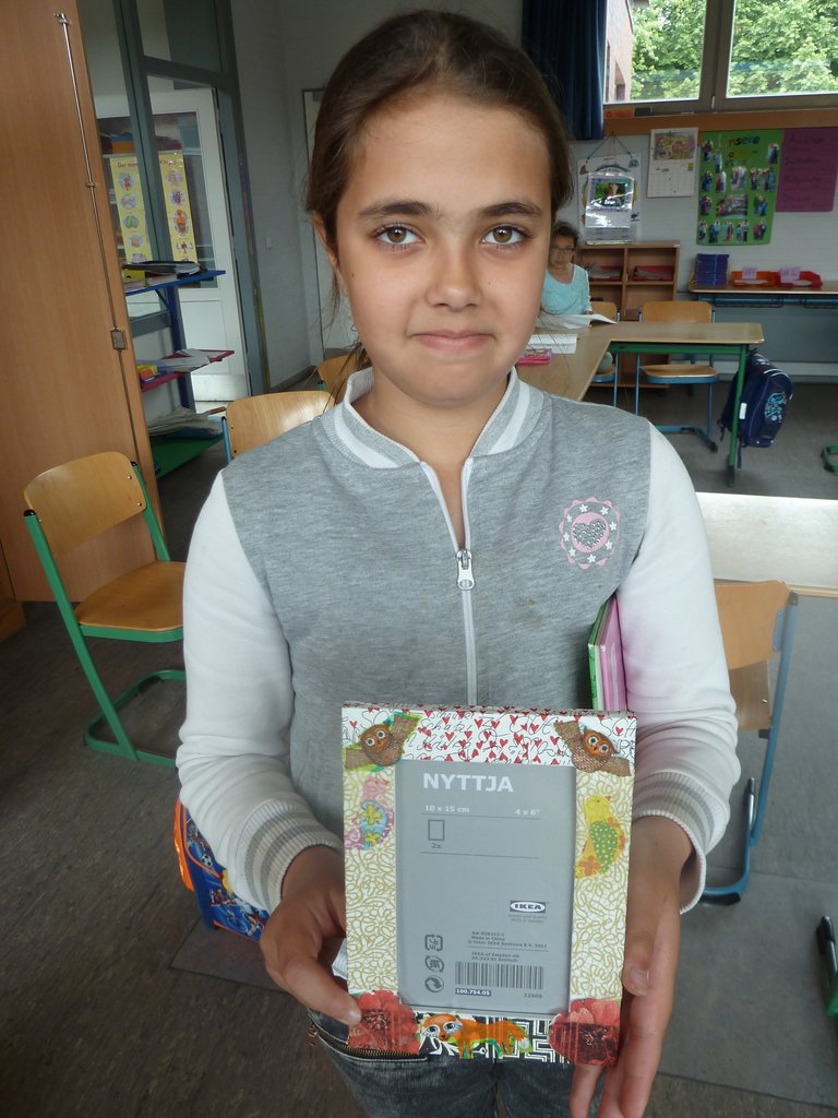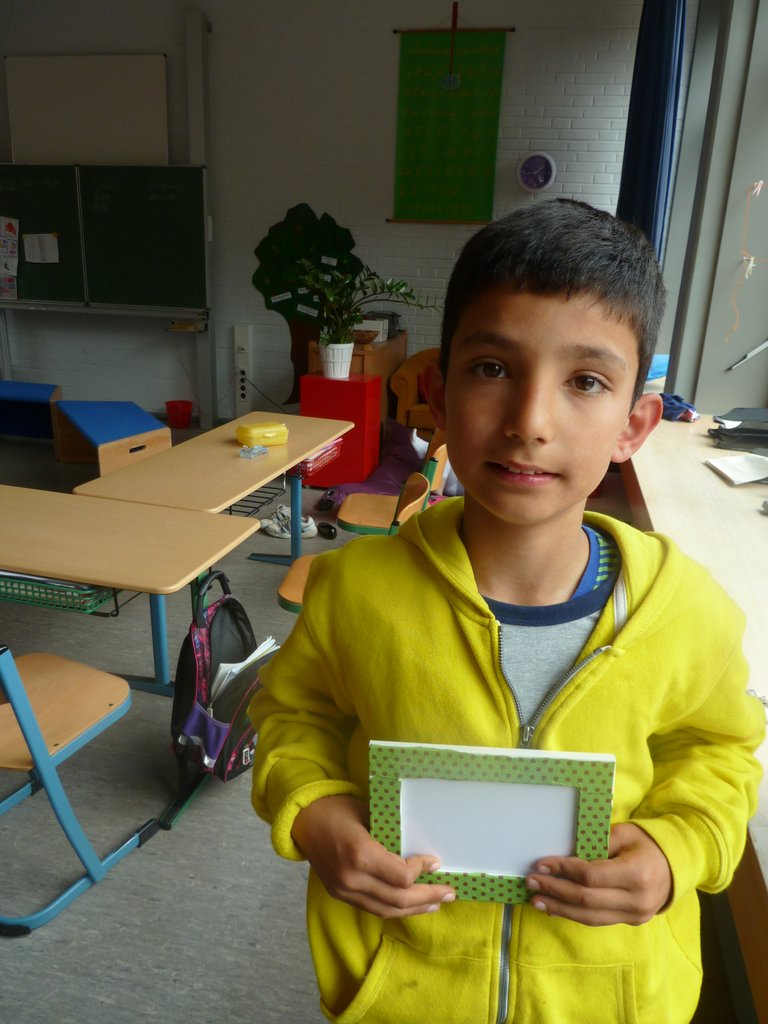 Franzel hat uns erklärt wie man Bilderrahmen in Serviettentechnik verziert. Alle haben es toll gemacht. Manche haben es soo schön gemacht, dass Franzel gesagt hat: ,,Es ist so toll.“ Manche waren schnell fertig. Beyza und Sarah waren die ersten, die fertig waren.Franzel hat dann gesagt: ,,Wollt ihr für Frau Puls auch einen Bilderrahmen machen?“ Beyza und Sarah haben gesagt: ,,Ok!“ Sie haben dann einen für Frau Puls gemacht. Dann war Luan fertig. Franzel hat gesagt :,,Kanst du meinen noch fertig machen oder hast du keine Lust?“ Dann hat Luan gesagt: ,,Doch ich habe Lust!´´ Schamil hat ihm geholfen. Armita war leider die letzte, aber sie hat es auch wunderschön gemacht. Dann war Pause. Danach haben wir gemeinsam geputzt und wer damit fertig war, musste arbeiten.