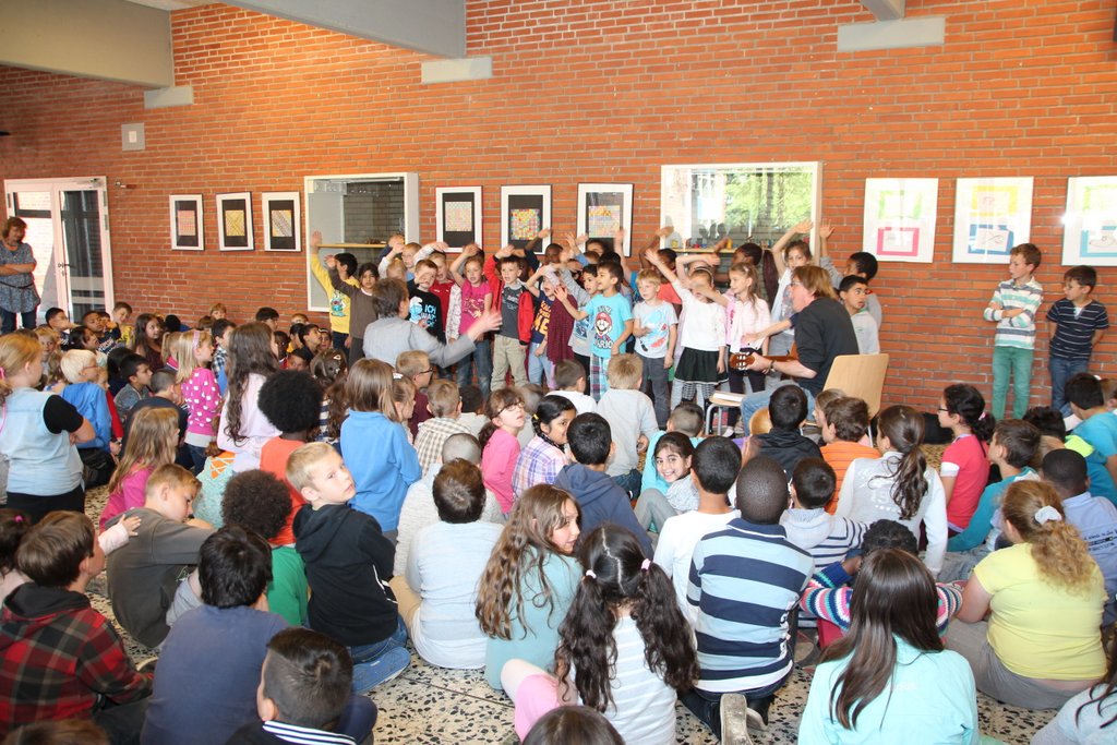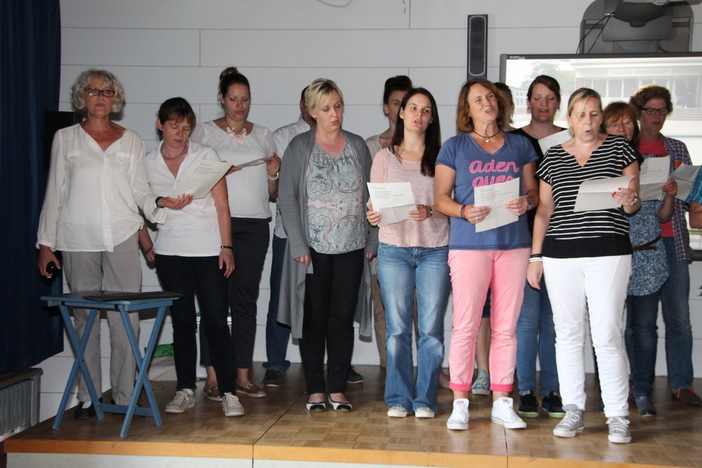 Der letzte Schultag des Jahres 2014/15 gehörte daher auch verdienter Maßen Frau Sodemann. Mit einem kleinen kulturellen Programm verabschiedeten sich zunächst die Klassen und anschließend die Lehrer. Und zu guter Letzt verabschiedete sich Frau Sodemann von ihrer geliebten Schultasche. Diese flog im hohen Bogen direkt in den Kroonhorster Müllcontainer.