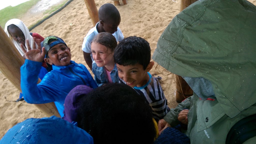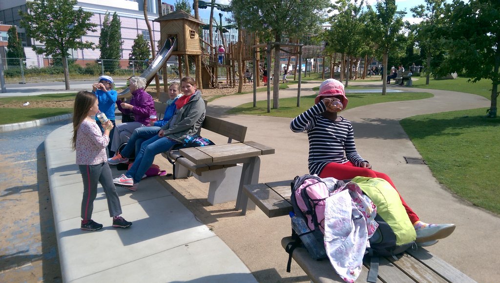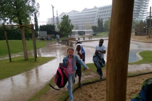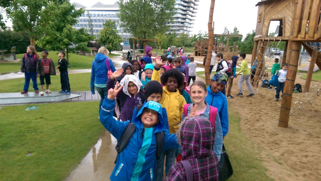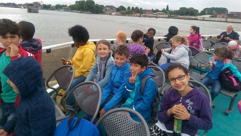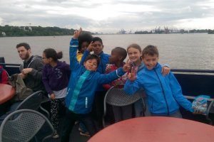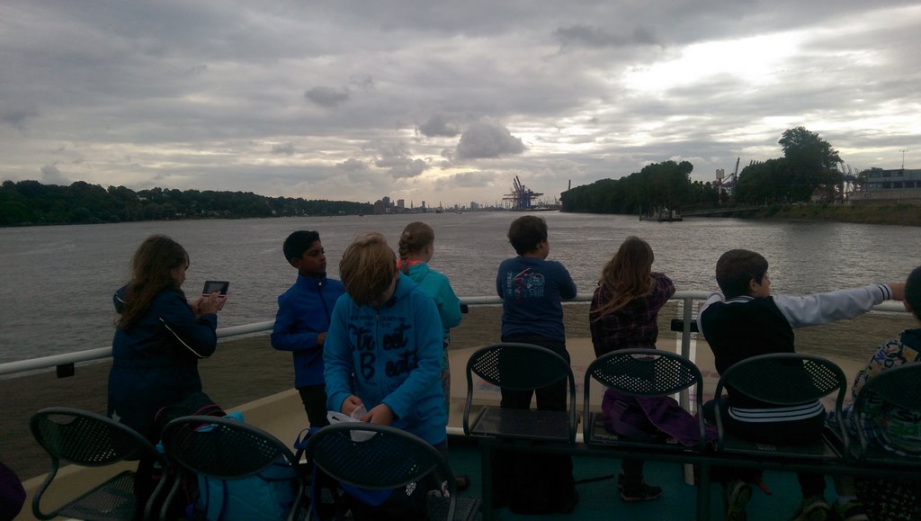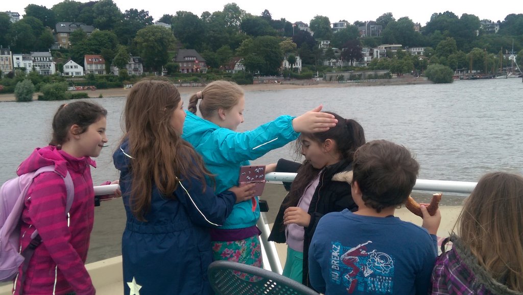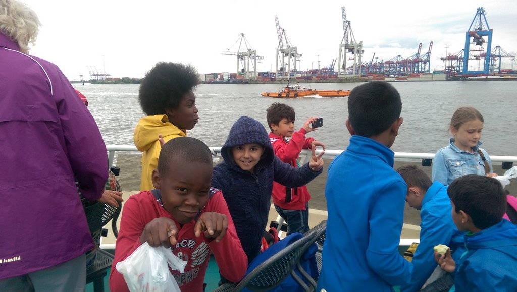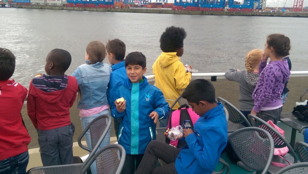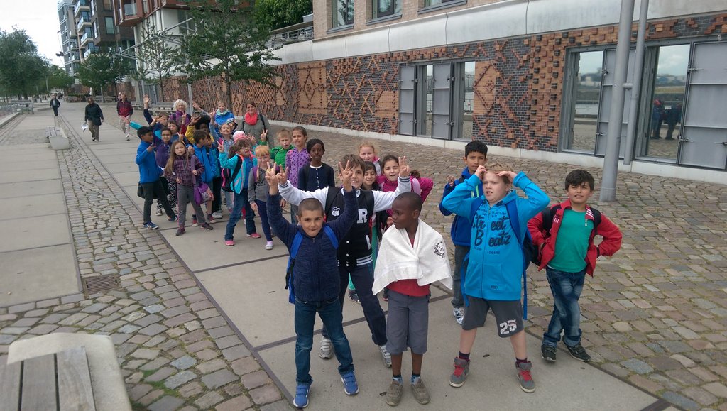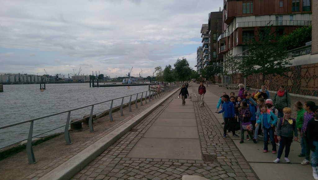 In der HafencityWir die 3b und 3a waren Mittwoch in der Hafencity. Wir sind mit dem Boot, einer Fähre, gefahren. Als wir endlich angekommen sind, hat Mülli uns gesagt : „ Bitte geht nicht ins Wasser rein!“ Dann hat Hegi gesagt: „Okay, dann könnt ihr spielen gehen.“ Der Spielplatz war groß. Wir konnten in die Gebüsche reinklettern, in Häusern spielen, schaukeln, auf einem Trampolin springen und auf Klettergerüsten toben. Plötzlich hat es geregnet.