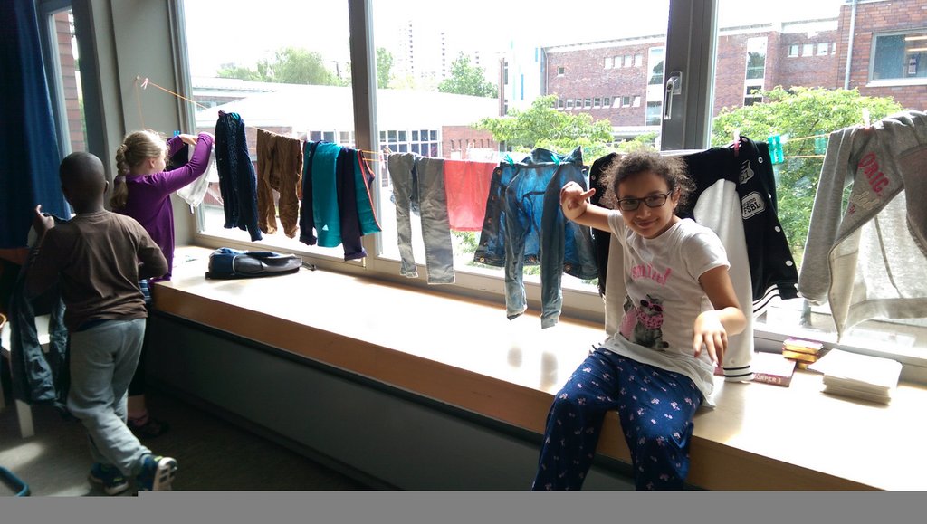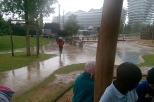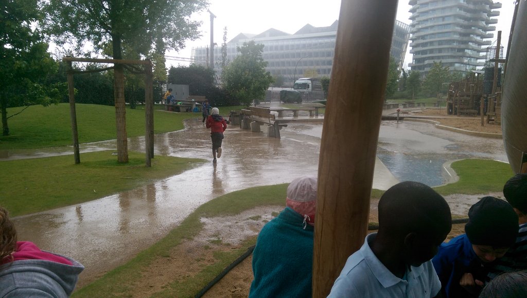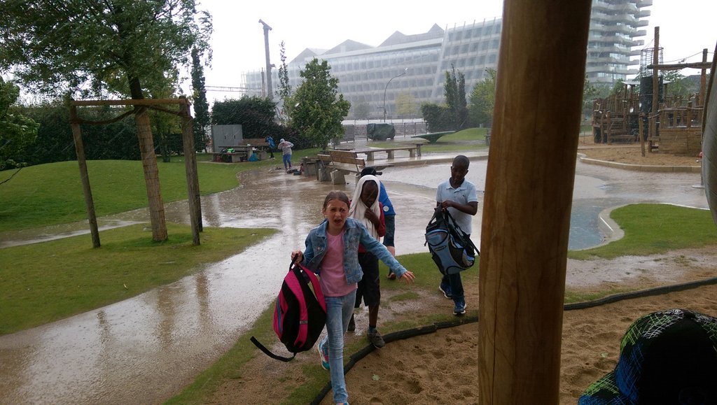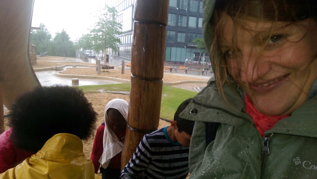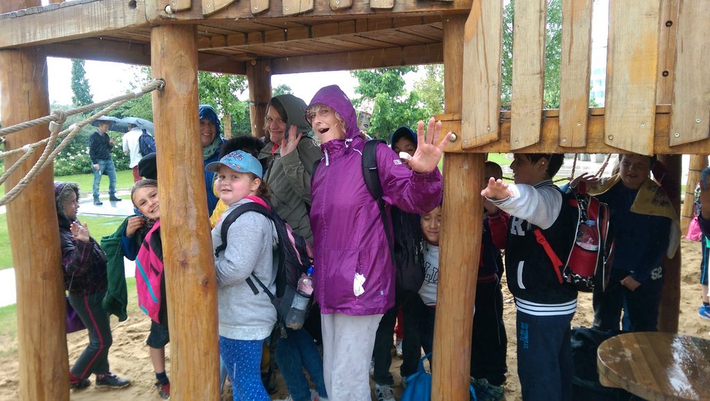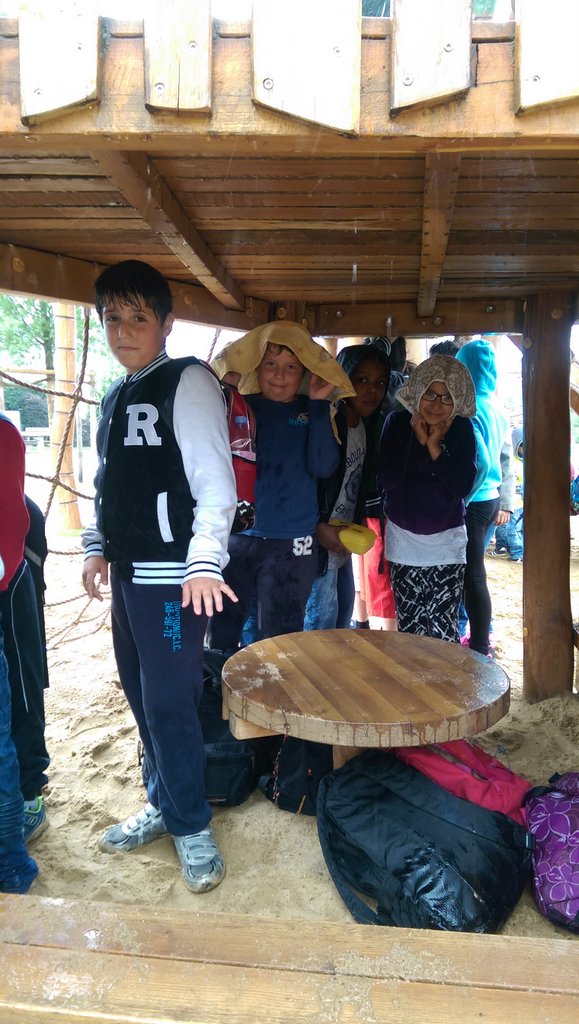 Wir haben noch versucht uns unterzustellen, aber der Regen war zu stark. Wir haben geschrien und gequietscht und sind plitschnass zur neuen U-Bahn geflüchtet. Dort haben wir uns vor den Fahrkartenautomaten trockene Kleidung angezogen. Aber wir sind alle glücklich nach Hause in die Schule gefahren und keiner hat sich beschwert. Es war sehr schön und am nächsten Tag waren alle bis auf Marschi wieder gesund und munter in der Schule!