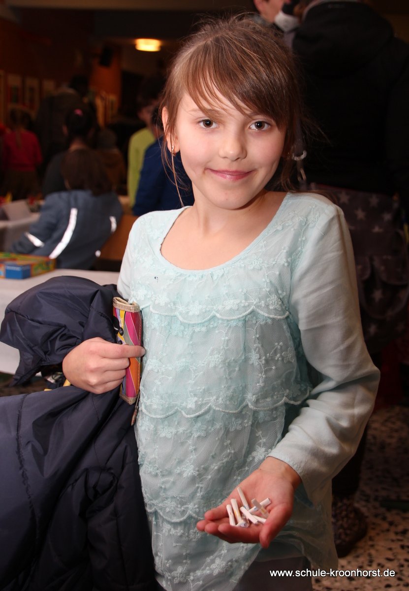 Den größten Andrang gab es aber wie immer am Stand der Tombola und in der Cafeteria. Mit etwas Glück konnten die Besucher Spelzeug, Kopfhörer, Kuscheltiere oder viele andere Preise gewinnen. Jedes zweite Los war ein Gewinnlos, so dass niemand mit leeren Händen nach Hause gehen musste. Die Freude war besonders groß, als endlich die Hauptgewinne gezogen wurden. Die Glücklichen freuten sich über ein Tablet-PC und ein SMART-Phone.
