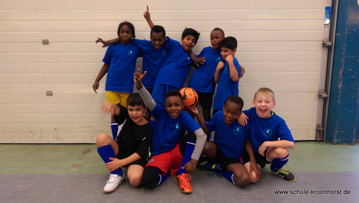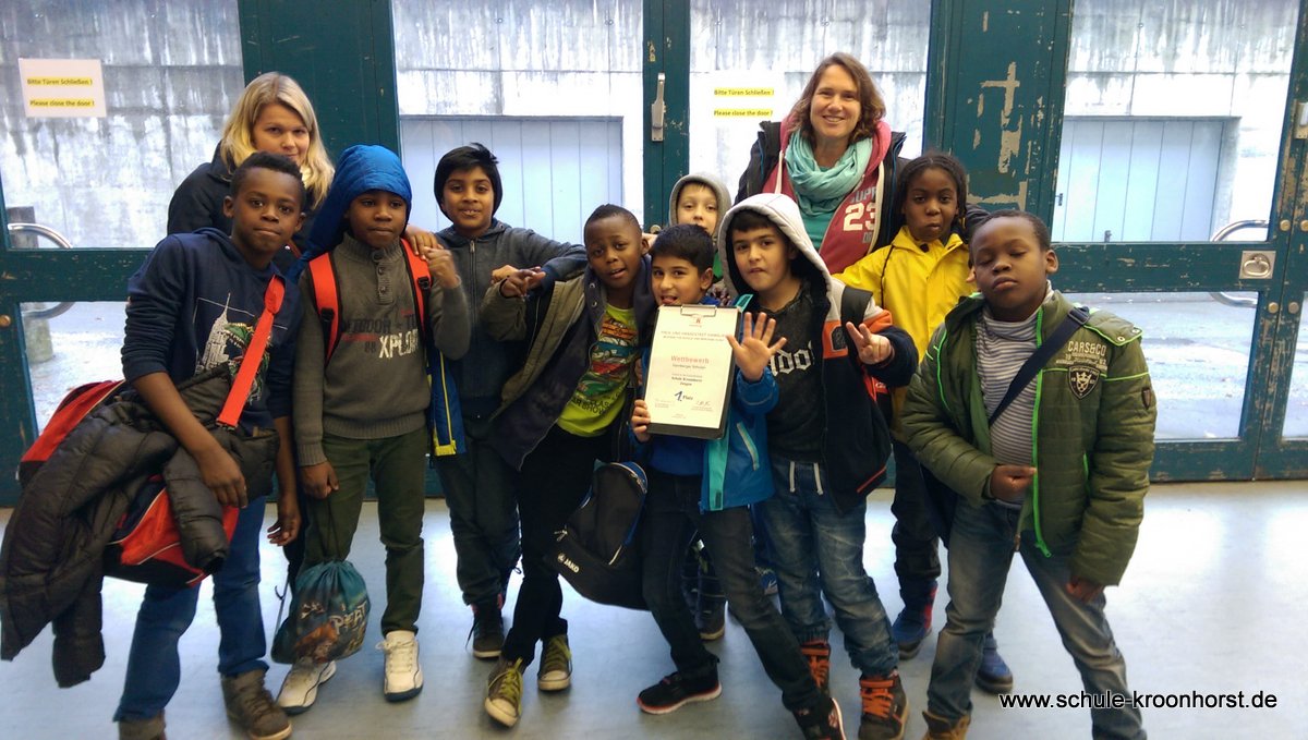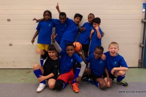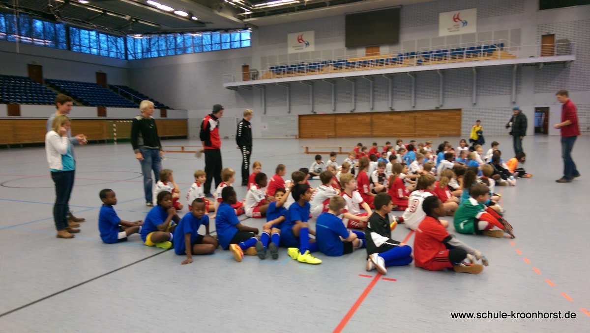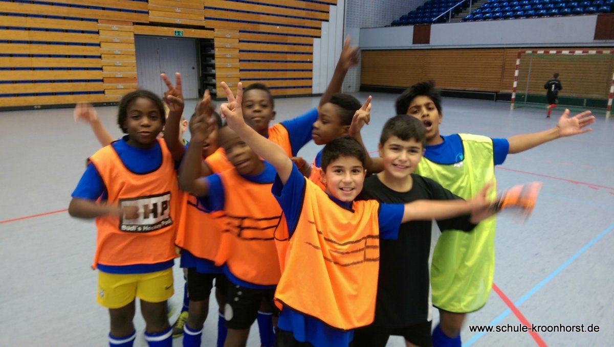 In unserer Gruppe trafen wir auf die Schulen aus Kirchdorf, Ochsenwerder, Eppendorf und den Edwin-Scharff-Ring. Das erste Spiel hatten wir gleich gegen unseren stärksten Gegner aus Kirchdorf. Nach 1,5 Stunden Bus- und Bahnfahrt kamen wir nicht richtig in Schwung und das Spiel endete 1:1 -unentschieden. Da sowohl Kirchdorf als auch wir jedes weitere Spiel gewannen, war klar, dass wir im letzten Spiel so viele Tore wie möglich schießen mussten, um im Torverhältnis besser als Kirchdorf zu sein und somit den wichtigen ersten Platz zum Einzug in die Finalrunde im Februar zu erreichen. Also haben wir gestürmt wie die Weltmeister und ein sensationelles 6:0 (in 10 Minuten!!!) vorgelegt! Das konnte Kirchdorf nicht aufholen und der erste Platz ging damit wirklich sehr verdient an uns!