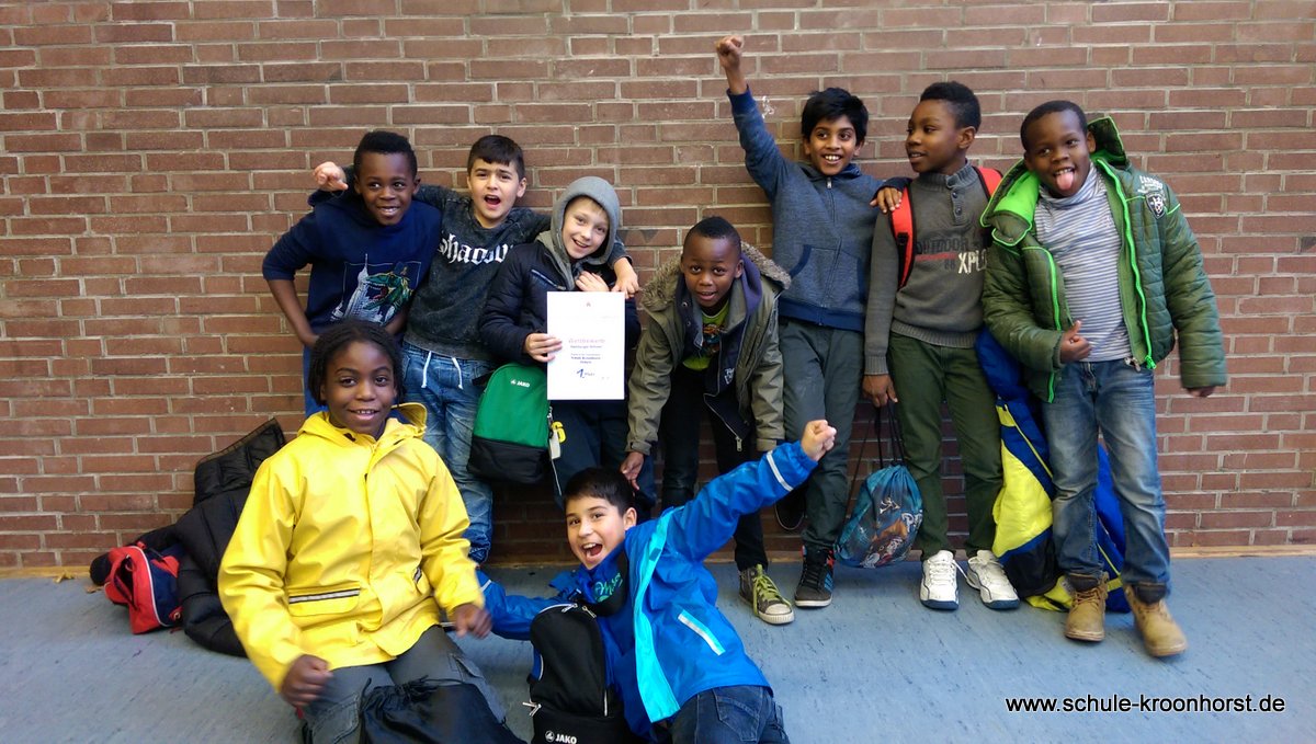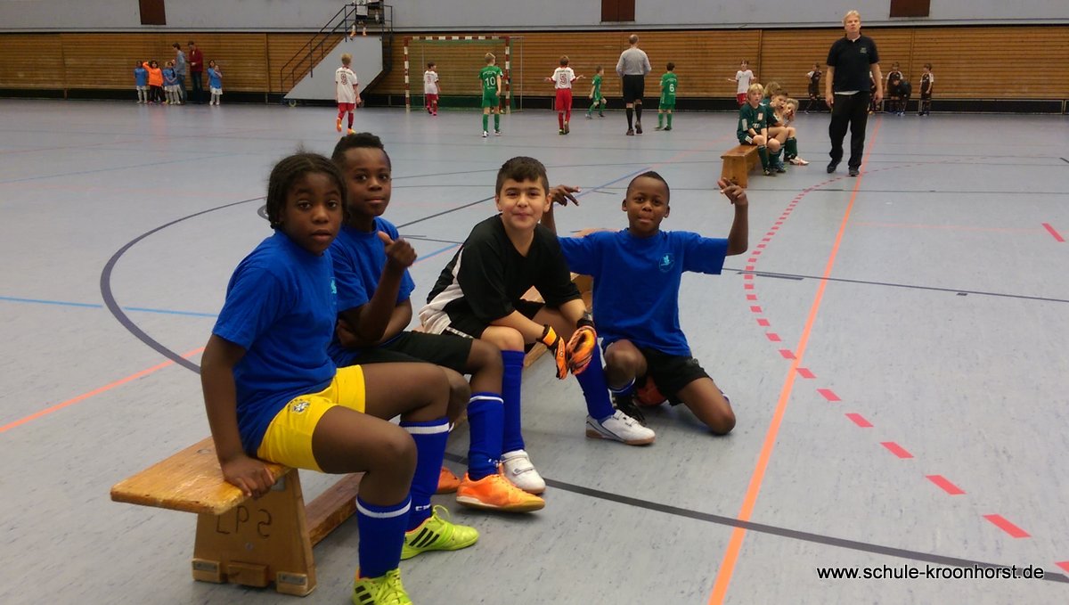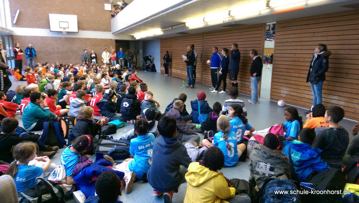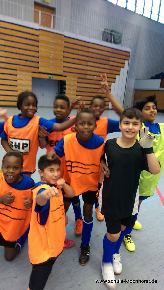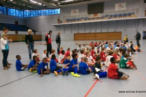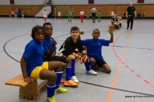 In unserer Gruppe trafen wir auf die Schulen aus Kirchdorf, Ochsenwerder, Eppendorf und den Edwin-Scharff-Ring. Das erste Spiel hatten wir gleich gegen unseren stärksten Gegner aus Kirchdorf. Nach 1,5 Stunden Bus- und Bahnfahrt kamen wir nicht richtig in Schwung und das Spiel endete 1:1 -unentschieden. Da sowohl Kirchdorf als auch wir jedes weitere Spiel gewannen, war klar, dass wir im letzten Spiel so viele Tore wie möglich schießen mussten, um im Torverhältnis besser als Kirchdorf zu sein und somit den wichtigen ersten Platz zum Einzug in die Finalrunde im Februar zu erreichen. Also haben wir gestürmt wie die Weltmeister und ein sensationelles 6:0 (in 10 Minuten!!!) vorgelegt! Das konnte Kirchdorf nicht aufholen und der erste Platz ging damit wirklich sehr verdient an uns!
