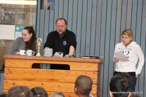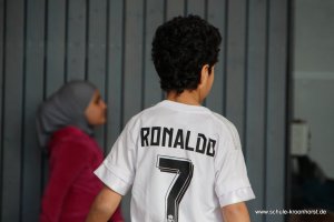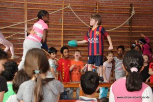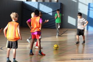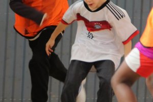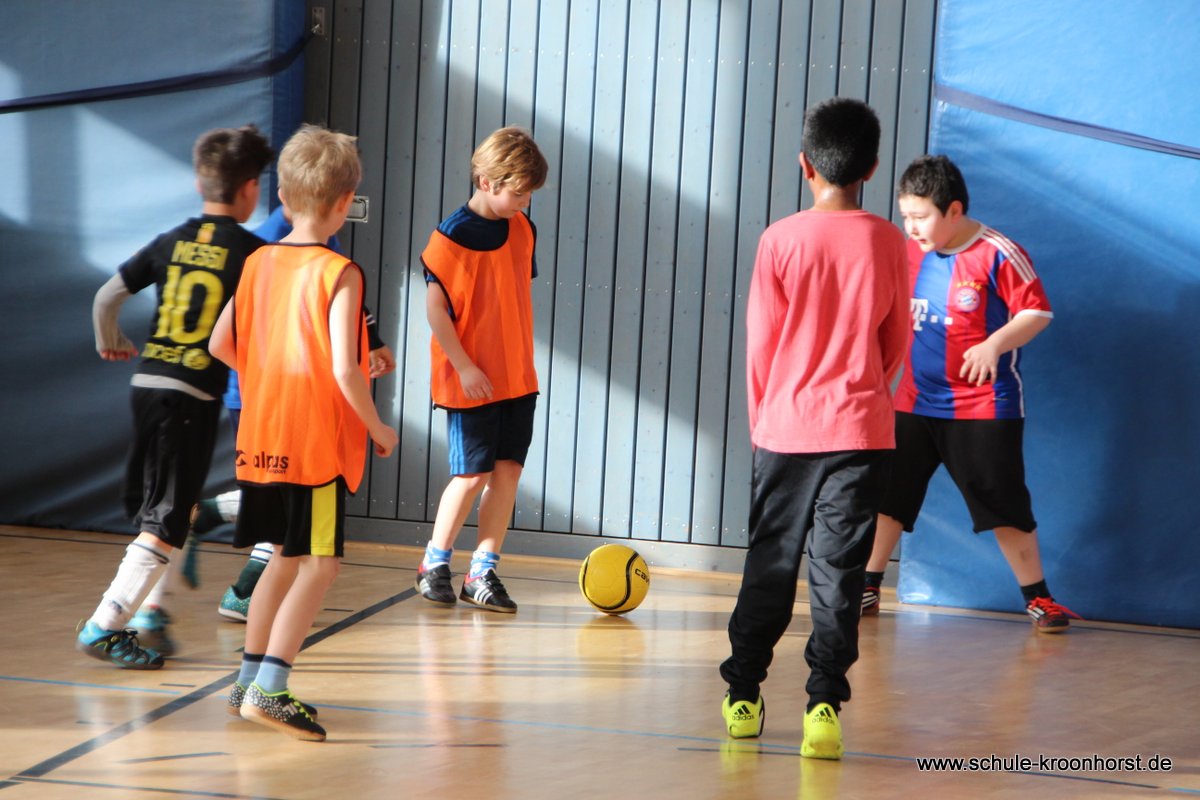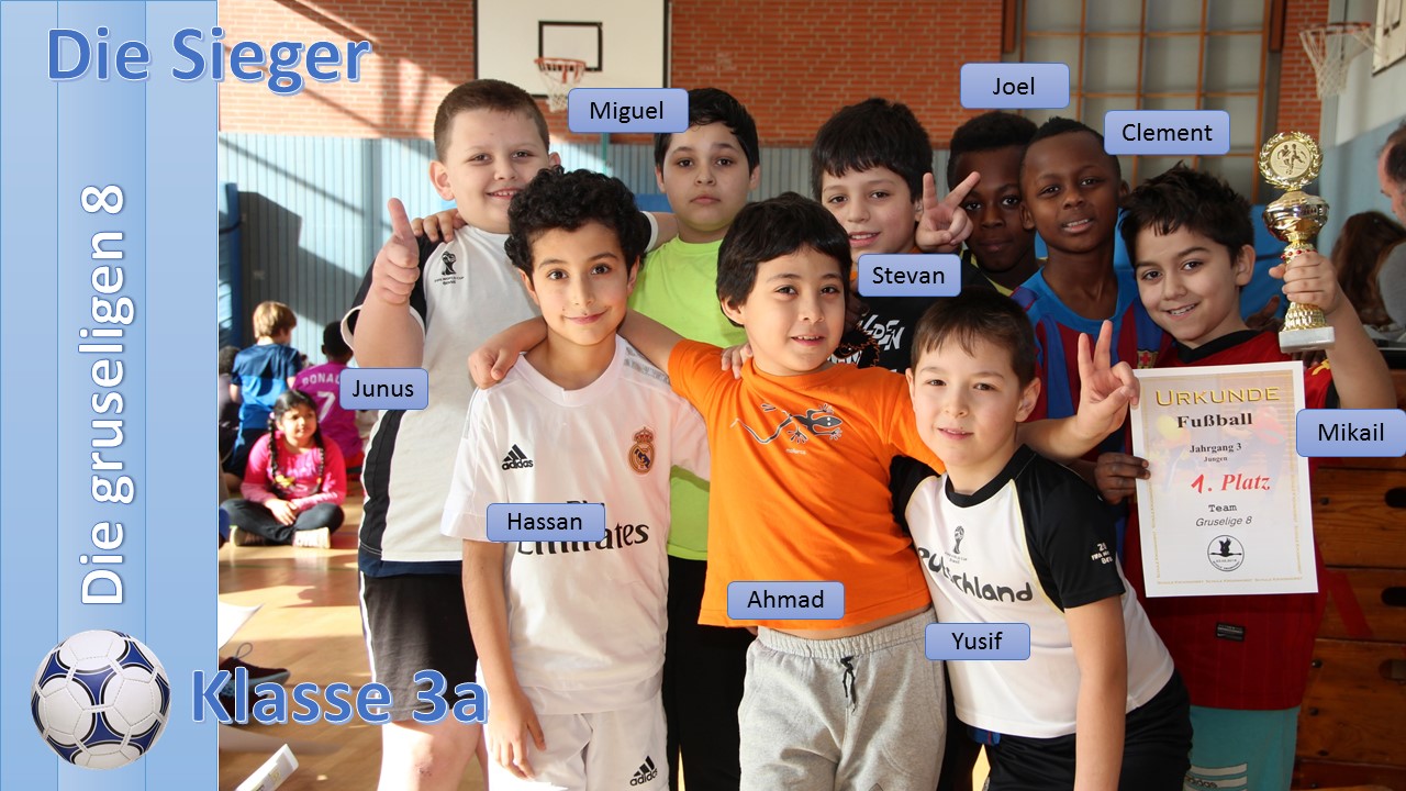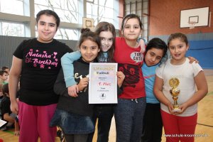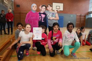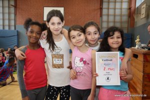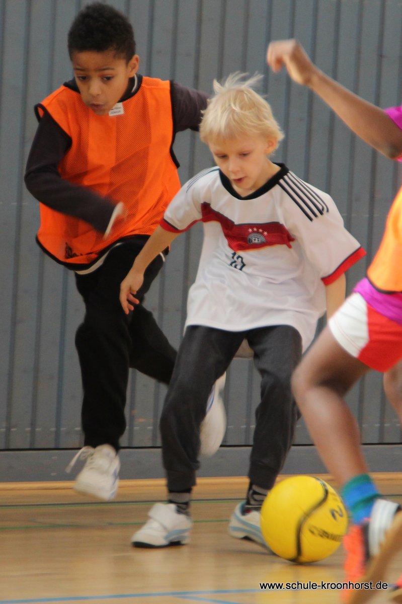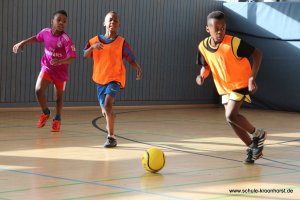 Aber was wären die Sporttage ohne Fußball. Die 3. Klassen spielten in einem spannenden und fairen Turnier den Kroonhorster Fußballmeister aus. Bei den Jungen gewann das Team "Die gruseligen 8" aus der Klasse 3a. Die jungen Kicker überzeugten in allen Spielen mit Spielwitz und Torgefährlichkeit. Sieger bei den Mädchen wurden die Fußballcracks der Klasse 3b. Bei der Pokalübergabe durch den Schulleiter Herr Ernst war die Freude besonders groß.