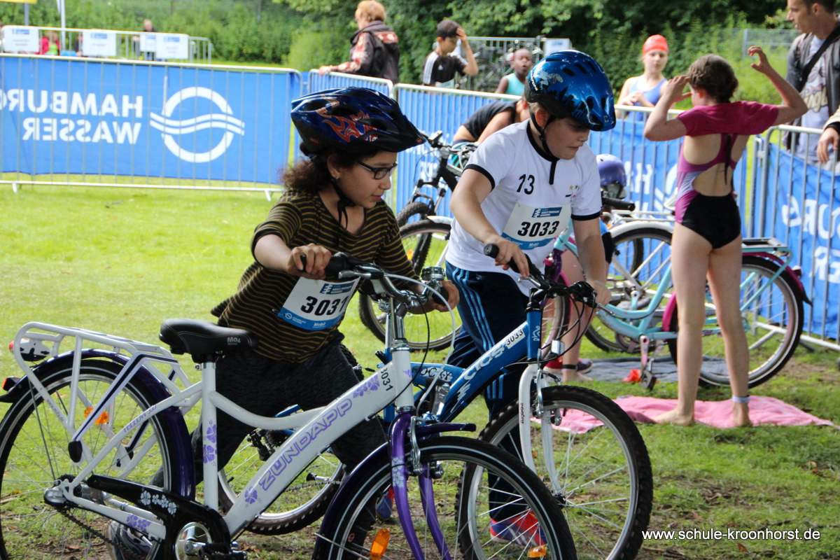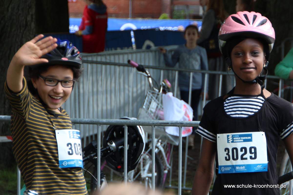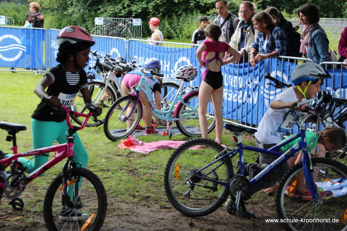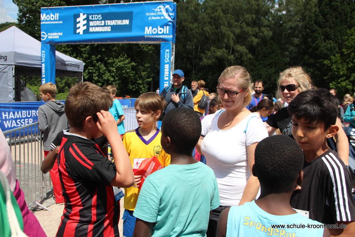 Mit viel Spaß und mit dem nötigen Ehrgeiz nahmen die Triathleten der Klasse 4b der Schule Kroonhorst bei herrlichem Wetter am 07.07.2016 am Kids World Triathlon im Hamburger Stadtpark teil.