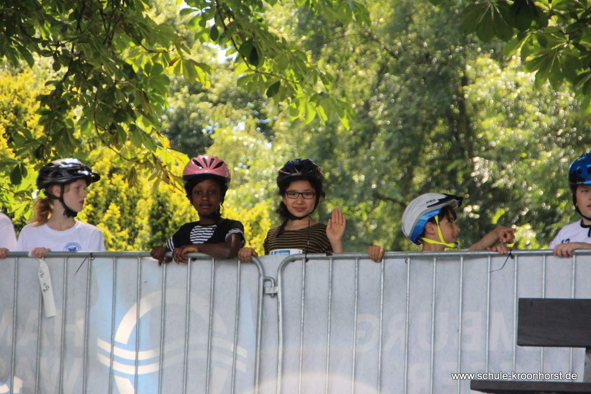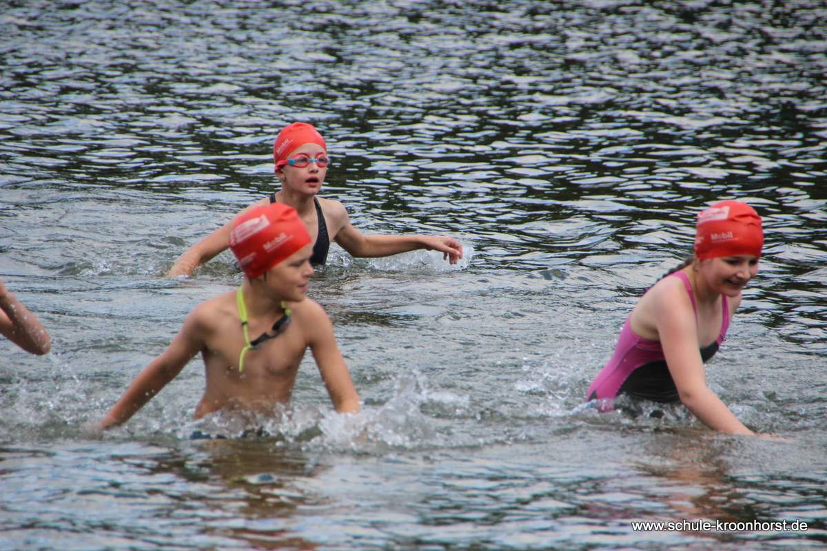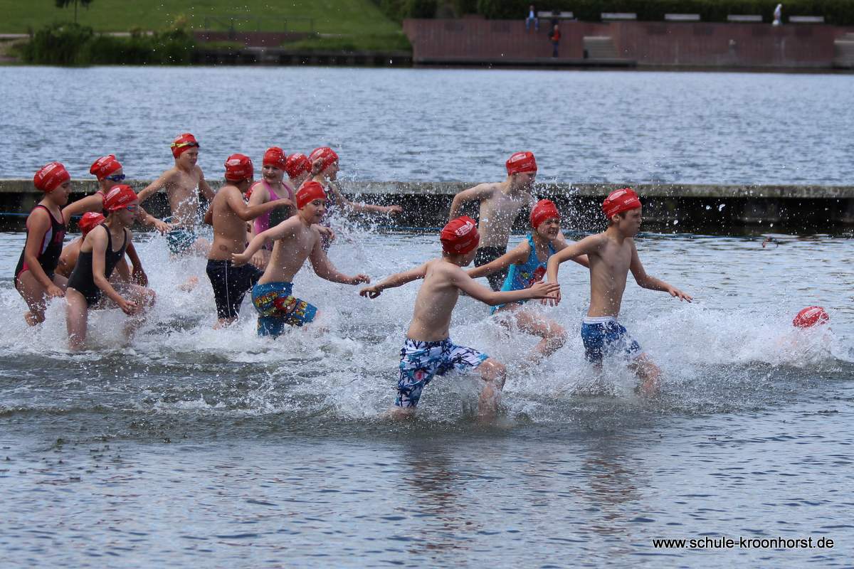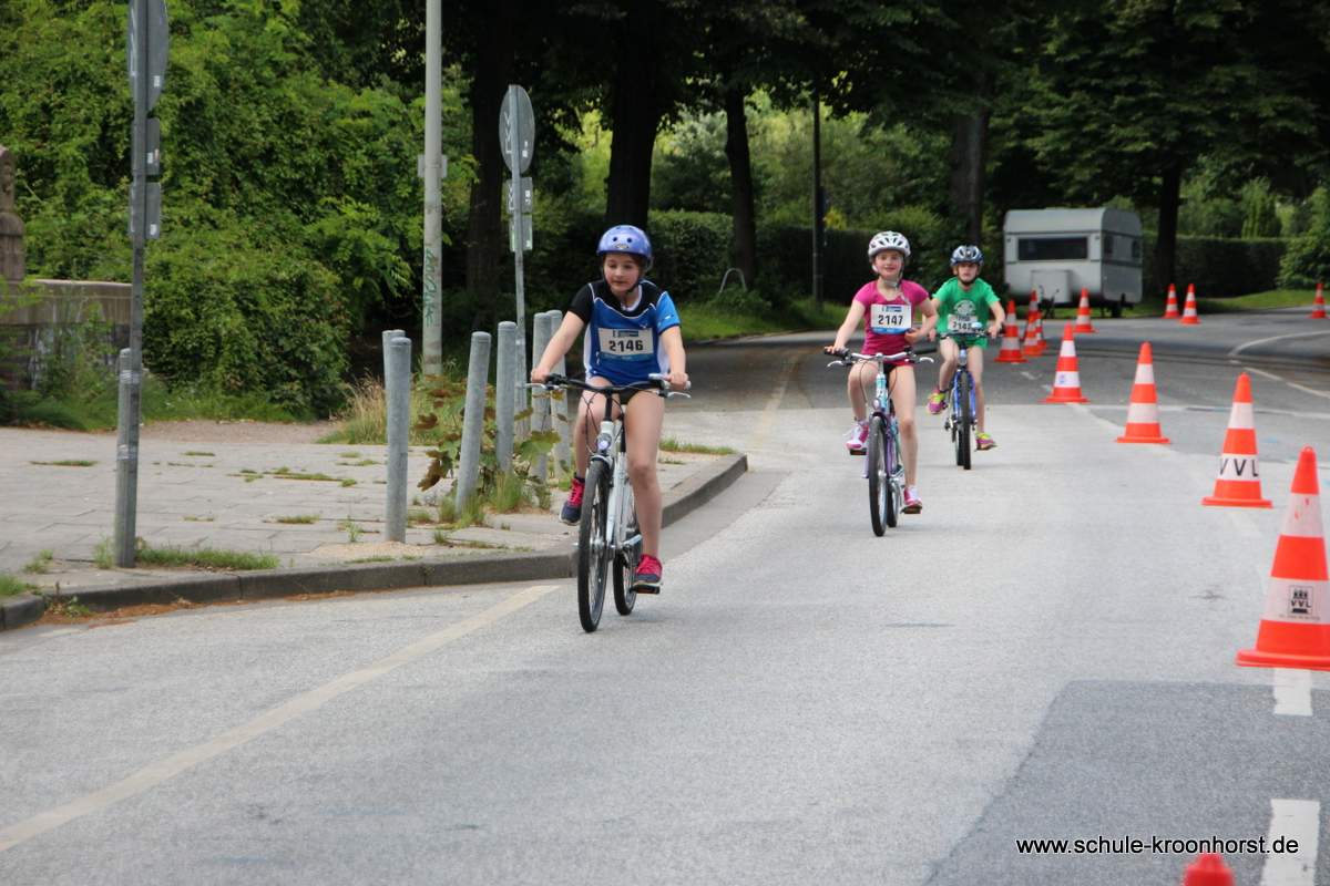 Mit viel Spaß und mit dem nötigen Ehrgeiz nahmen die Triathleten der Klasse 4b der Schule Kroonhorst bei herrlichem Wetter am 07.07.2016 am Kids World Triathlon im Hamburger Stadtpark teil.