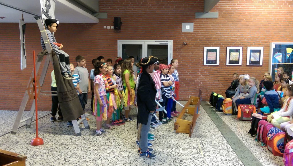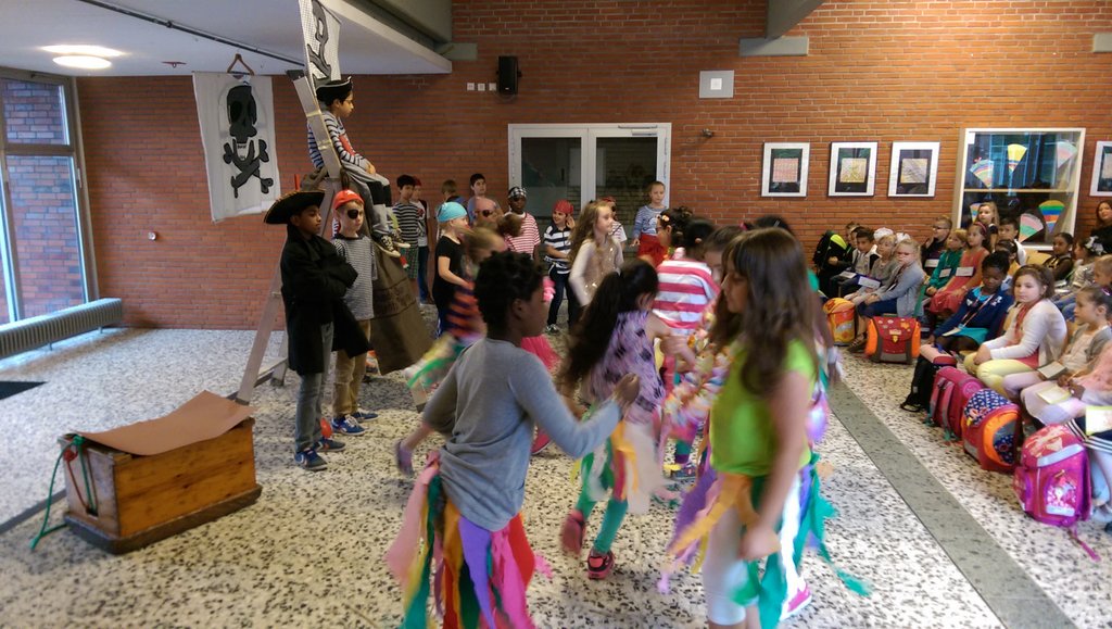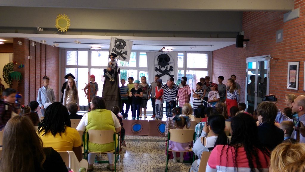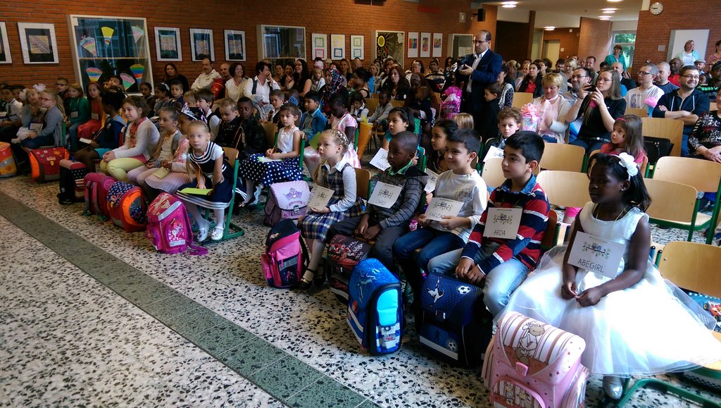 Es war sehr schön! Zum Glück hat alles gut geklappt, denn wir hatten vorher sehr viel geübt. Nach dem Theater sind die neuen Kinder mit ihren Lehrern in ihre Klassen gegangen und die Eltern haben in der Pausenhalle gewartet.