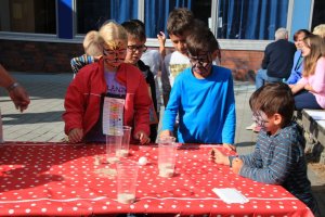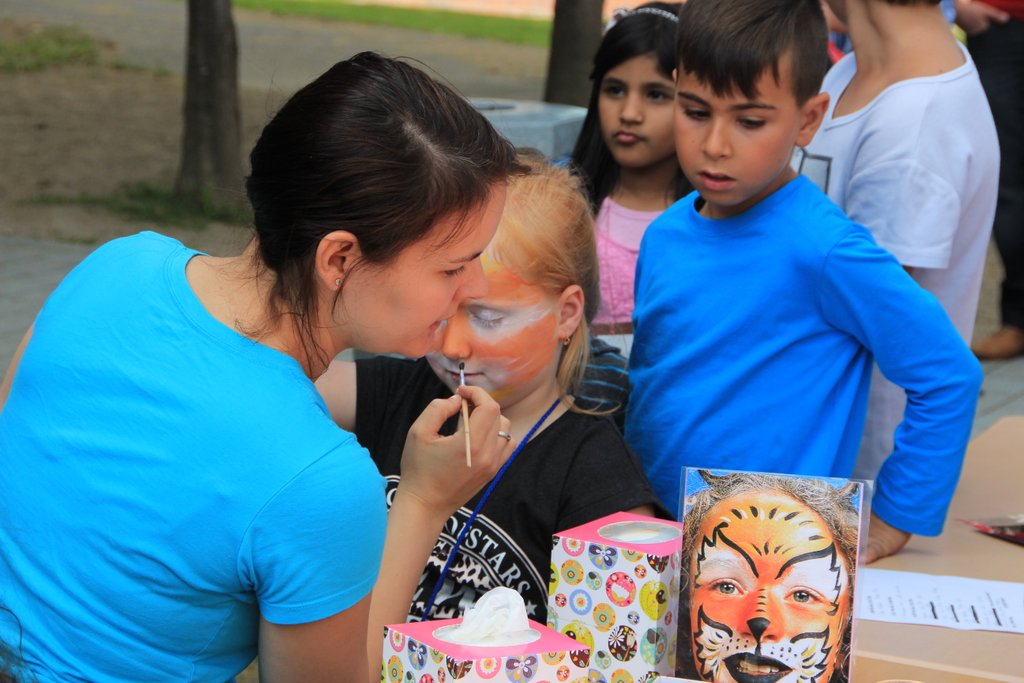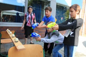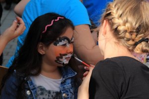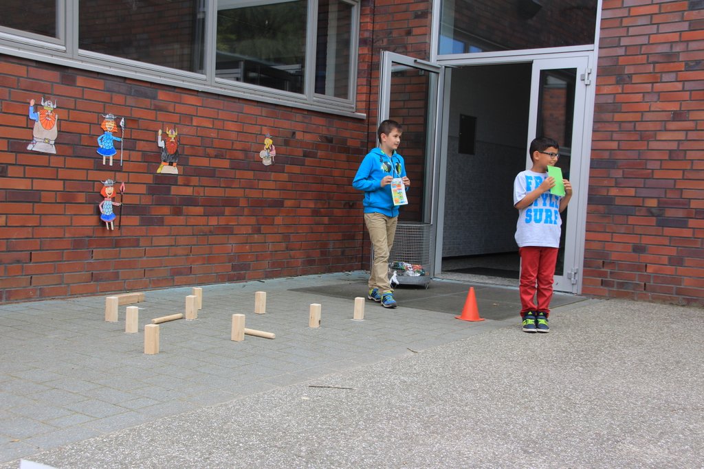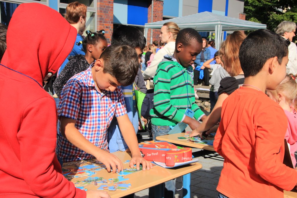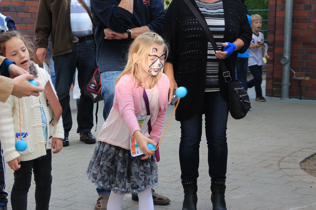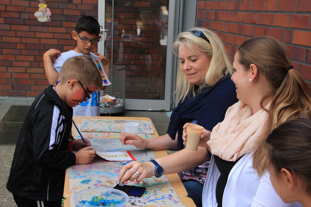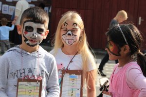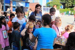 Am 10. September war in der Schule Kroonhorst richtig was los!!! Unser Sommerfest!!! Wie immer hatten wir schöne Sonne und viele durften schon um 13 Uhr nach Hause gehen, damit sie von 15 bis 17 Uhr dann voll fit sind! Bevor es losging haben alle Kinder und Erwachsenen ihren Stand aufgebaut. Es gab viele tolle Stationen als es endlich losging wie z.B. Dosen und Ringe werfen, Zielschießen, Wettpuzzlen, Kokosnusskegeln oder Tischkickern. Fast alle wurden auch perfekt geschminkt. Wir alle waren sehr aufgeregt und wussten nicht, wo wir zuerst hinsollten…Die 4a und 4b machten die Cafeteria. Da waren überall nur Torten, Kuchen, Muffins, Brownies und so viele leckere Sachen! Natürlich auch Getränke und Kaffee – und viele Wespen!