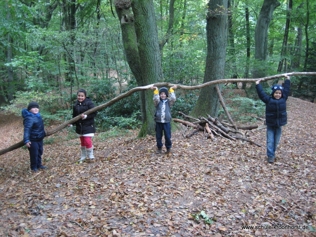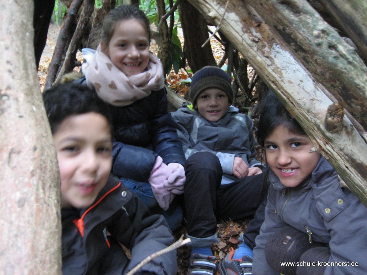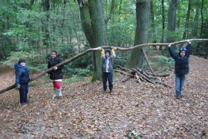 Aber auch das Waldgelände ist riesig und lädt zum Bauen von Häusern aus Ästen und Zweigen ein. Es gibt viele Spielgeräte draußen und zur Stärkung zwischendurch drei Mal was zu essen.