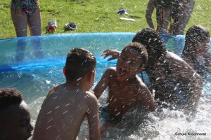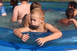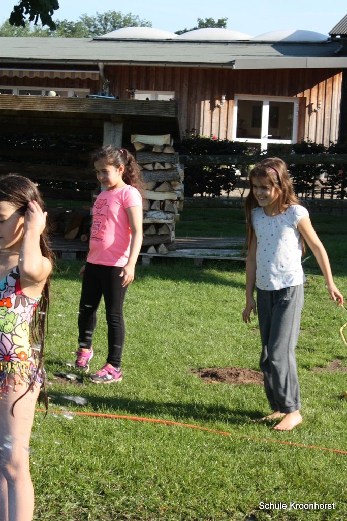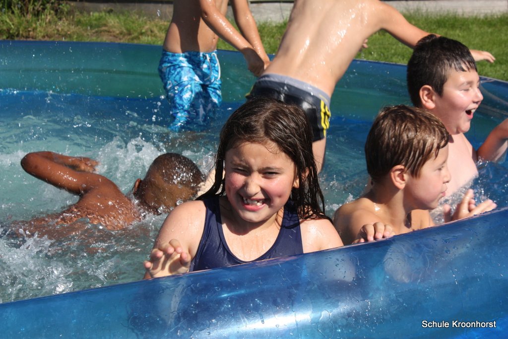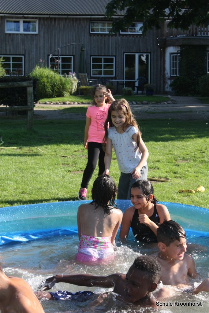 Am Montag sind wir mit dem Elitebus zum Klinthof gefahren. Wir haben gespielt und dann sind wir in den Pool gegangen. Dann haben wir Mittag gegessen. Anschließend sind wir wieder raus gegangen und haben weiter gespielt. Einige Kinder und Lehrerinnen sind spazieren gegangen. Dann sind wir schlafen gegangen.