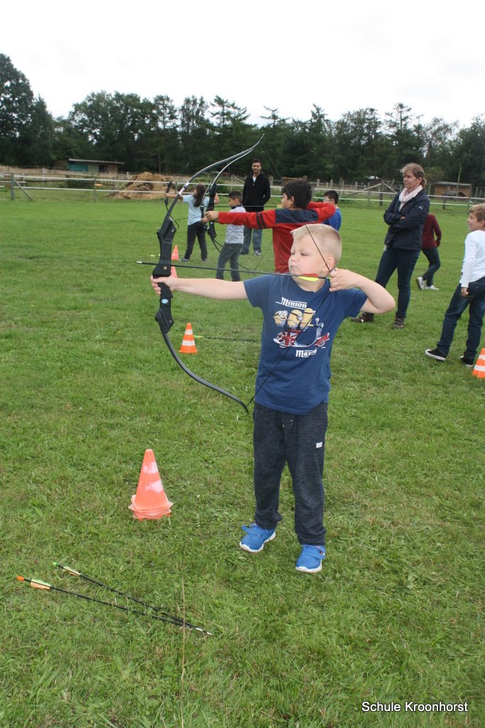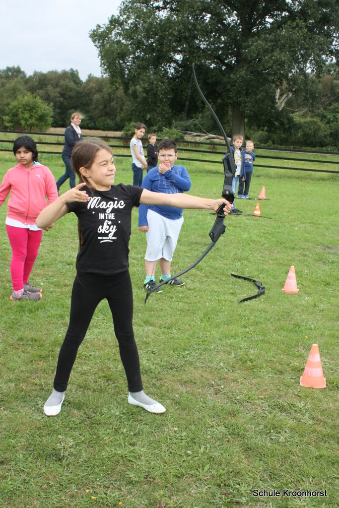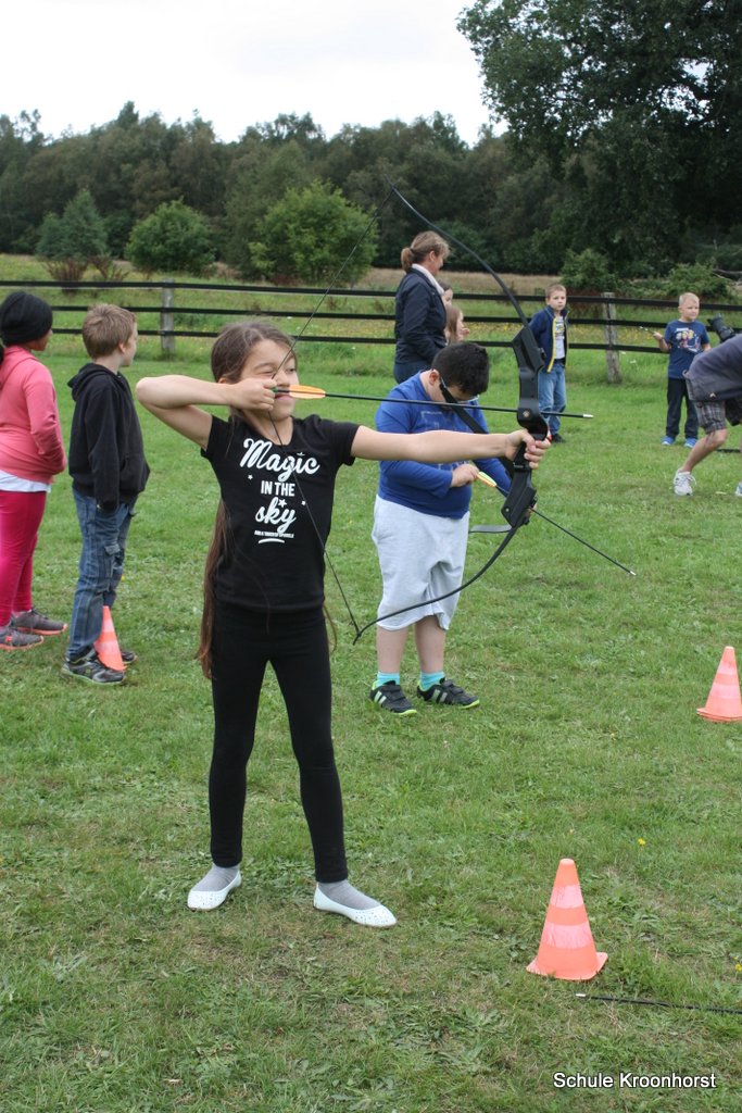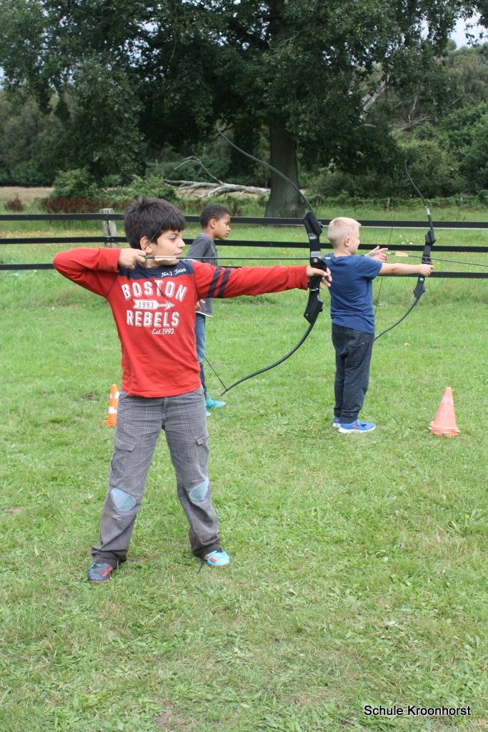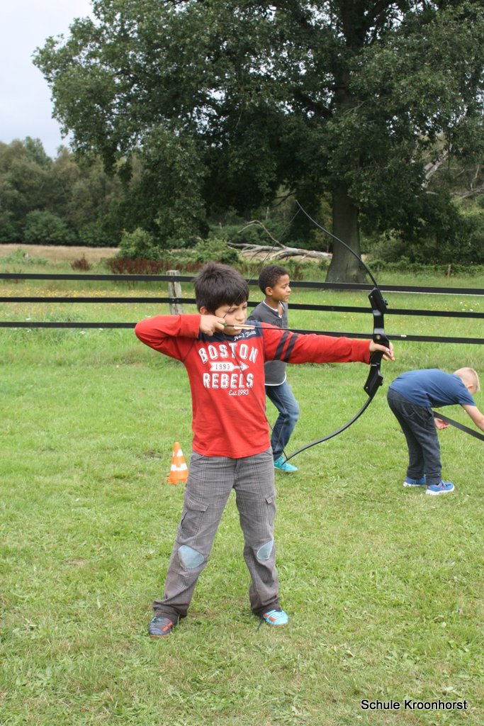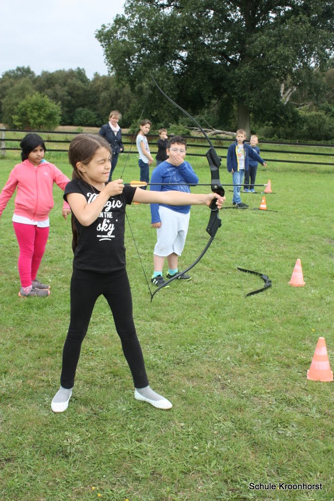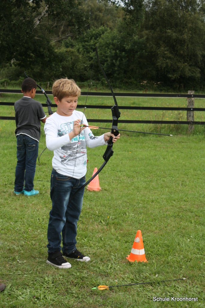 Am Dienstagmorgen haben wir eine Tierfütterung gemacht. Nach der Tierfütterung haben wir gefrühstückt. Nach dem Frühstück haben wir Bogenschießen und Reiten gemacht. Das konnte sich jeder aussuchen. Dann haben wir gespielt. Nach dem Spielen gab es Mittagessen. Nach dem Mittagessen sind wir zur Kiesgrube gewandert. Da war das richtig toll! Dann sind wir zurück gegangen und haben auf dem Klinthof gespielt. Nach dem Spielen und dem Abendessen haben wir am Lagerfeuer Stockbrot gemacht.