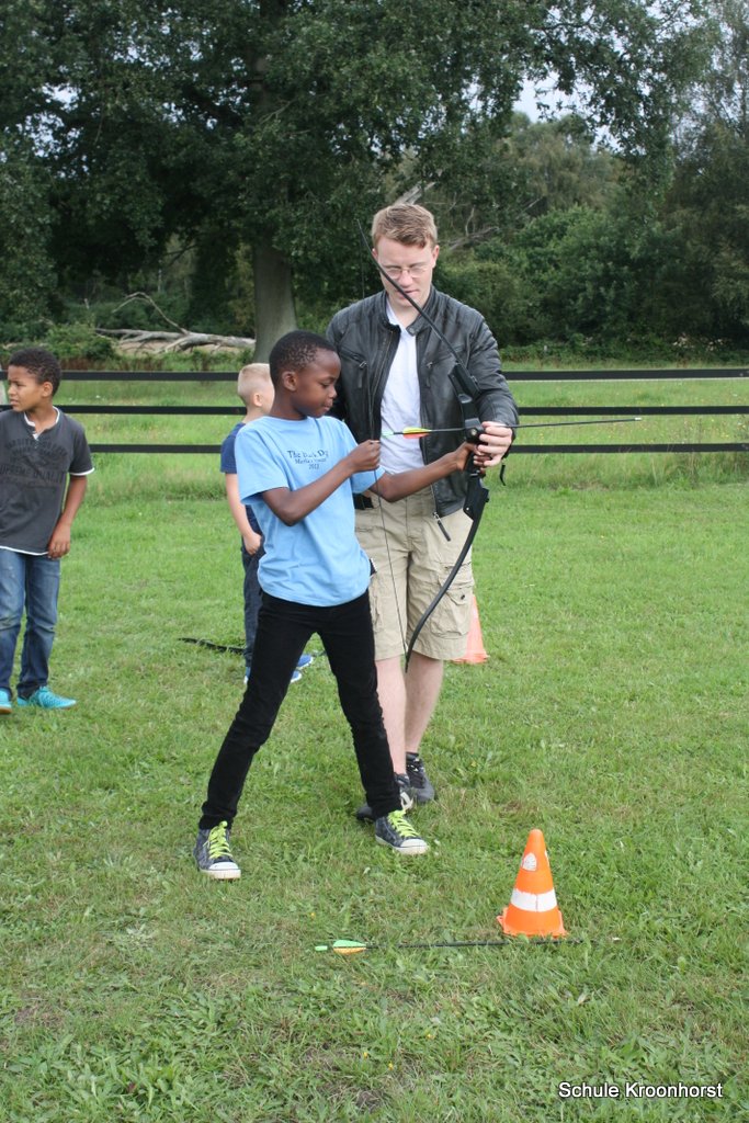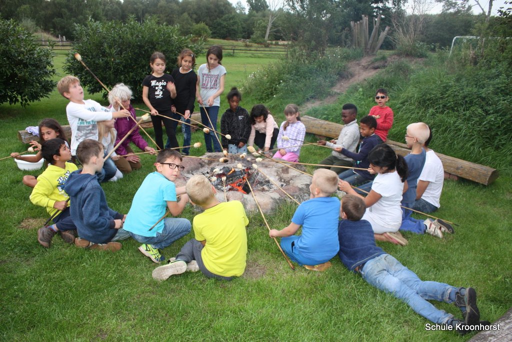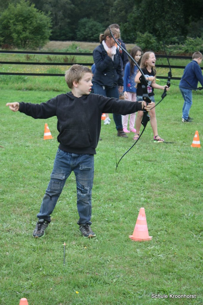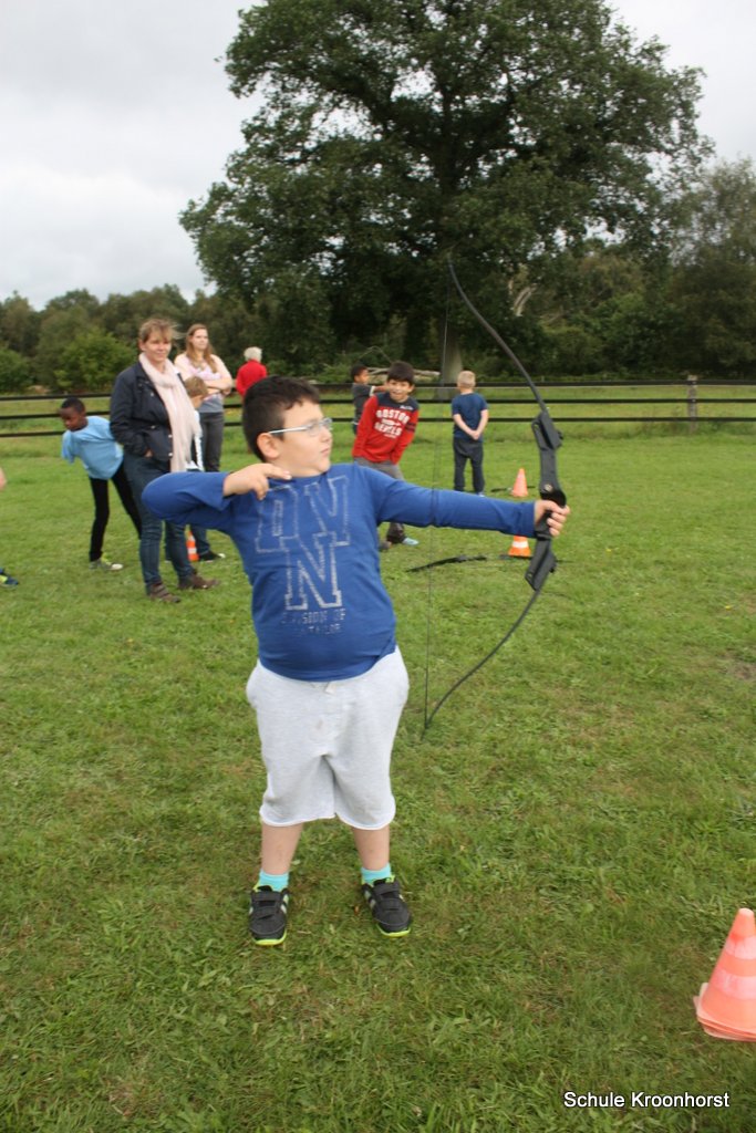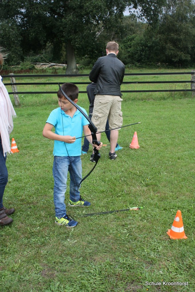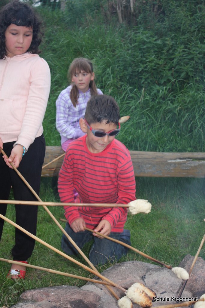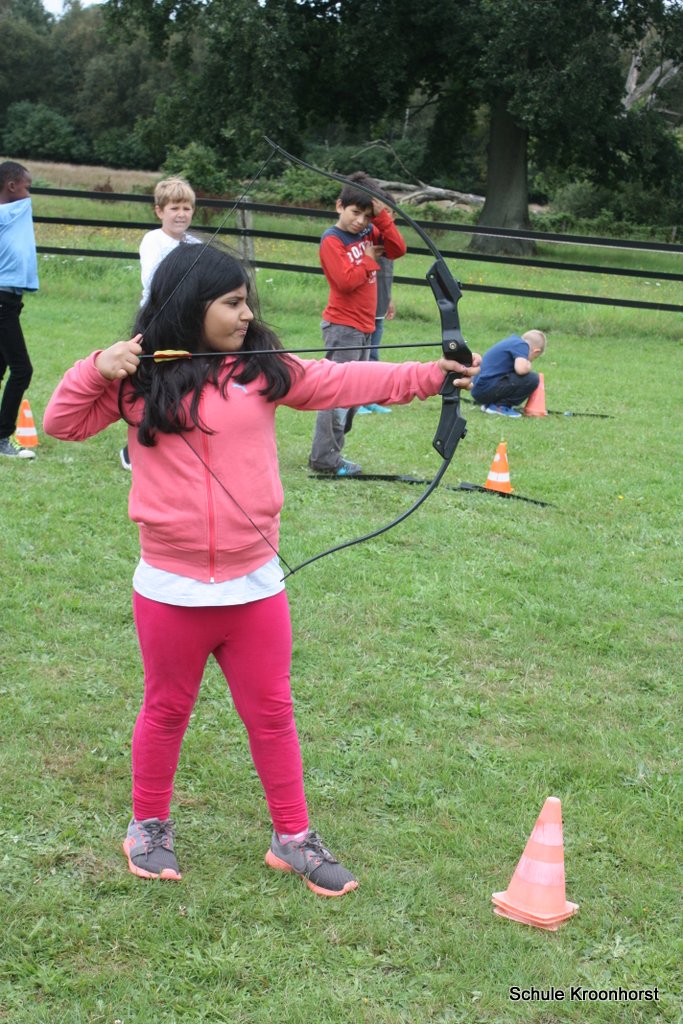 Am Dienstagmorgen haben wir eine Tierfütterung gemacht. Nach der Tierfütterung haben wir gefrühstückt. Nach dem Frühstück haben wir Bogenschießen und Reiten gemacht. Das konnte sich jeder aussuchen. Dann haben wir gespielt. Nach dem Spielen gab es Mittagessen. Nach dem Mittagessen sind wir zur Kiesgrube gewandert. Da war das richtig toll! Dann sind wir zurück gegangen und haben auf dem Klinthof gespielt. Nach dem Spielen und dem Abendessen haben wir am Lagerfeuer Stockbrot gemacht.