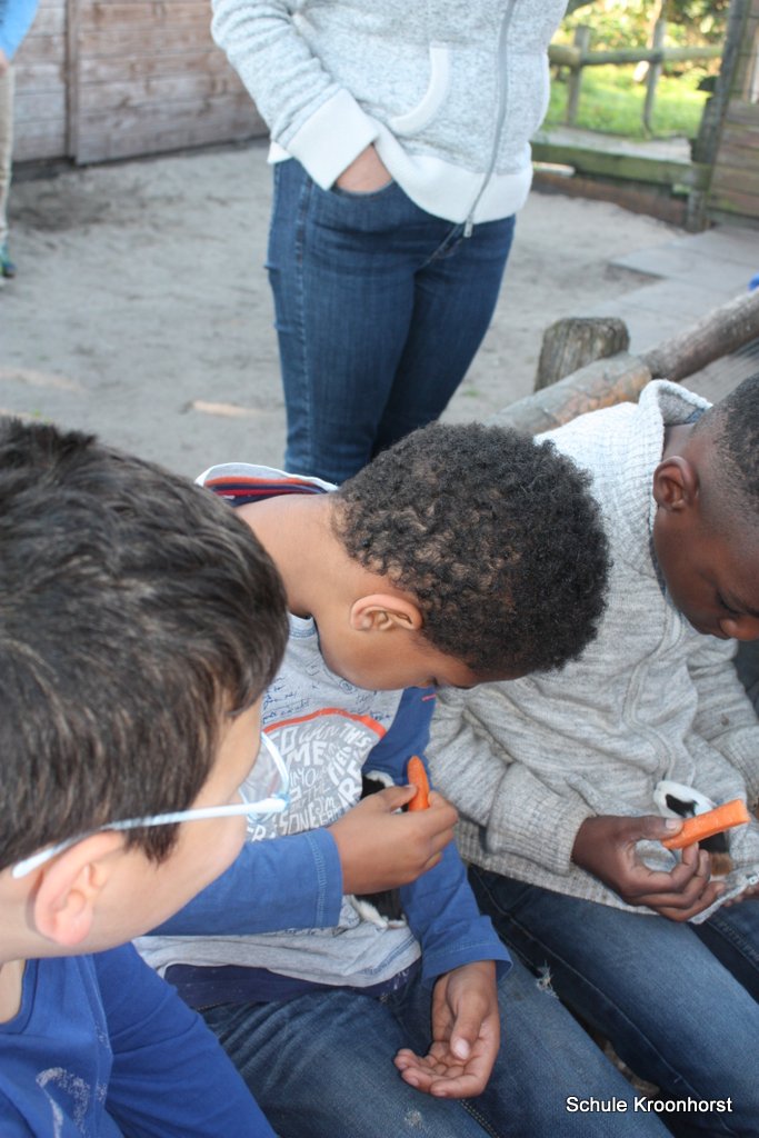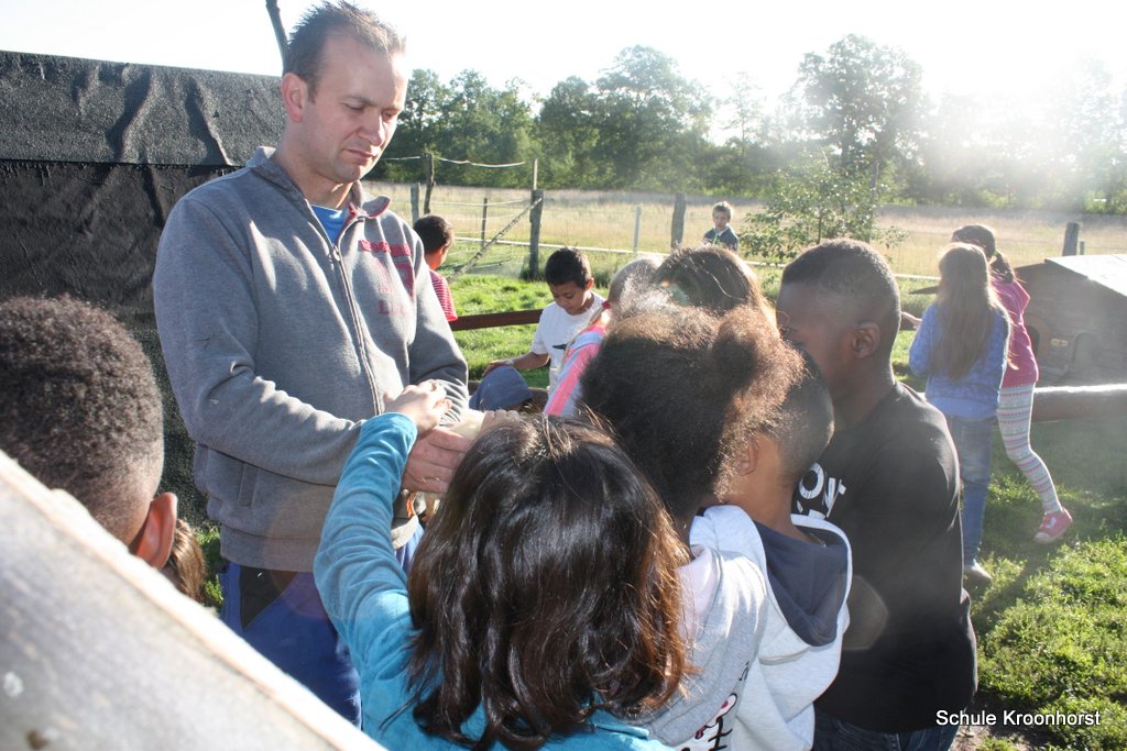Am Mittwoch sind wir zuerst zur Tierfütterung gegangen.Wir haben Ziegen, Gänse, Enten und Meerschweinchen gefüttert. Dann sind wir zum Frühstück gegangen. Wir haben Lunchpakete für unseren Ausflug zum Wildpark Eekholt gemacht. Wir mussten 2,9 km zum Wildpark wandern und haben eine Pause gemacht mit Lollis und Getränk.