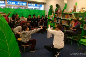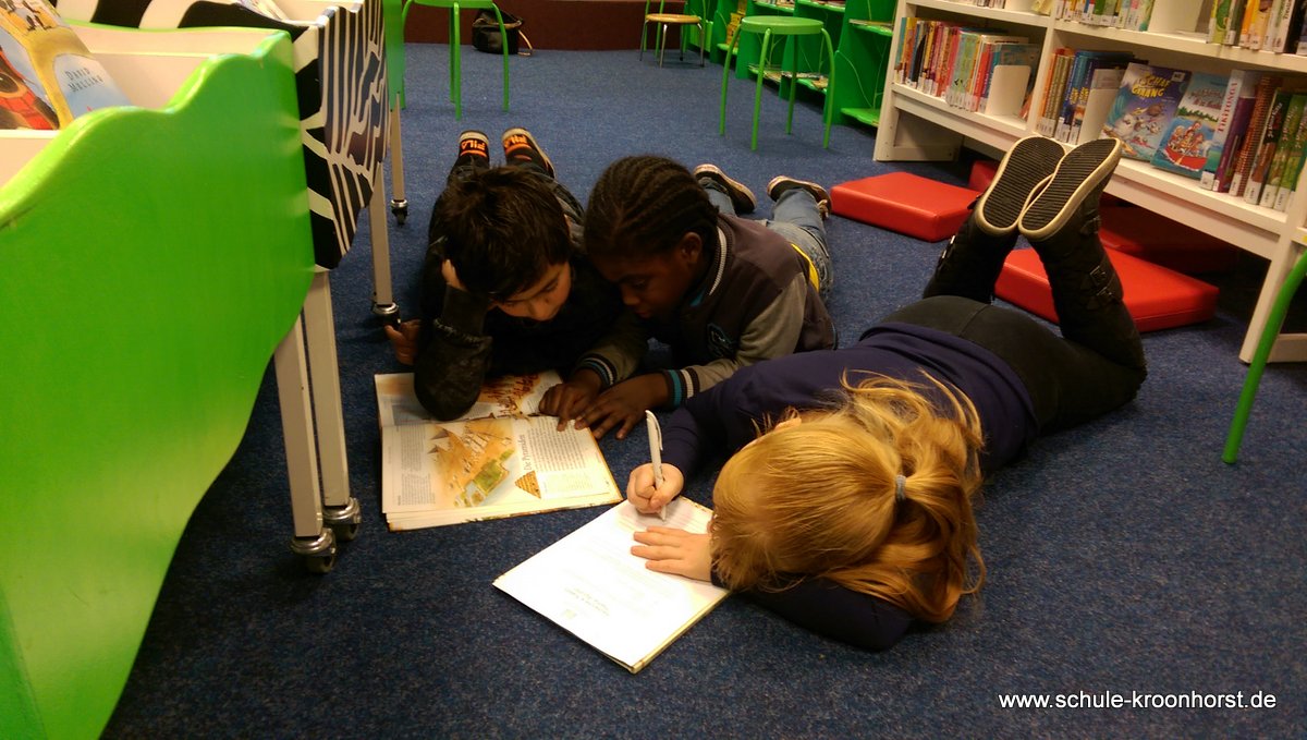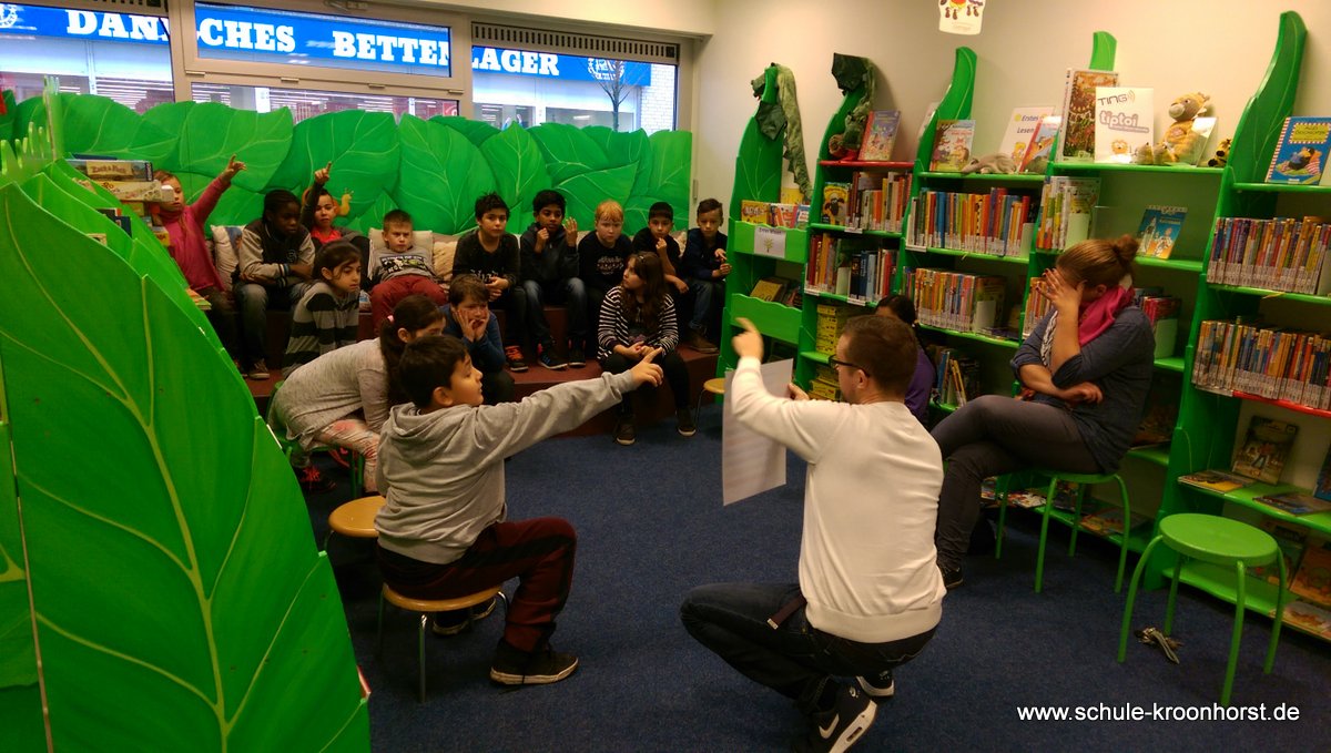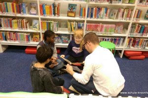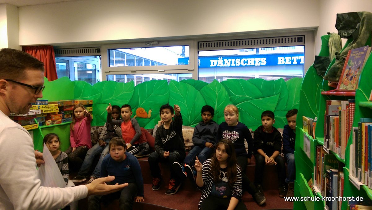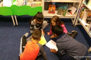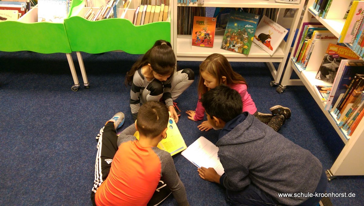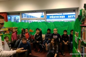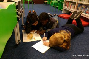 Am 6.11.2015 ist die Klasse 4a in die Bücherhalle gegangen. Frau Hegener und Frau Michels haben uns begleitet. Wir haben sowas wie eine Schnitzeljagd gemacht. Wir haben einen Zettel bekommen und da standen Fragen drauf. Dann mussten wir sie beantworten. Wir konnten die Fragen nur beantworten, wenn wir die Informationen in speziellen Büchern, die zu unserem Thema passten, gefunden haben. Der uns das erklärt hat, hieß Jens. Wir haben an diesen Tag sehr viel darüber gelernt, was Schachbücher sind und was Geschichten sind und wie wir Informationen finden.Das war unser Ausflug in die Bücherhalle!