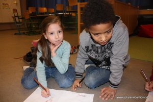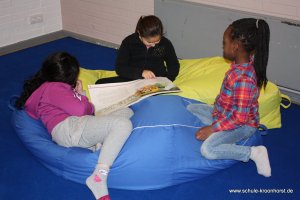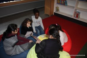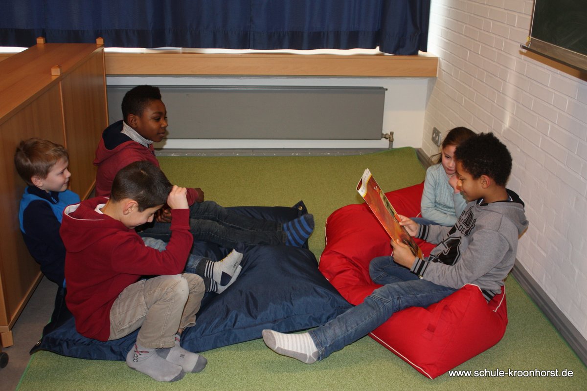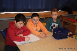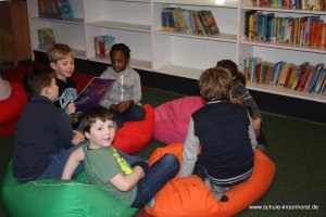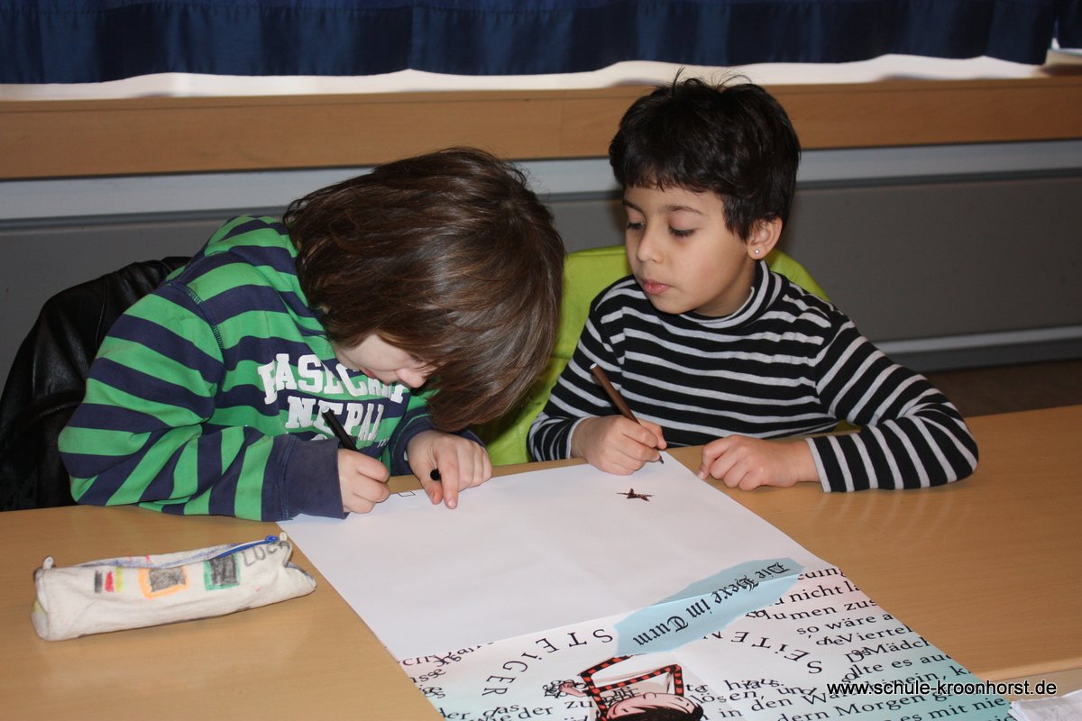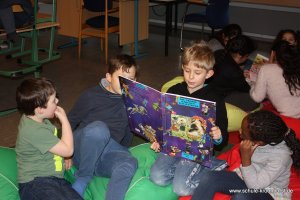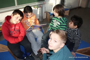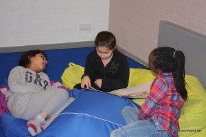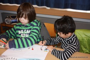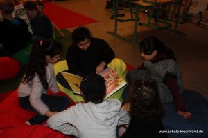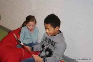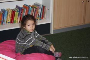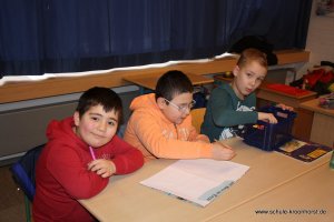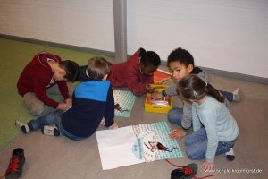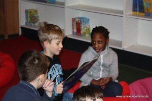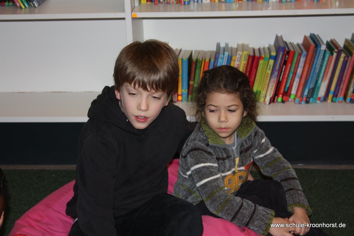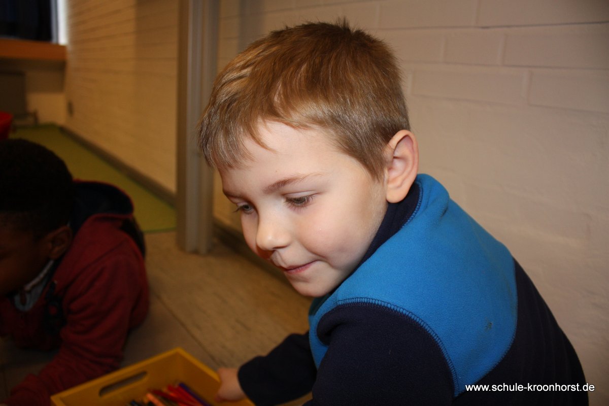 Die Vorschüler der Elefantenklasse besuchen ihre Paten in der 3b. Alle sind schon vorher sehr aufgeregt. Die „Elefanten“, weil sie sich auf ihre Paten freuen und die „Großen“ , weil sie Märchen vorlesen wollen und schon sehr lange dafür geübt haben.