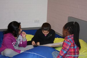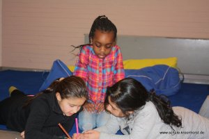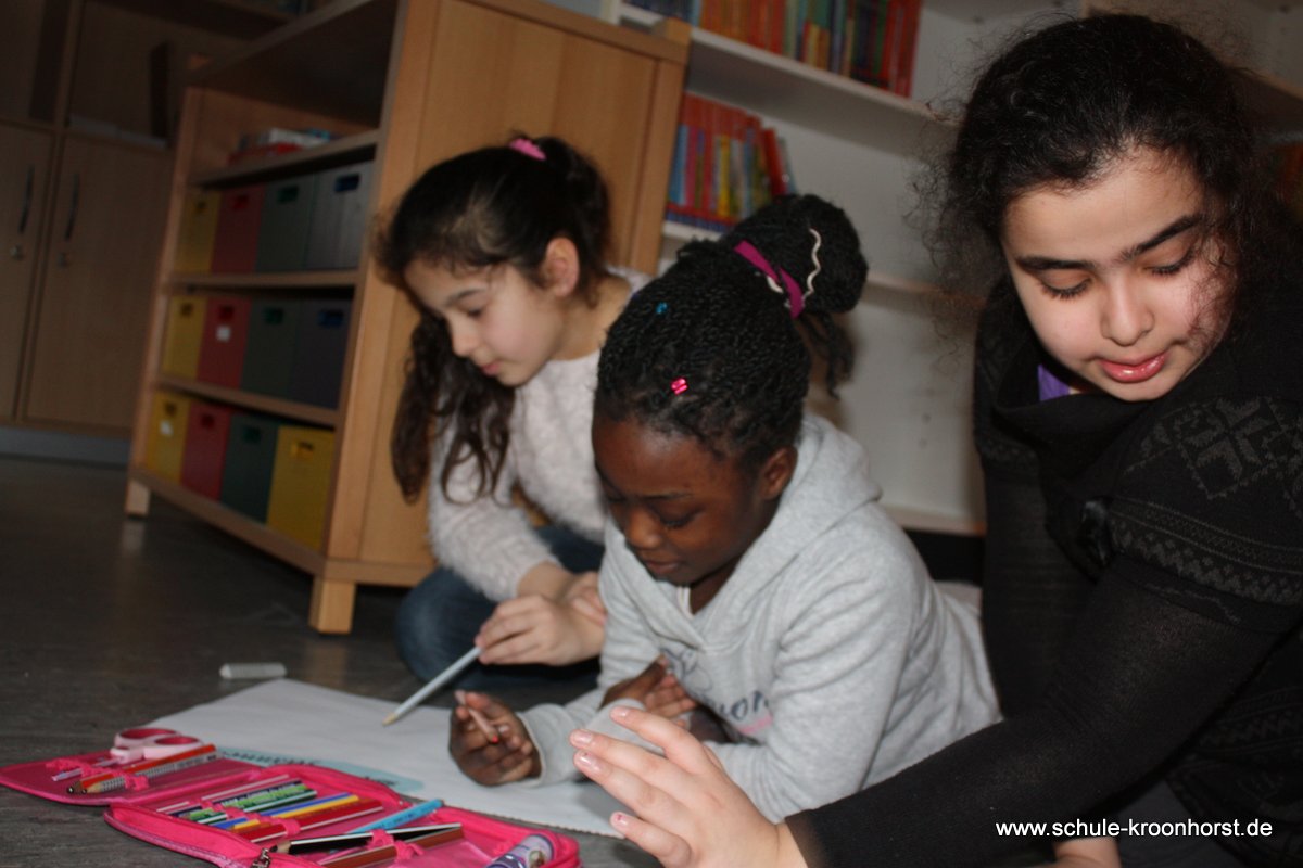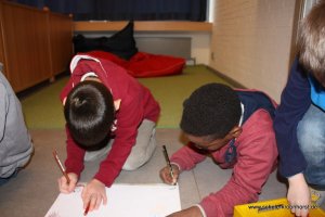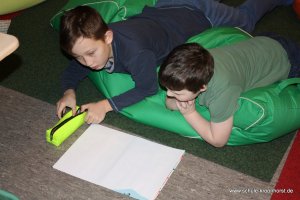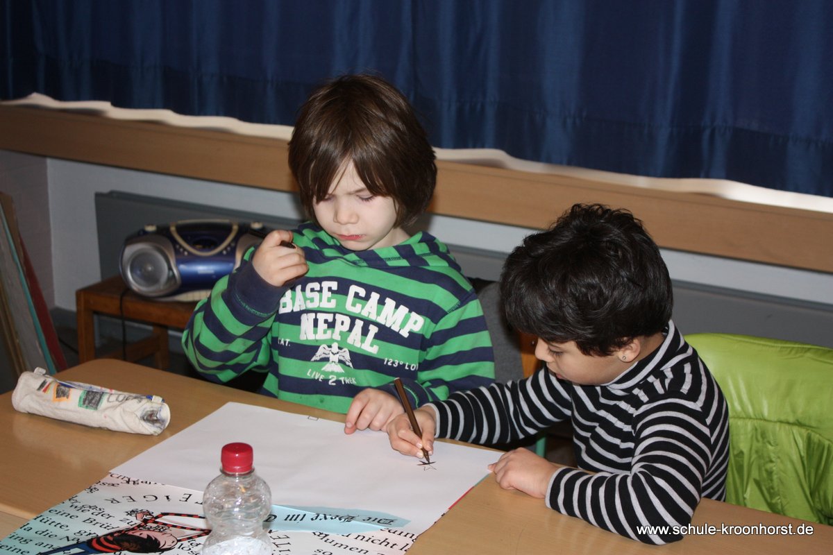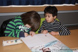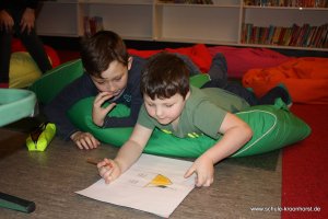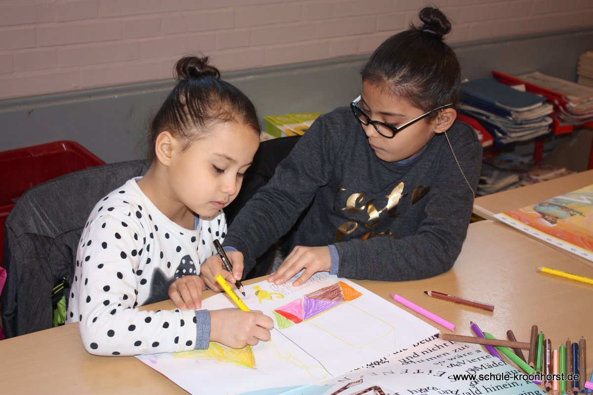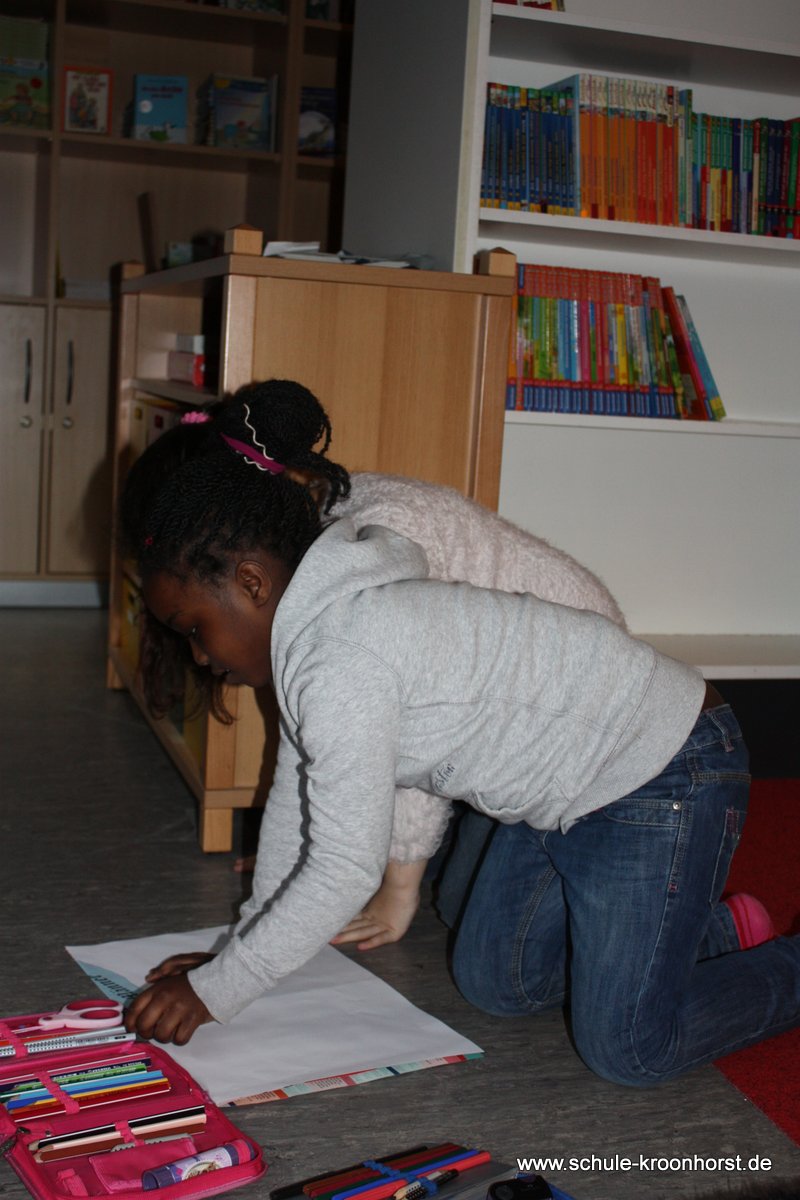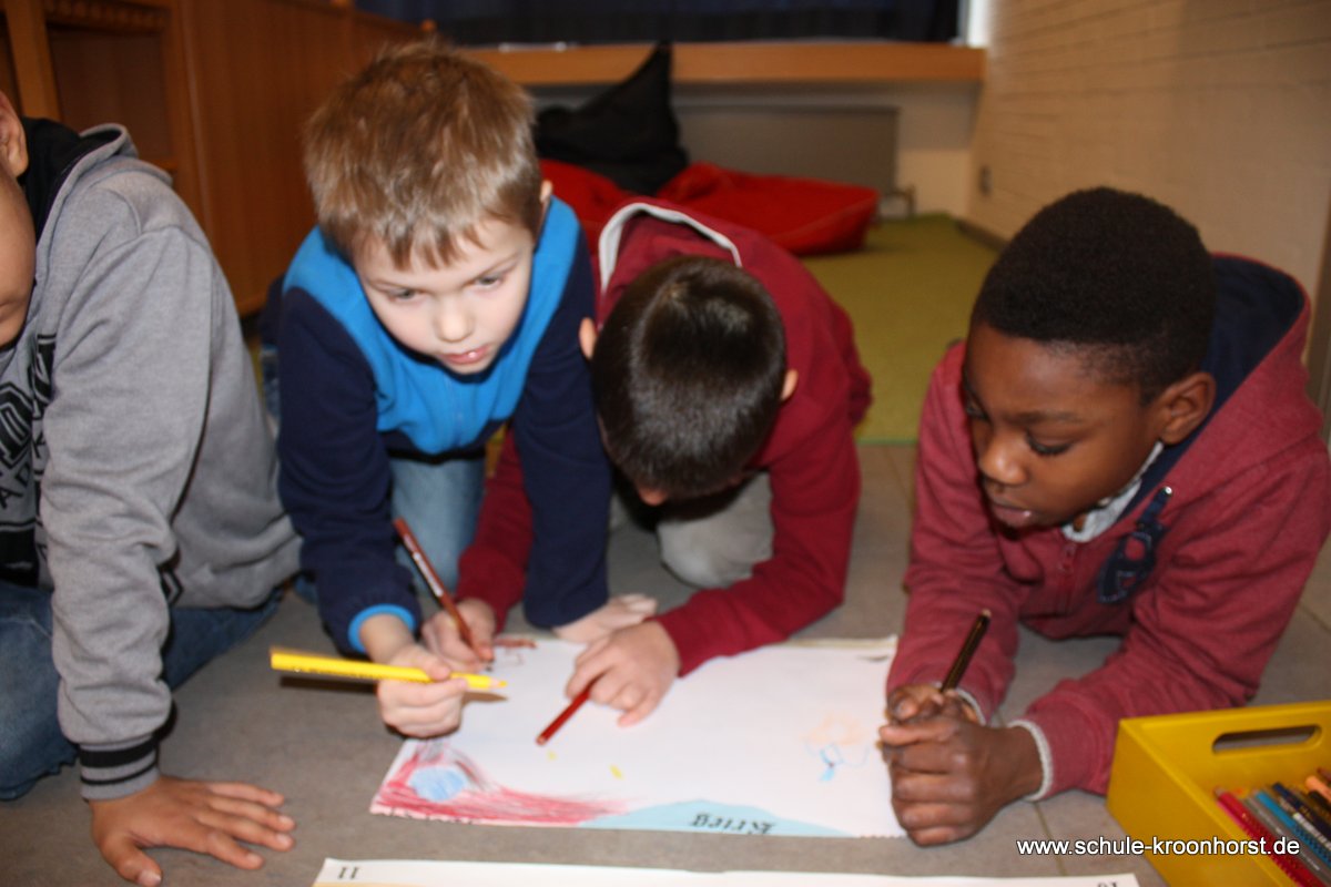 Nach der ersten wuseligen Begrüßung verteilen sich die Kinder in kleinen Gruppen im ganzen Gebäude und es erklingen die Märchen von Aladin, Dornröschen, der Hexe im Turm …. und noch einige mehr. Im Anschluss werden die Stifte ausgepackt und ein Bild zum Märchen entsteht.
