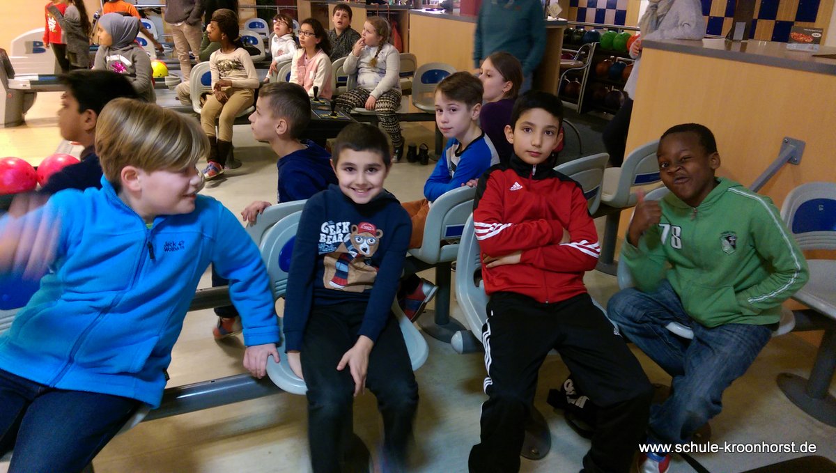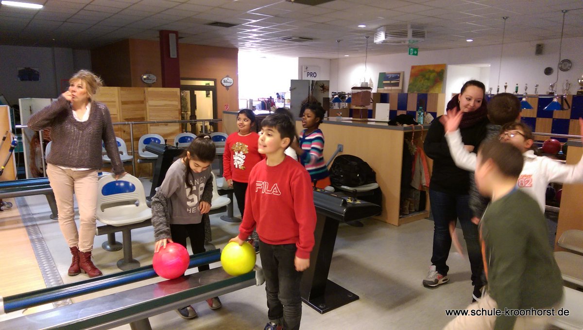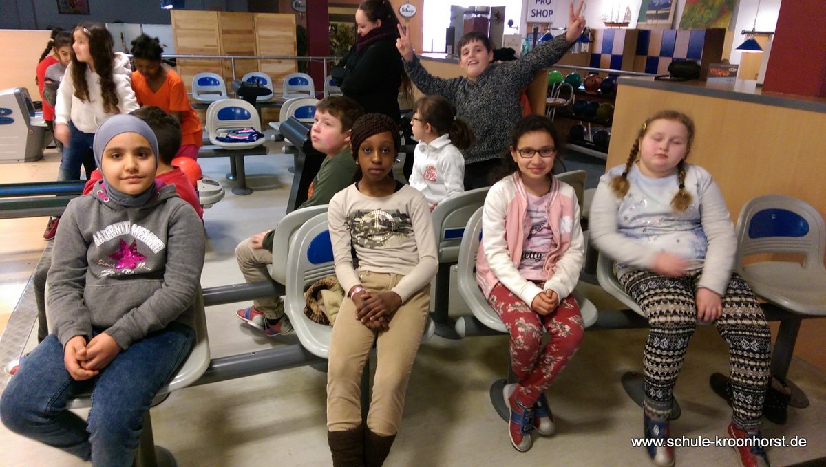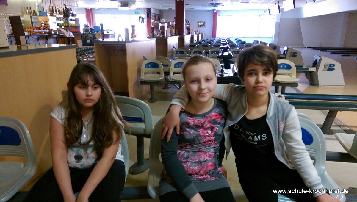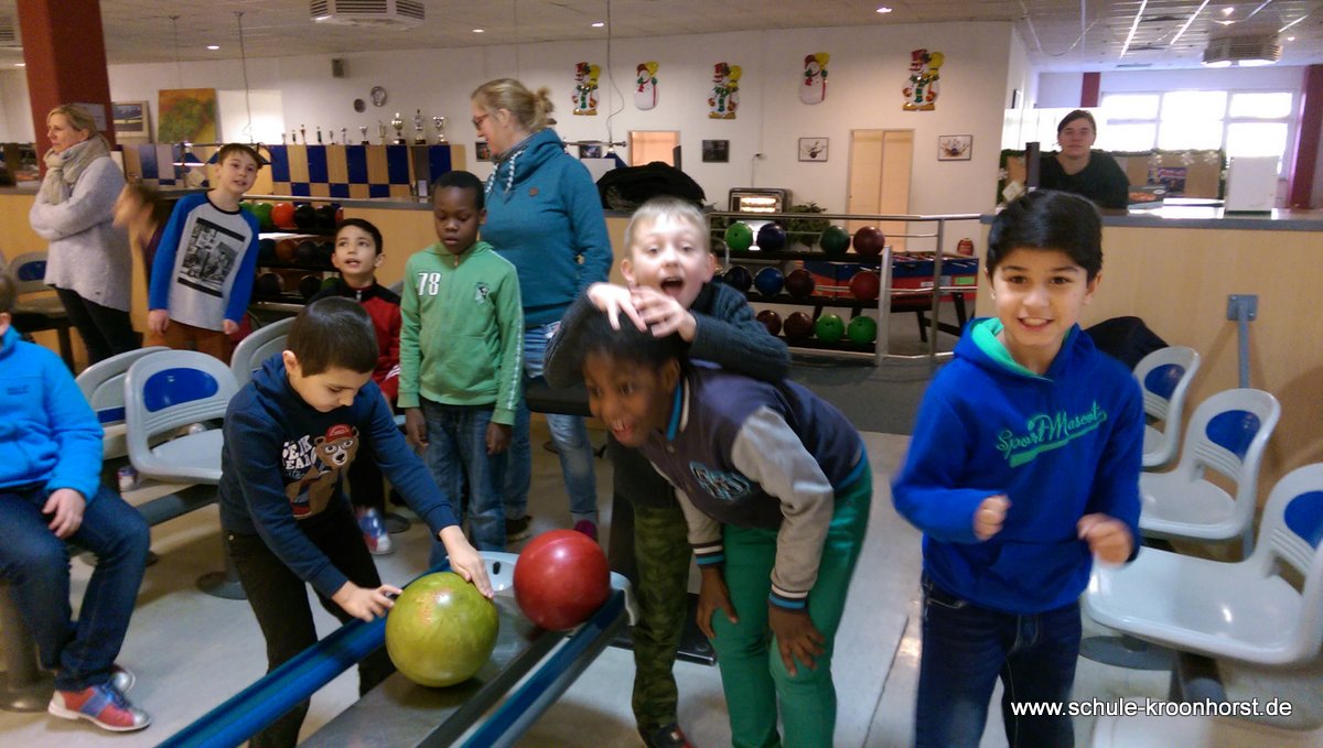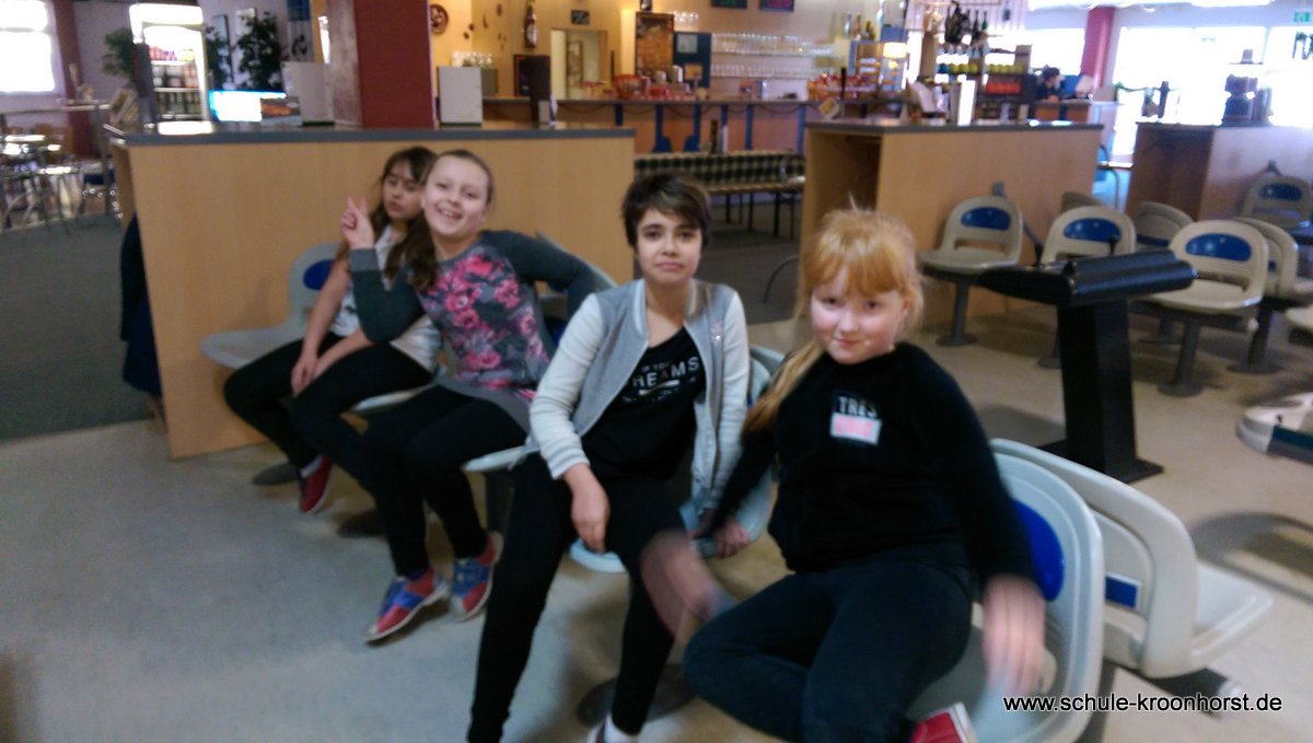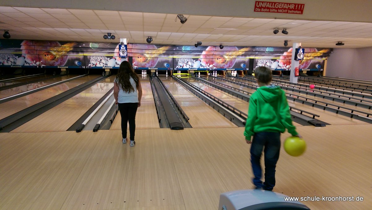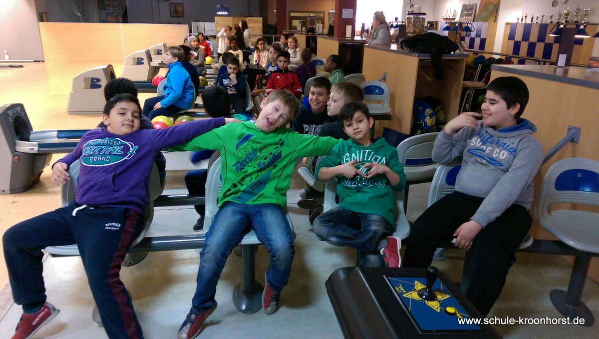 Am 17. Februar machten wir uns gemeinsam mit der 4b auf zur Bowlinghalle in Osdorf. Da die Bowlingbahn direkt gegenüber der Schule Barlsheide liegt, gingen wir bei strahlendem Sonnenschein und klirrender Kälte zu Fuß dorthin.