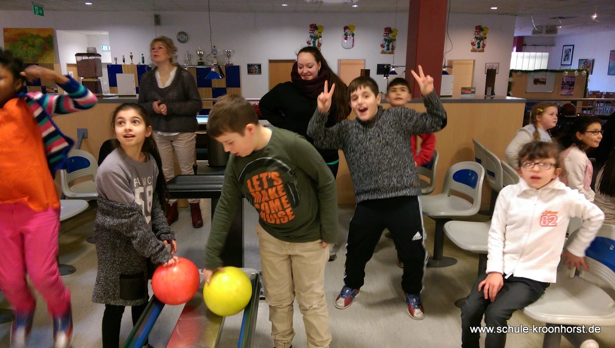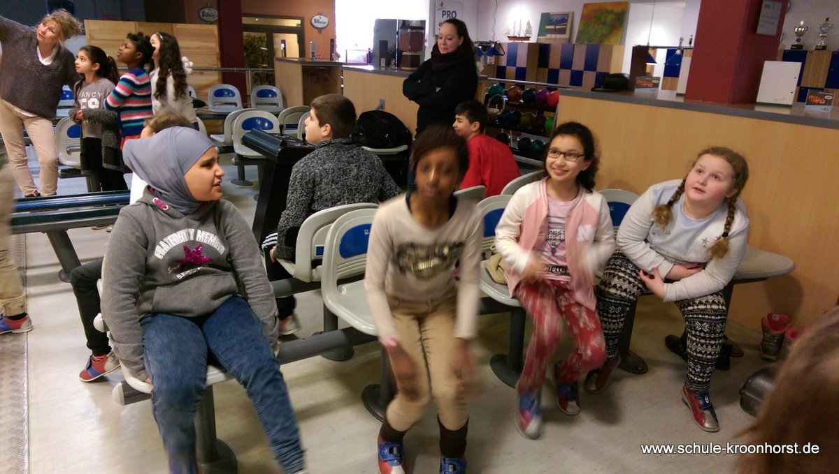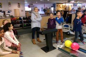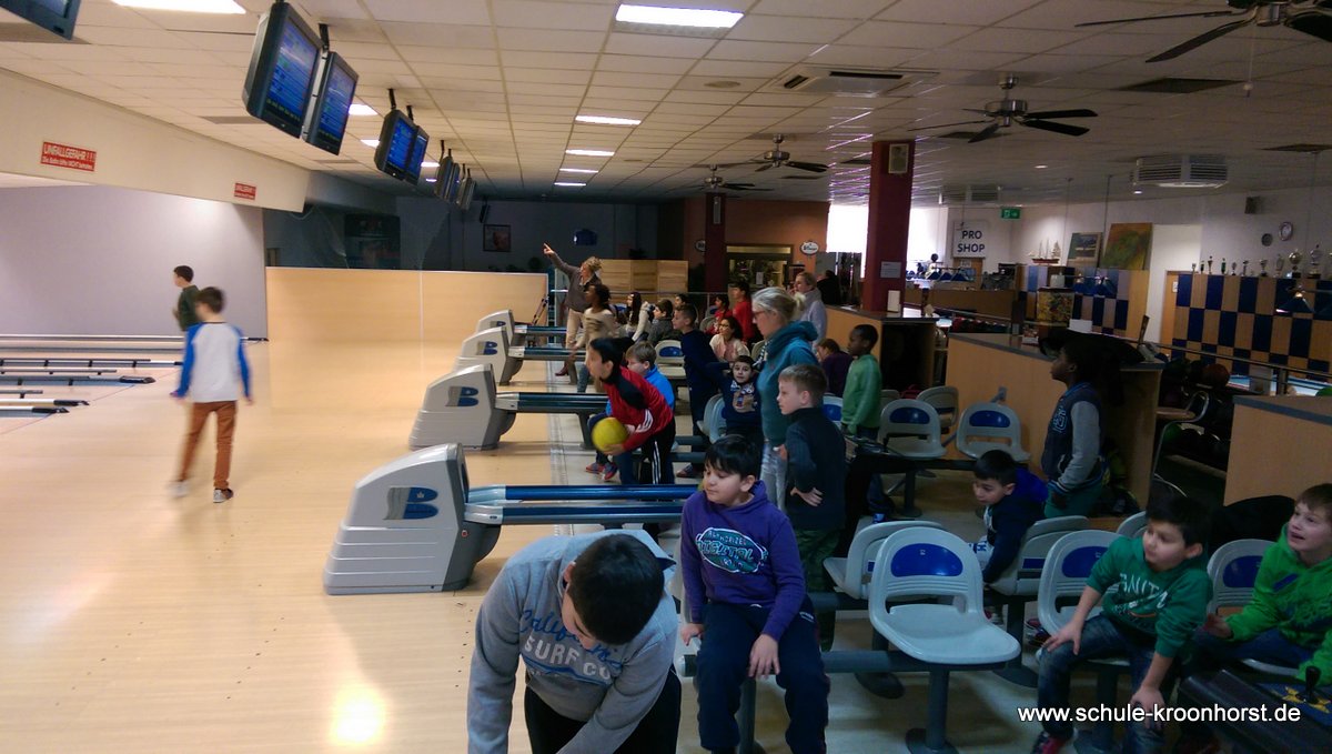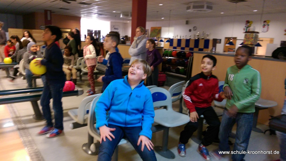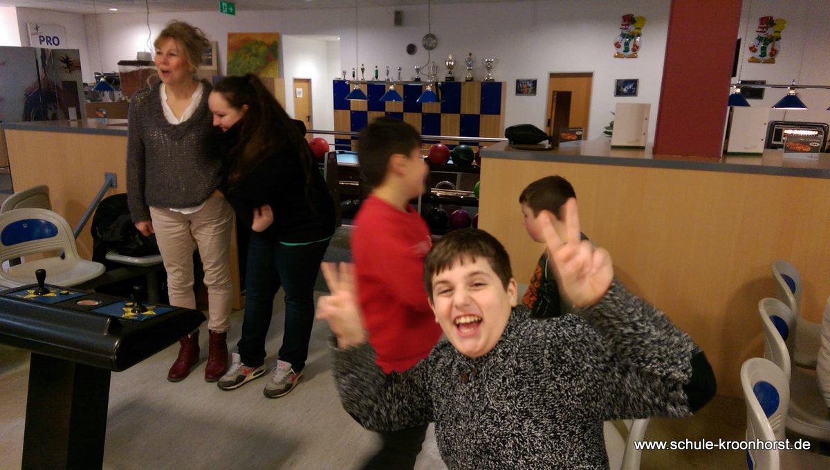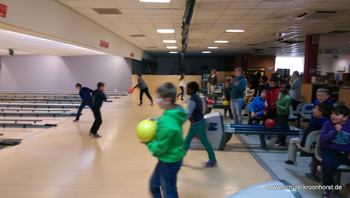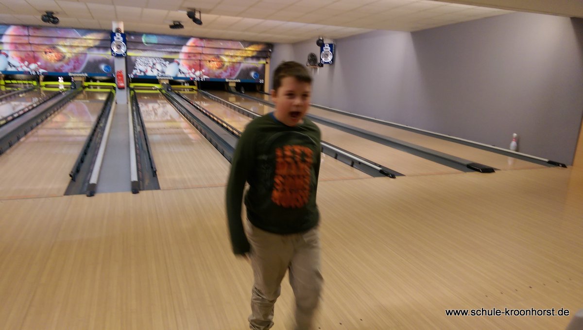 Am 17. Februar machten wir uns gemeinsam mit der 4b auf zur Bowlinghalle in Osdorf. Da die Bowlingbahn direkt gegenüber der Schule Barlsheide liegt, gingen wir bei strahlendem Sonnenschein und klirrender Kälte zu Fuß dorthin.