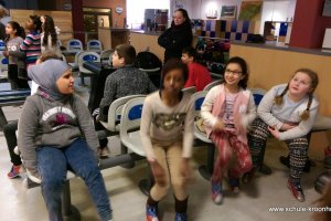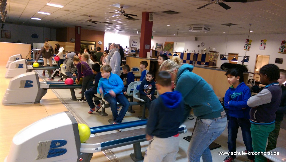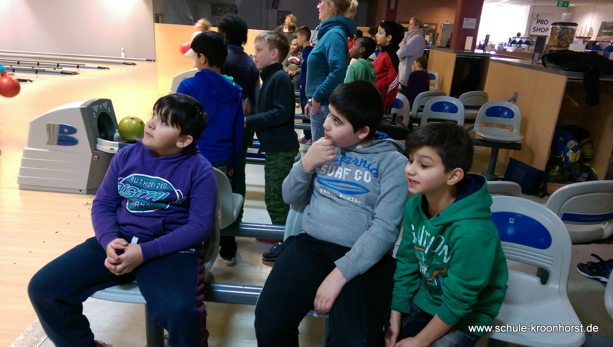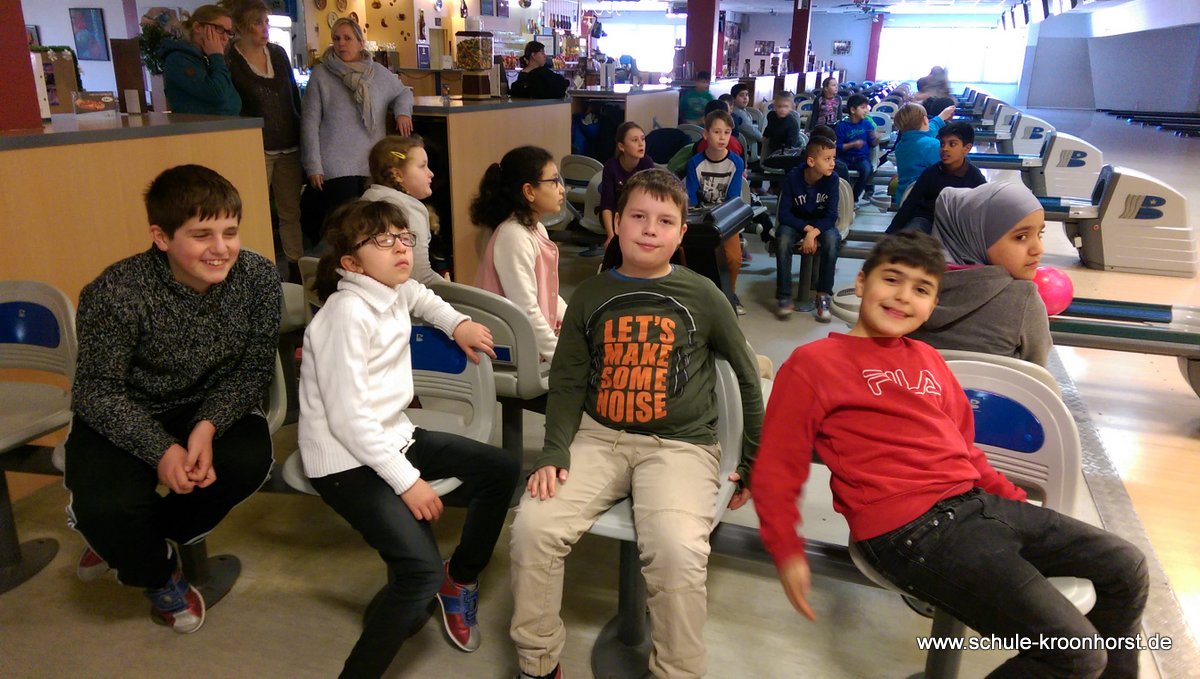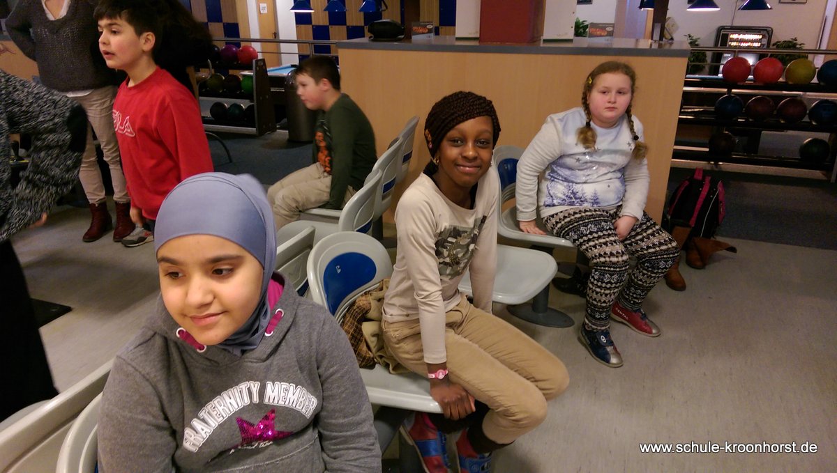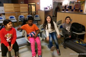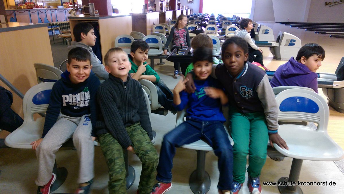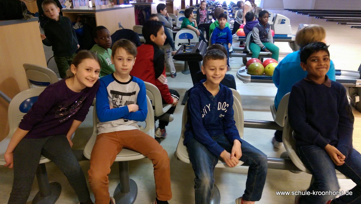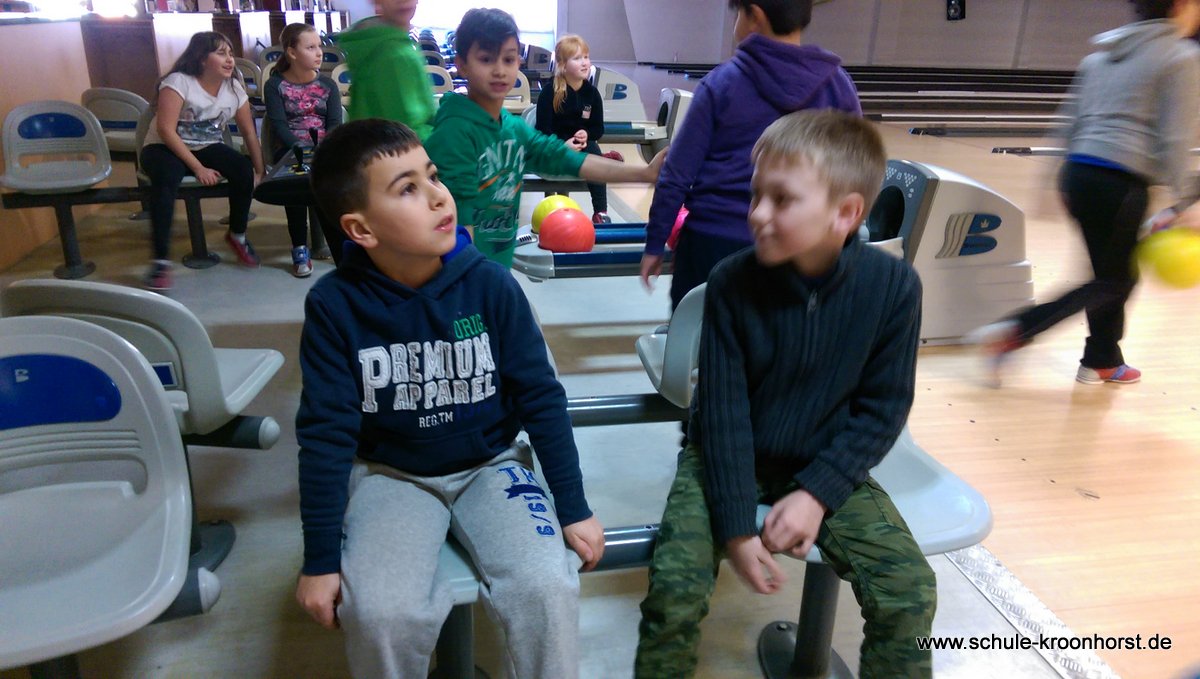 Am 17. Februar machten wir uns gemeinsam mit der 4b auf zur Bowlinghalle in Osdorf. Da die Bowlingbahn direkt gegenüber der Schule Barlsheide liegt, gingen wir bei strahlendem Sonnenschein und klirrender Kälte zu Fuß dorthin.