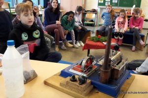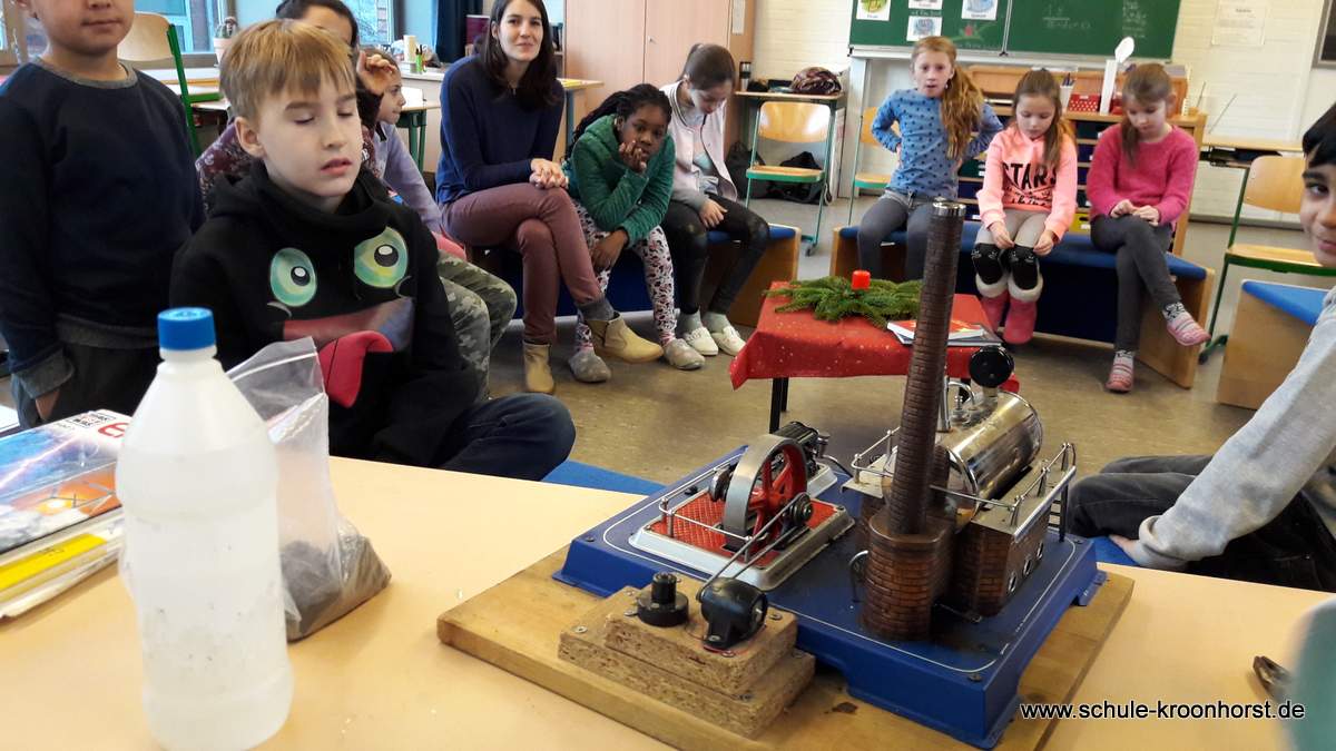 Am Dienstag, den 29.11.16 kam Frau Merkle als Umweltbeauftragte von der „Deutsche Umwelt Aktion e.V.“ in unsere Klassen, um zum Thema „Energie“ zu erzählen und ein Mini-Kraftwerk inklusive Kohle, Dampf und Qualm vorzuführen.