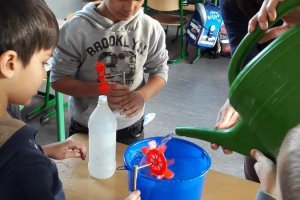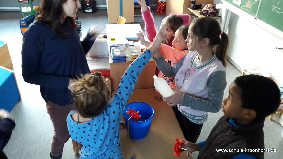Anschließend lernten die Kinder in kleinen Experimenten alternative Energiequellen wie Wind-, Wasser- und Solarkraft kennen.