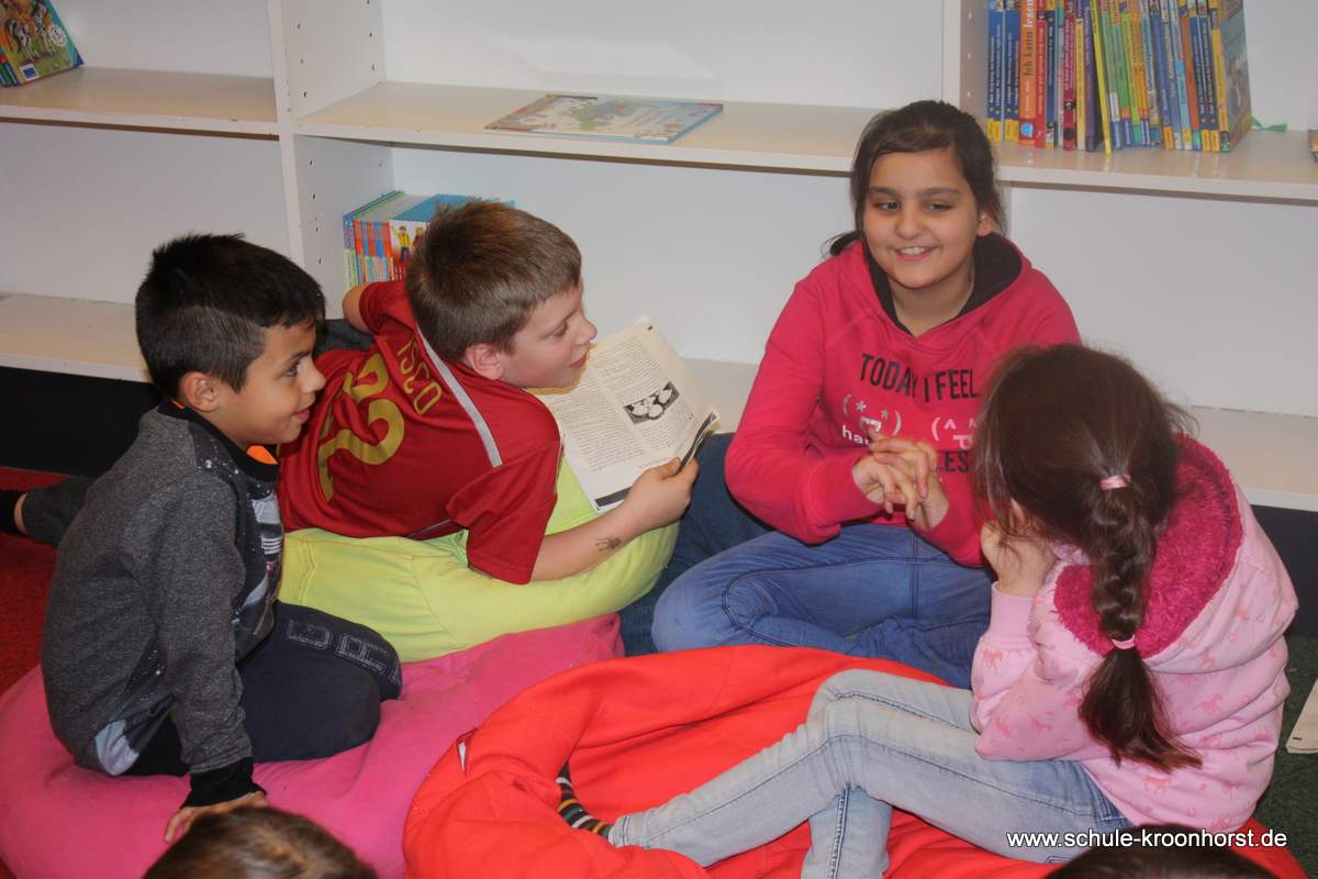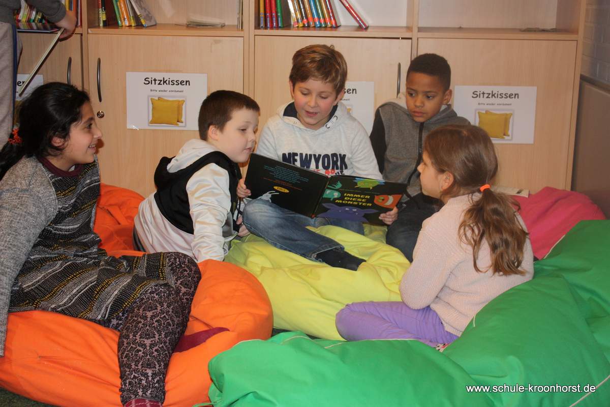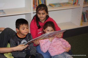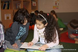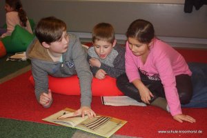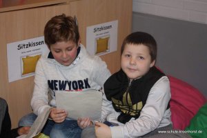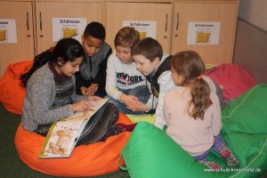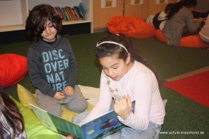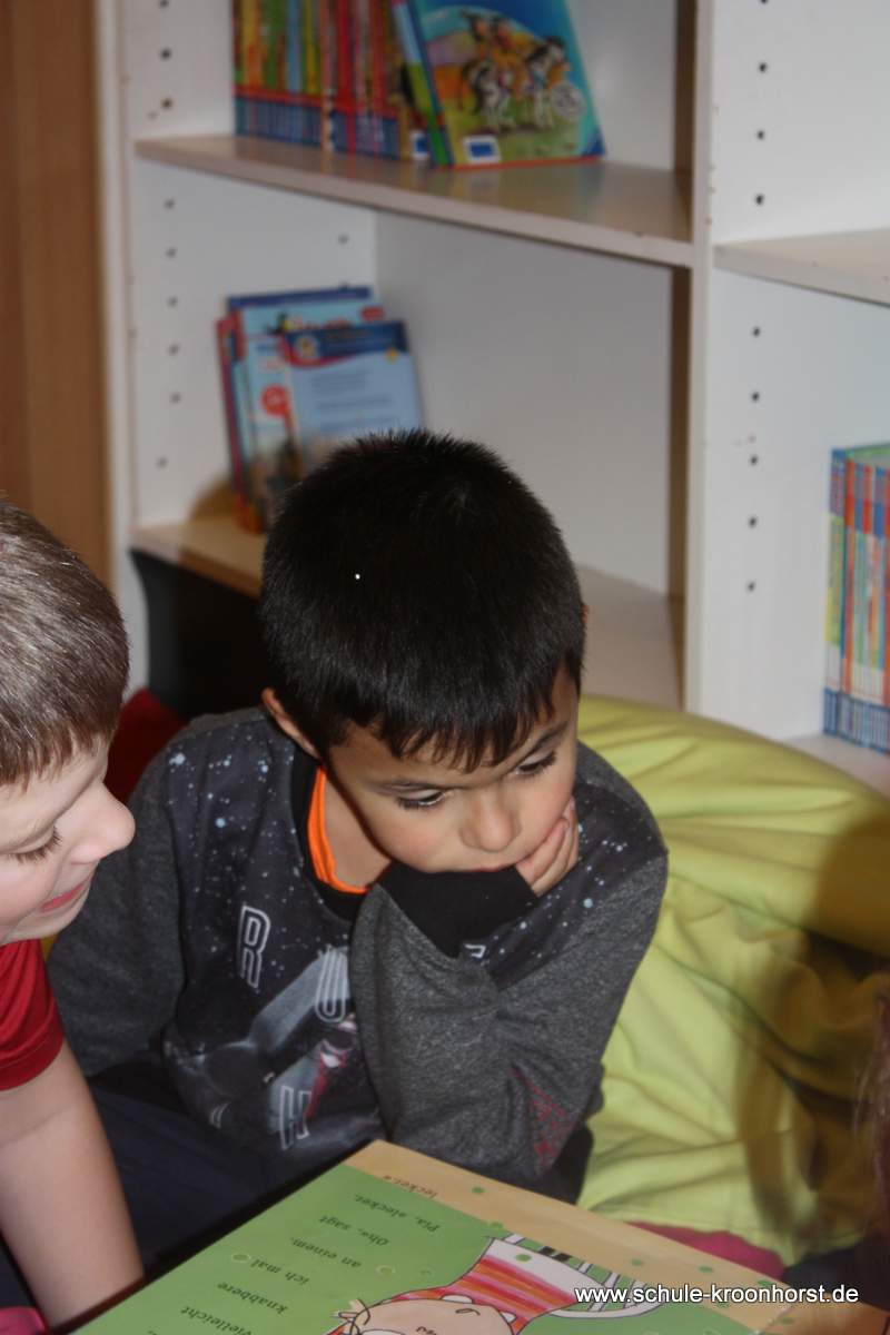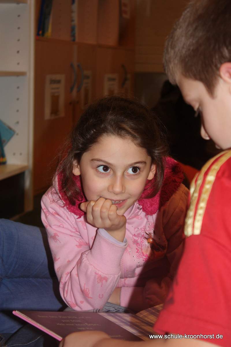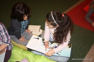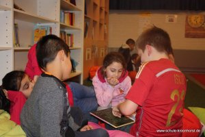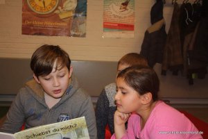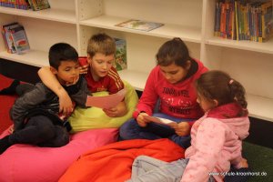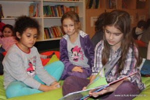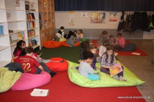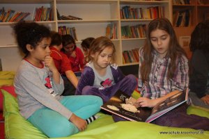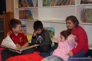Im Computerraum wurde sich in Alfons Lernwelt getümmelt oder die Schlaumäuse wurden überlistet. In der Schülerbücherei lasen die erfahrenen Leser aus der 4b den Kindern aus der 1b vor und sie staunten und freuten sich gemeinsam über die Abenteurer aus den Geschichten.