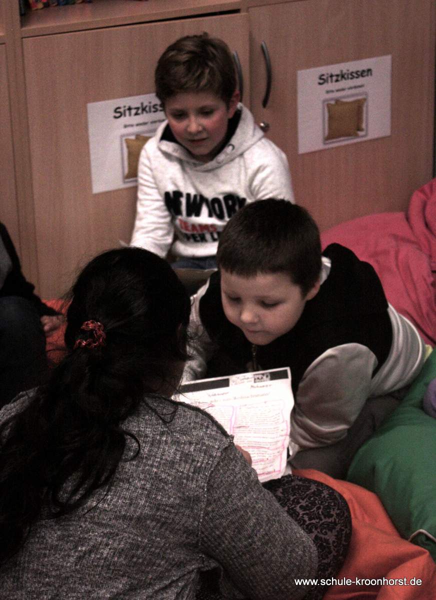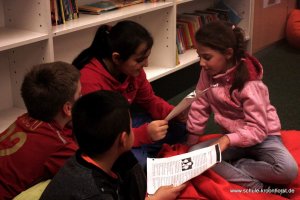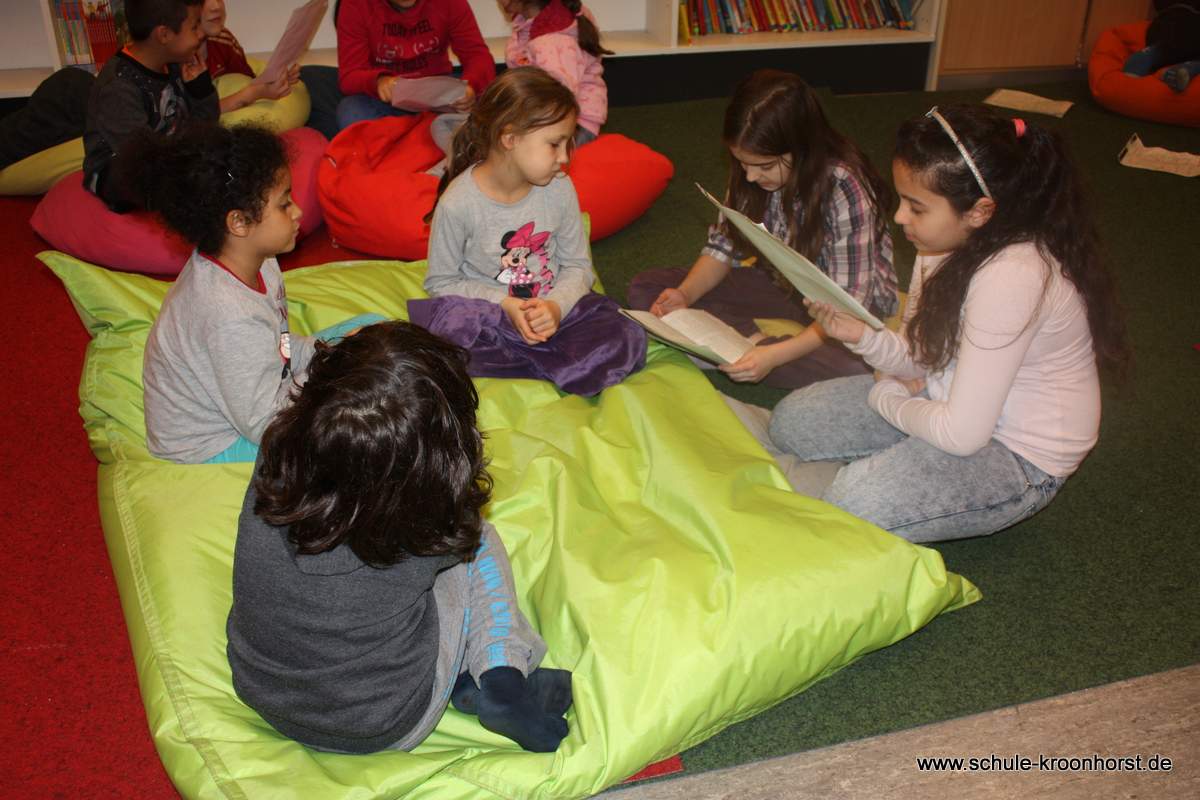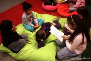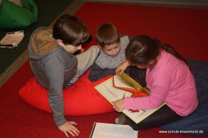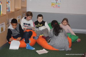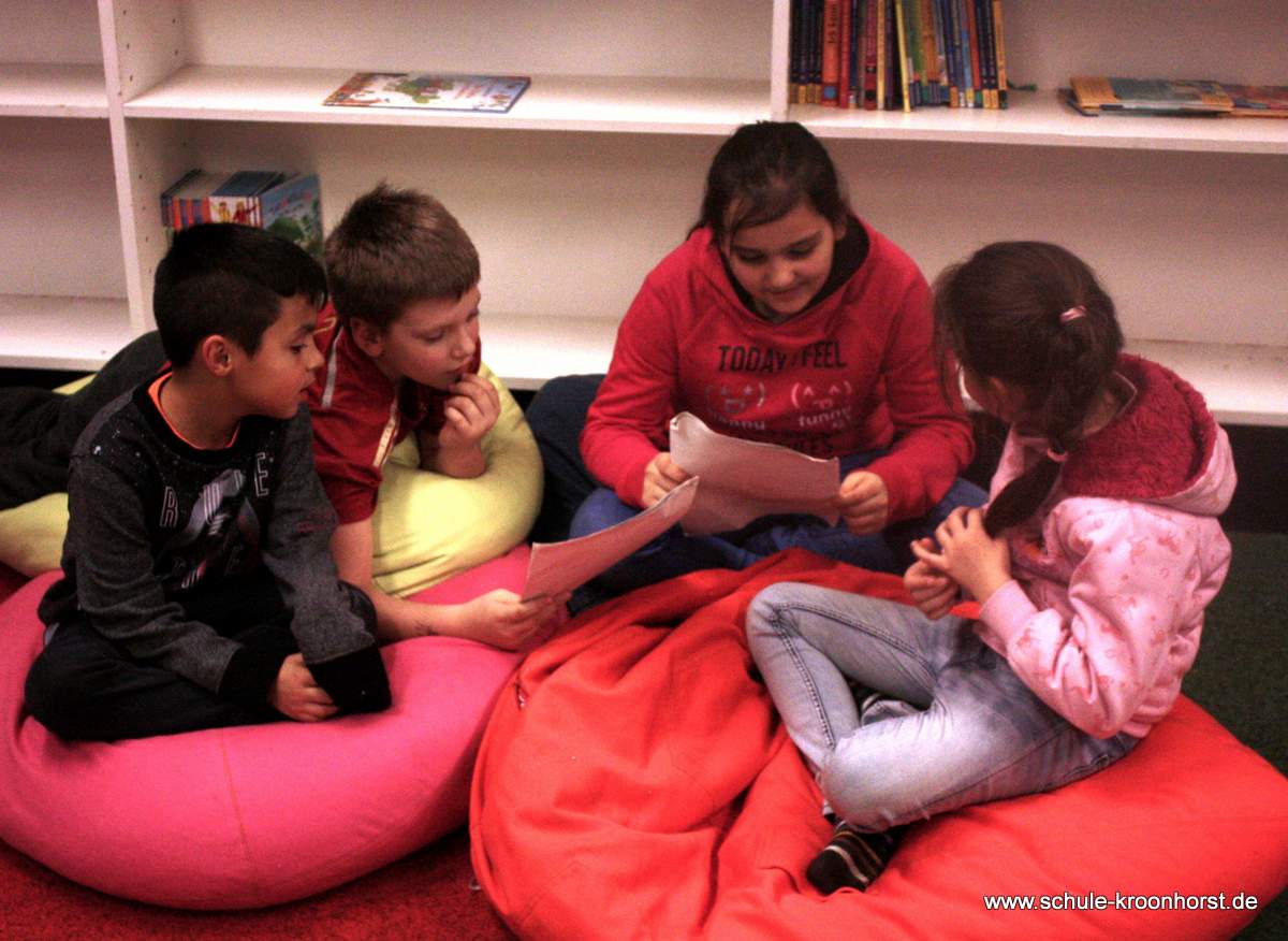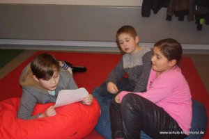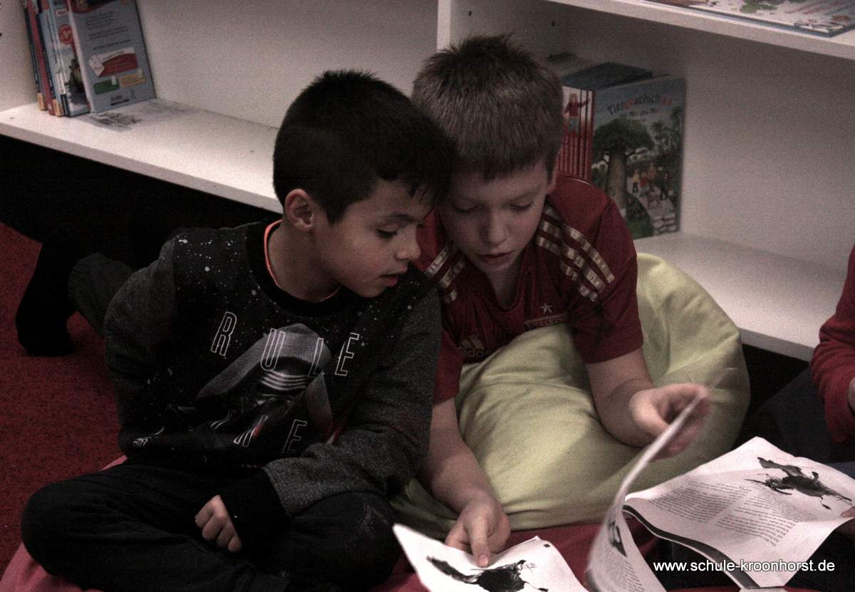 Im Computerraum wurde sich in Alfons Lernwelt getümmelt oder die Schlaumäuse wurden überlistet. In der Schülerbücherei lasen die erfahrenen Leser aus der 4b den Kindern aus der 1b vor und sie staunten und freuten sich gemeinsam über die Abenteurer aus den Geschichten.