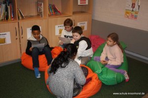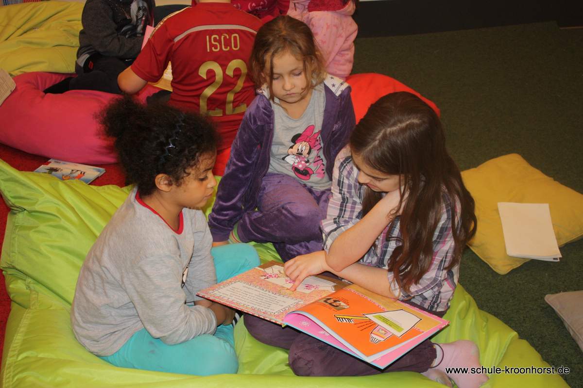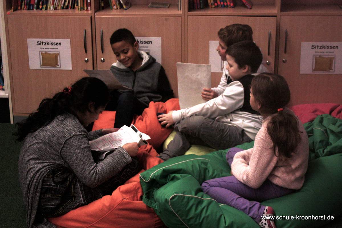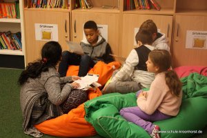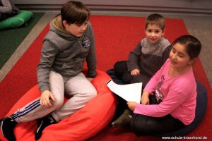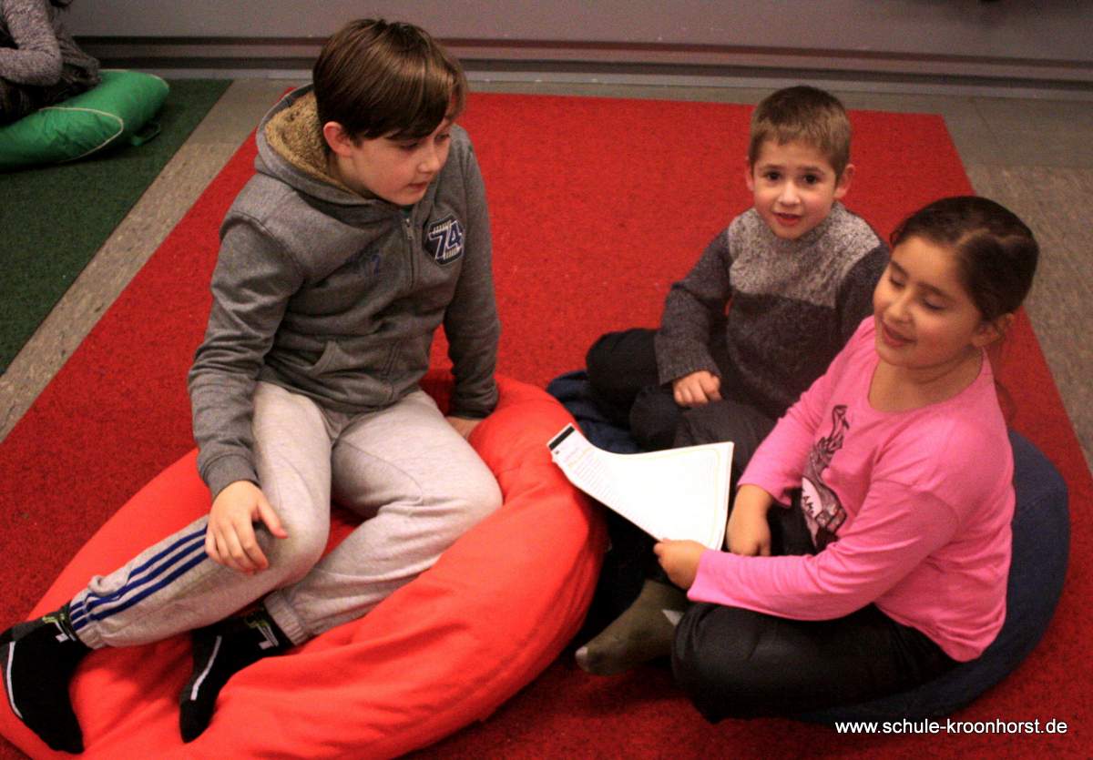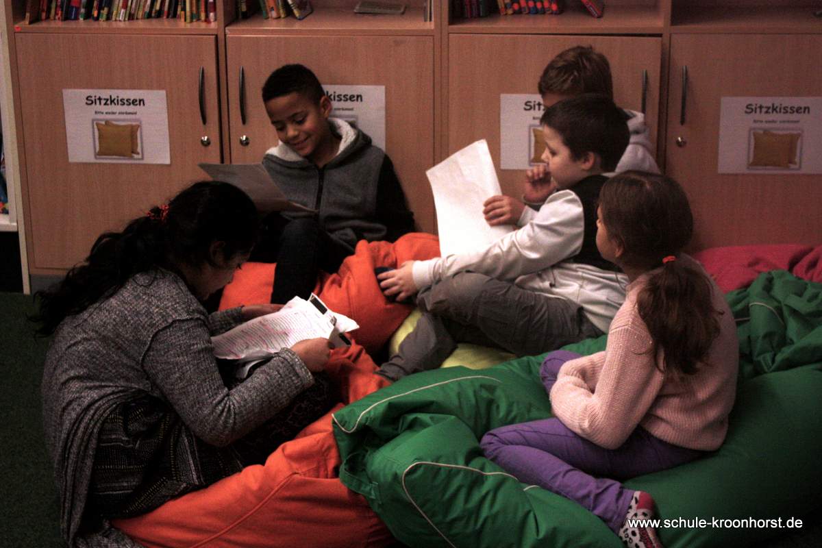 Im Computerraum wurde sich in Alfons Lernwelt getümmelt oder die Schlaumäuse wurden überlistet. In der Schülerbücherei lasen die erfahrenen Leser aus der 4b den Kindern aus der 1b vor und sie staunten und freuten sich gemeinsam über die Abenteurer aus den Geschichten.