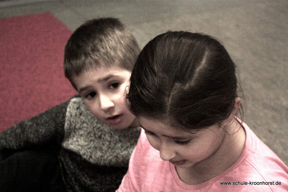 In den letzten beiden Dienstagen vor den Ferien trafen sich die 1b und 4b zum gemeinsamen Projekt. Zum Glück musste man sich nicht zwischen Computerraum und Schülerbücherei entscheiden, sondern in der ersten Woche ging es für die eine Gruppe in den Computerraum und die zweite Gruppe in die Schülerbücherei und in der zweiten Woche wurde einfach getauscht.
