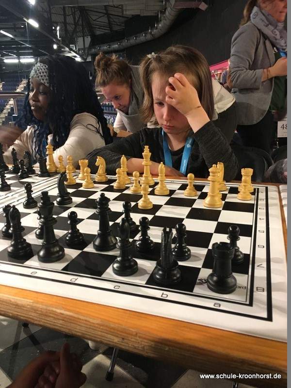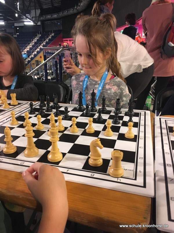 Es gab eine tolle Eröffnungsfeier, Gänsehautfeeling pur, als das Licht in der Halle erlosch und Zoe von „The Voice Kids“ auf der Bühne „Hello“ sang. Und dann ging es auch schon auf unsere Plätze zum Schach spielen.