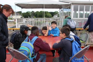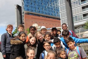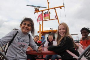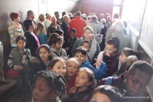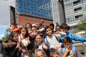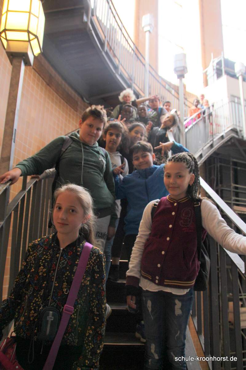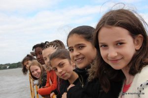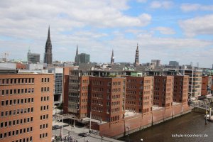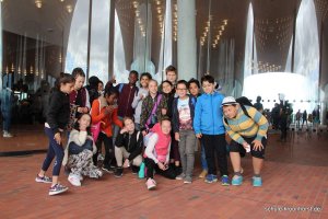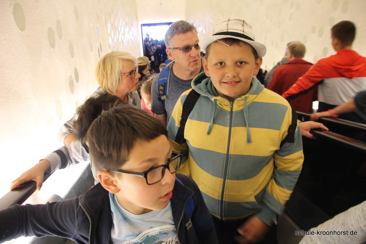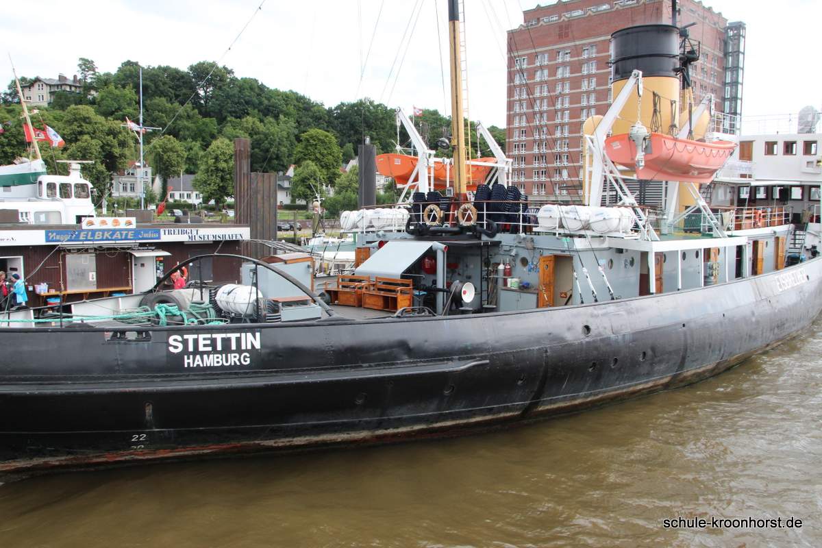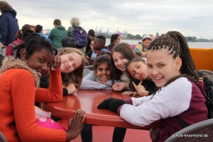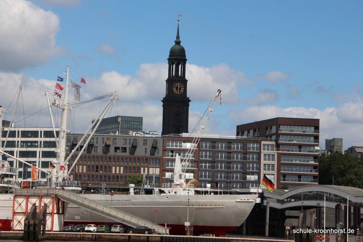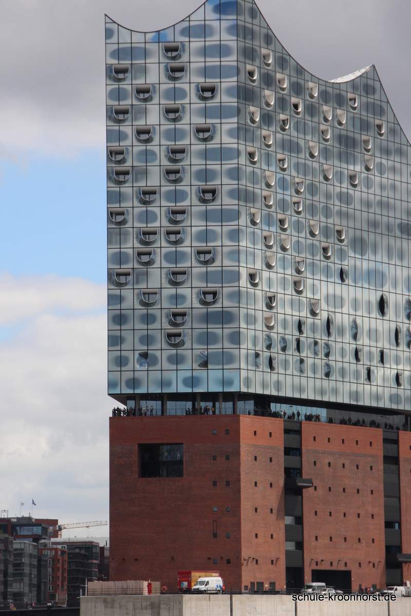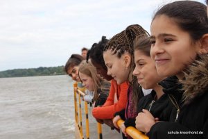 (13.07.2017) Die Klasse 4a erkundet Hamburg mit Bus, Bahn und Schiff. Start ist die Schule Kroonhorst im Osdorfer Born. Mit dem Bus Linie 21 geht's nach Teufelsbrück an die Elbe. Dort steigen wir in die HADAG Fähre 64 nach Finkenwerder. Hier müssen wir raus und weiter geht's mit der HADAG Linie 62 Richtung St. Pauli Landungsbrücken. Wir sehen viel Schiffsverkehr, Trockendocks mit zu reparierenden Schiffen, den Bagger "Alexander von Humboldt", die "Stettin" - einen Eisbrecher und natürlich die Elbphilharmonie. Es ist also viel los auf der Elbe. Das Wetter spielt mit und alle haben gute Laune.