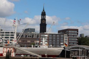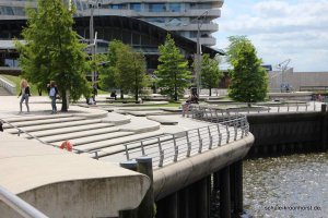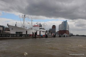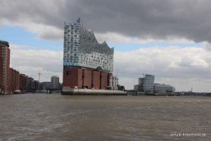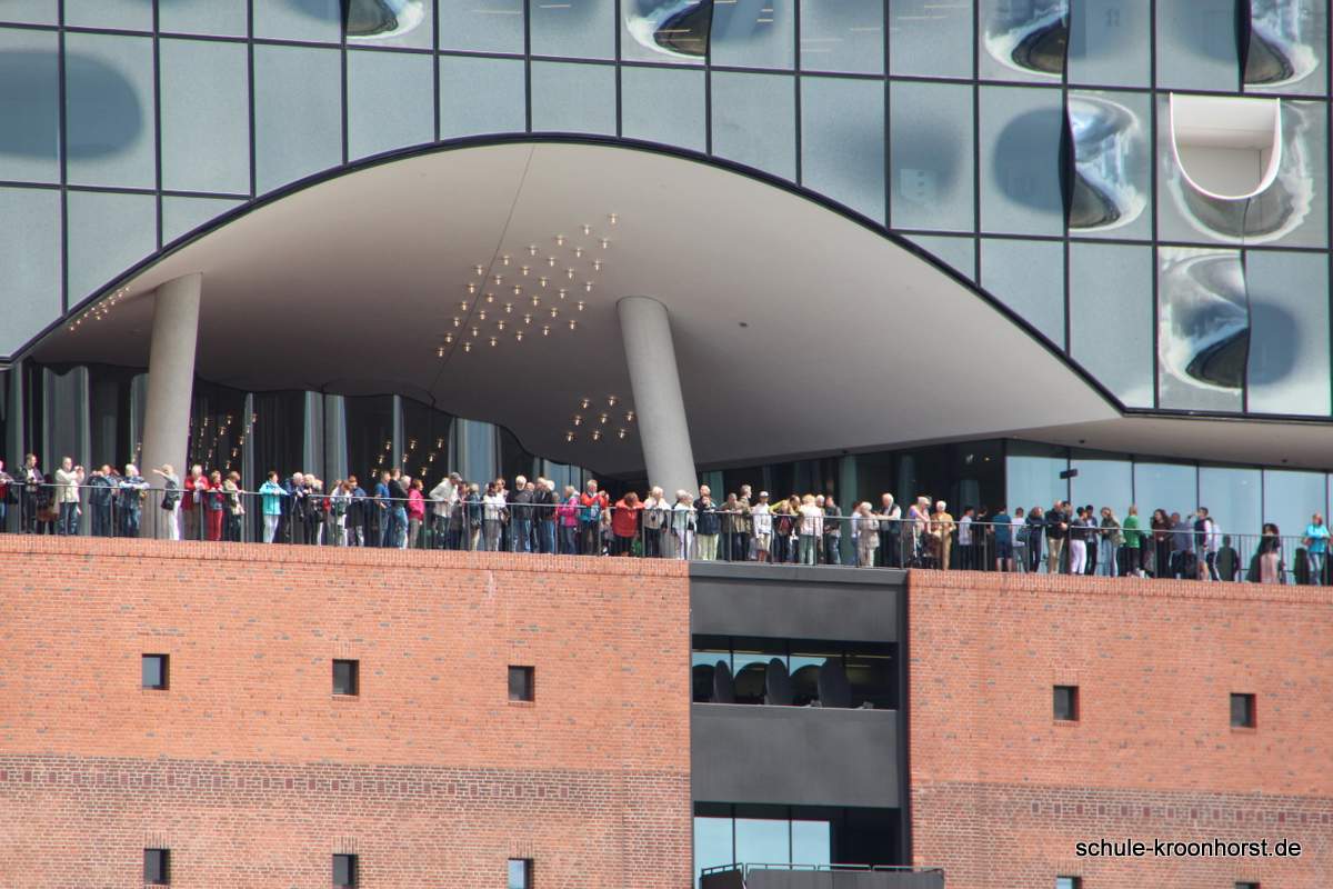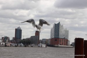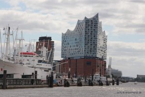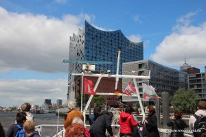 Auf der Südseite der Elbe stärken wir uns ersteinmal bevor wir dann auch mit der Hadag zur Elbphilharmonie. Wir sehen die imposante Elfi und haben Glück, denn der Andrang ist zwar groß aber trotzdem können wir auf die Plazza. Von dort haben wir einen tolle Aussicht auf den Hafen und die HafenCity.
