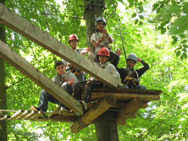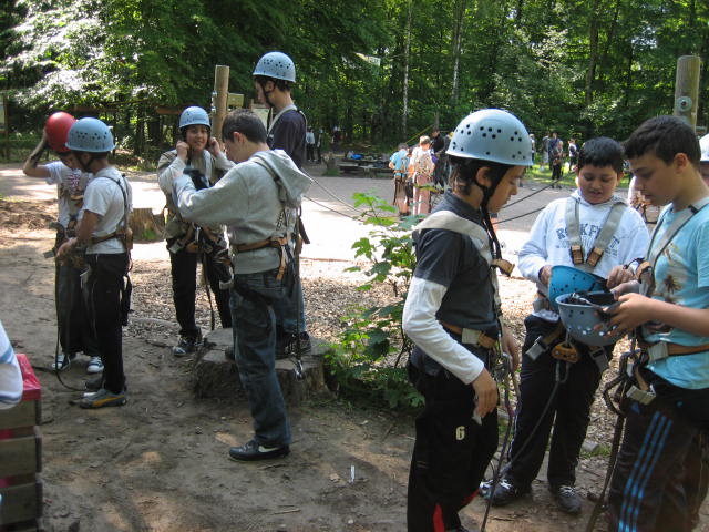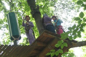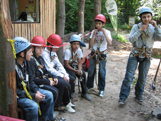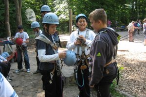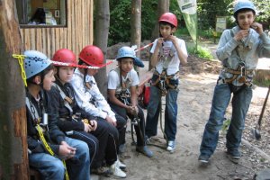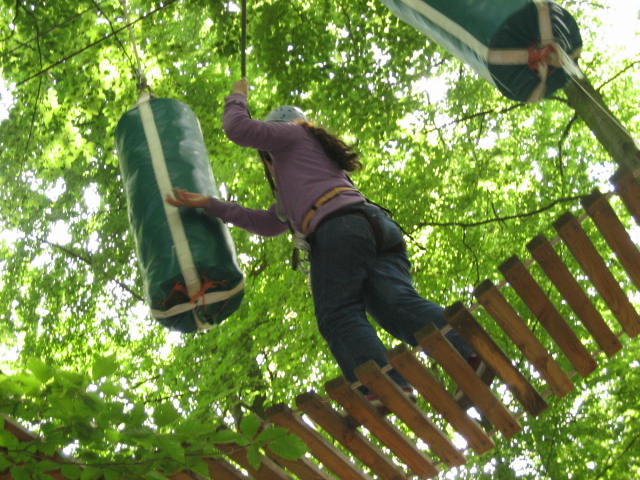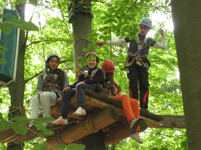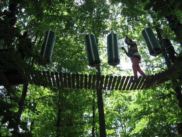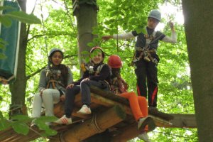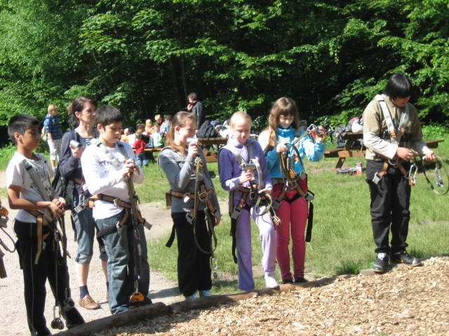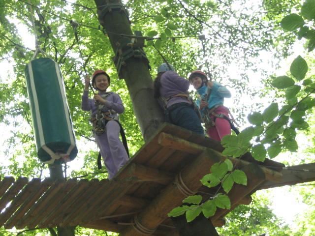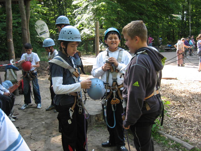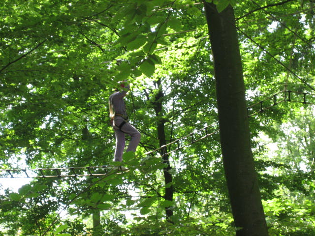 Am 22.06.10 waren wir im Kletterwald in Volksdorf. Wir sind mit dem HVV gefahren. Im Kletterwald zeigte uns ein netter Mann, wie man den Klettergurt anlegt. Wir bekamen noch Helme, und dann ging´s los!