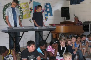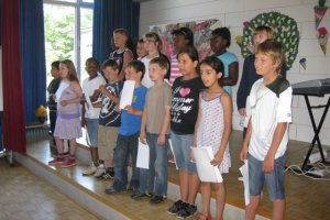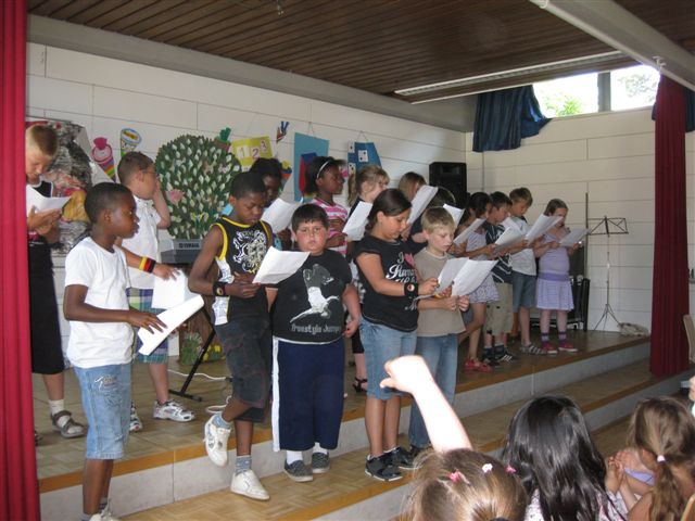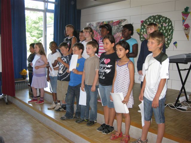 (Kro, 7. Juli 2010) Mit einem bunten Programm wurde das Schuljahr 2009/10 an der Schule Kroonhorst beendet. Viele Kinder sangen Lieder, erzählten Gedichte oder spielten auf ihren Instrumenten. Zum Schluss stimmten wieder alle Kroonhorster mit ein, als Herr Kirchner „Geh aus mein Herz …“ anstimmte. Nun konnten die Ferien beginnen.