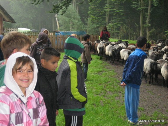 Lustiges oder auch frustrierendes Bettenbeziehen, ständige lustige oder auch frustrierende Zimmerbesuche, leckeres Essen mit strengen Benimmregeln, Hütten bauen aus Stöckern im Wald, die „Glatze“ rauf- und runterlaufen, Schafherden beobachten, über Heidschnucken lernen, durch die Heidelandschaft wandern und Blaubeeren naschen, Fliegen- und andere Pilze und Pflanzen bewundern, Wanderstöcke suchen und bearbeiten, zum Wildpark „Schwarze Berge“ wandern, dort ganz viele tolle Tiere beobachten und auf dem Spielplatz spielen, Würstchen grillen, Tagebuch führen oder auch nicht, an die Familie schreiben oder auch nicht, Spiele spielen, schön warm duschen und es sich unter der zerknüllten Bettdecke gemütlich machen – was kann es Schöneres geben, seufz??!!