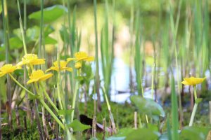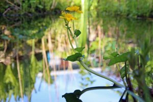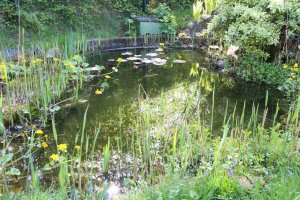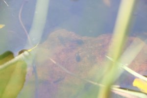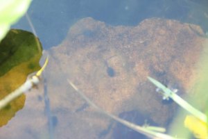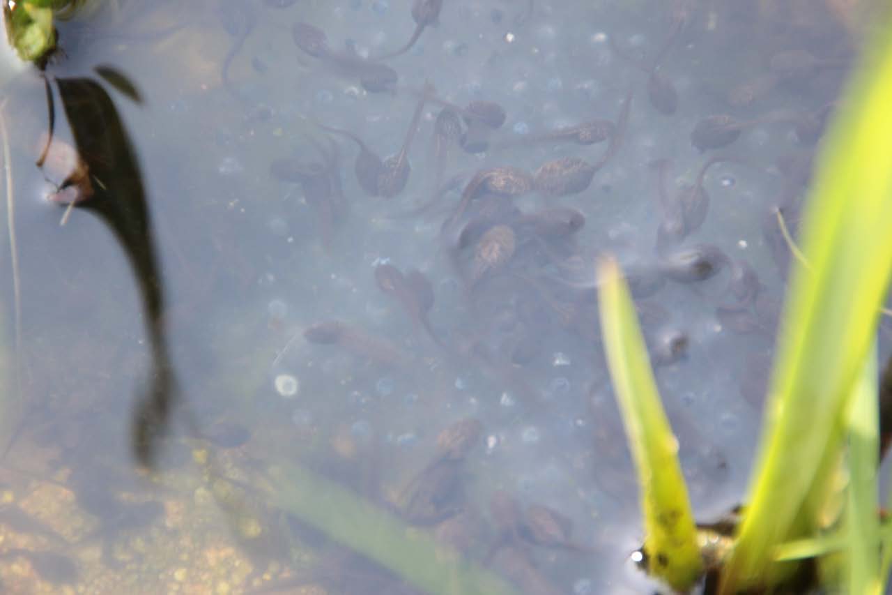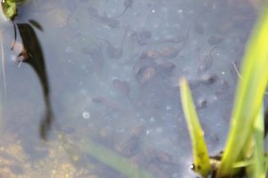 Es gibt inzwischen richtig viel Froschlaich. Wir haben gelernt, dass jedes Froschweibchen ca. 3000 Eier legt. In den Eiern haben die Kaulquappen schon die richtige Form. Sie sehen wie schwarze Striche aus. Sie sind aber noch nicht geschlüpft. Einige bewegen sich sogar ein wenig. Frösche haben wir diesmal nur 1 bis 2 gesehen. Sie sind wohl im Schlamm versteckt. Wir haben auch Wasserläufer gesehen. Sie können echt auf dem Wasser laufen. Die Blätter der Seerosen auf dem Wasser sind größer geworden. In den Beeten sind noch mehr Osterglocken und Hyazinthen (einige sind inzwischen verblüht) und auch alle anderen Büsche und Sträucher sind richtig grün geworden.