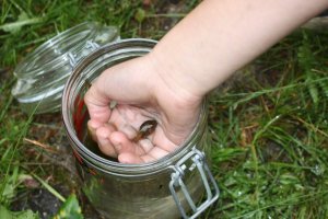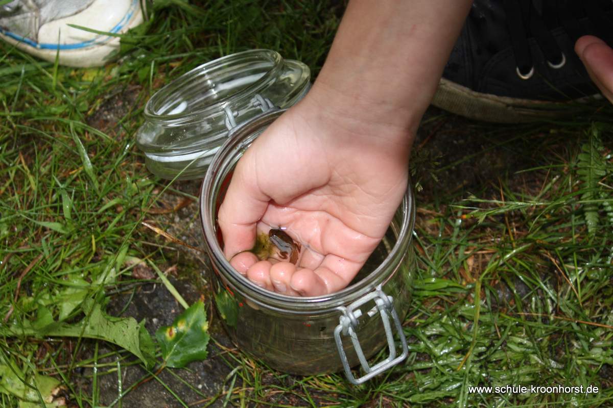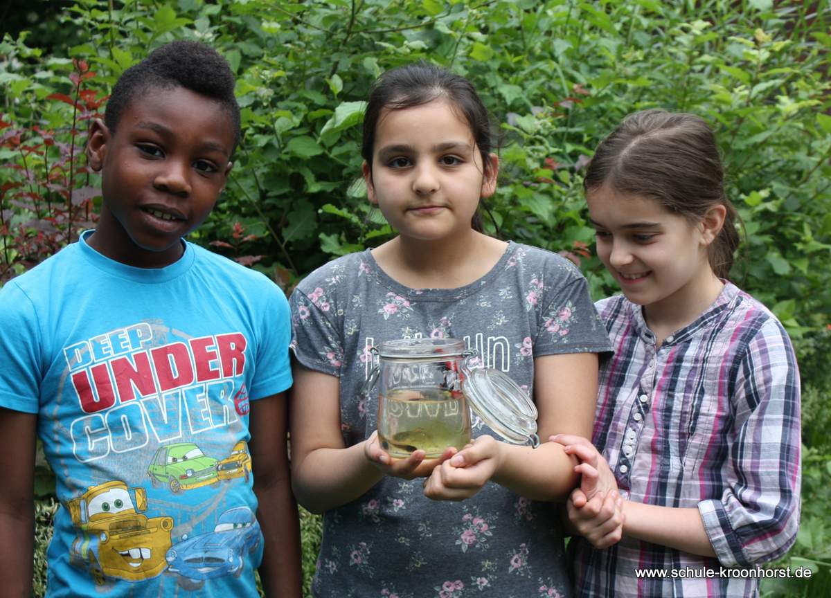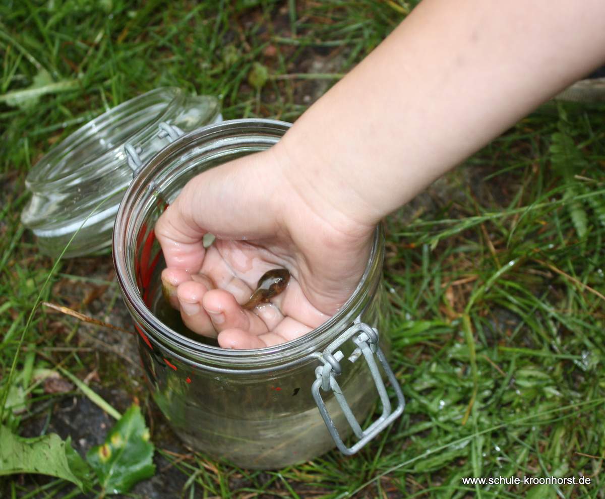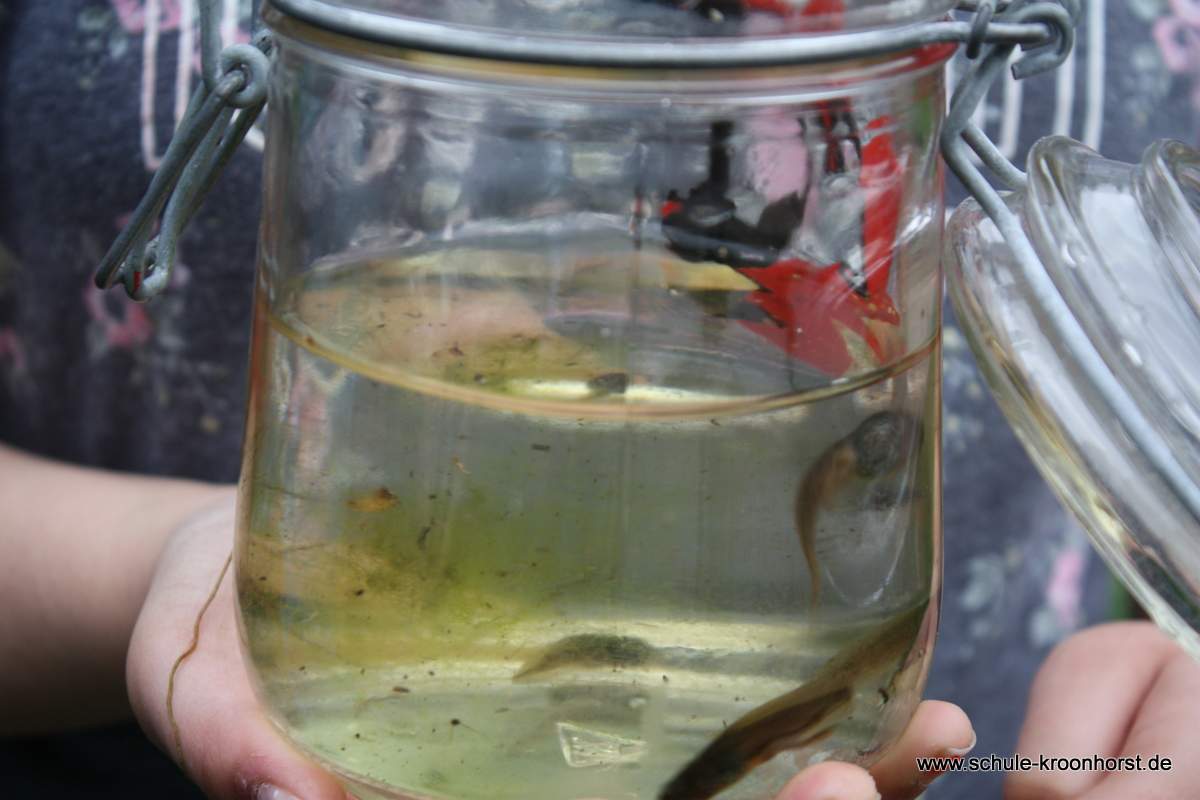 Toll sehen unsere Kaulquappen aus – haben zum Teil schon Hinterbeine. Und fast alle Kinder der Schule haben sie gesehen (im Glas) und waren begeistert, ODER??? Roland und Jason, Theresa und Zahra sind durch die Klassen gegangen.