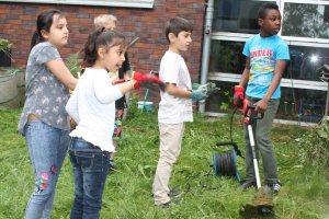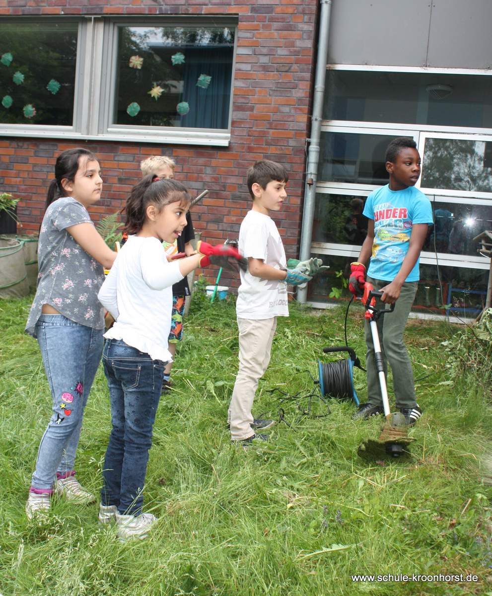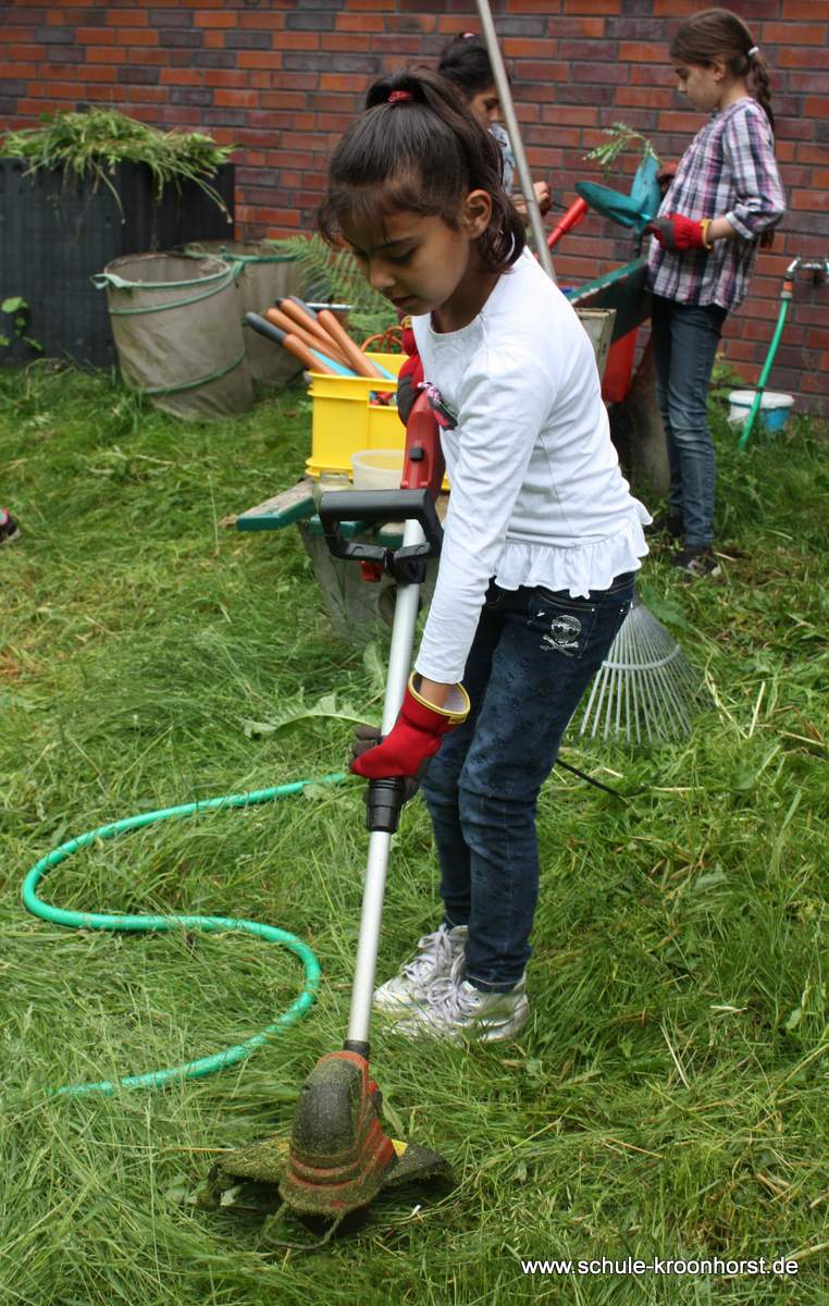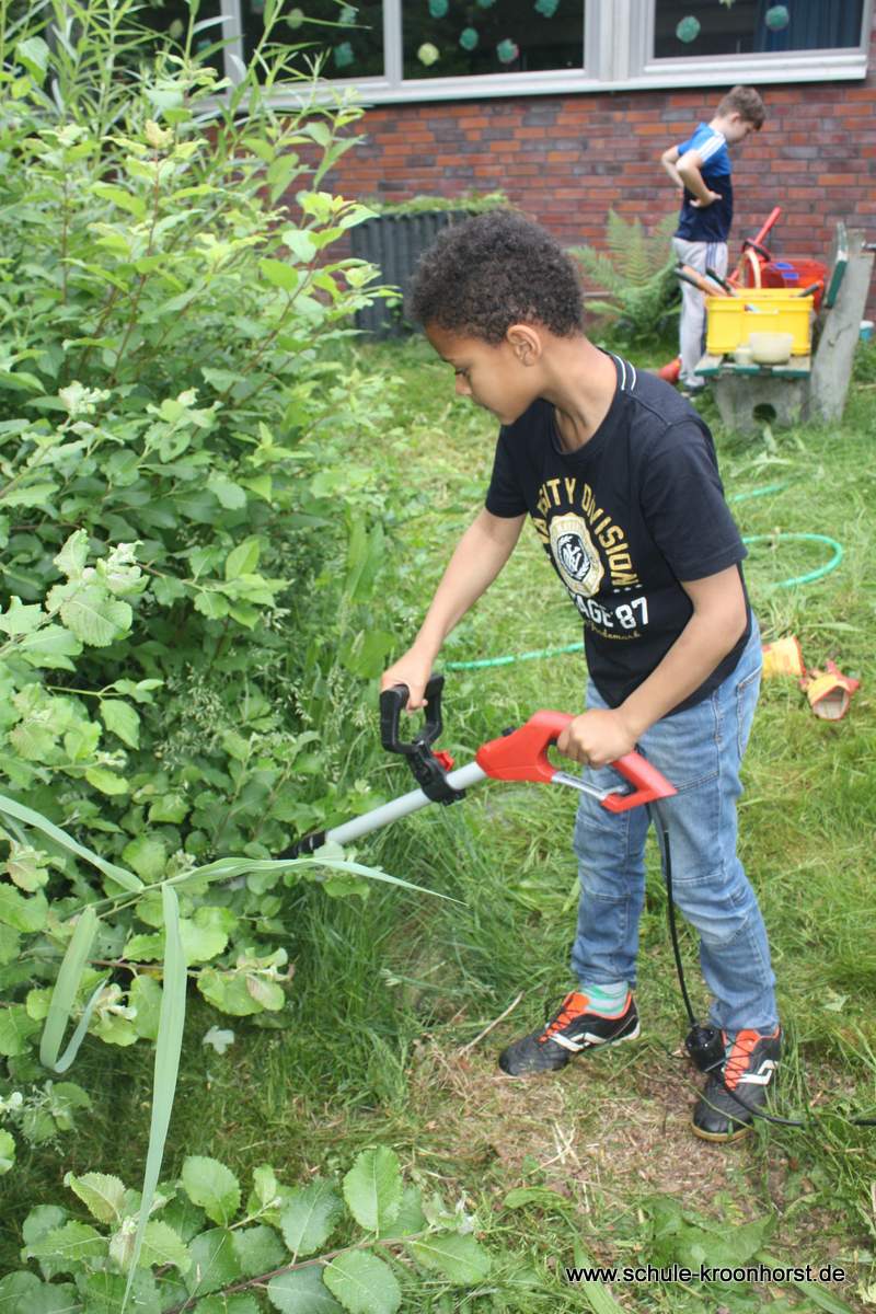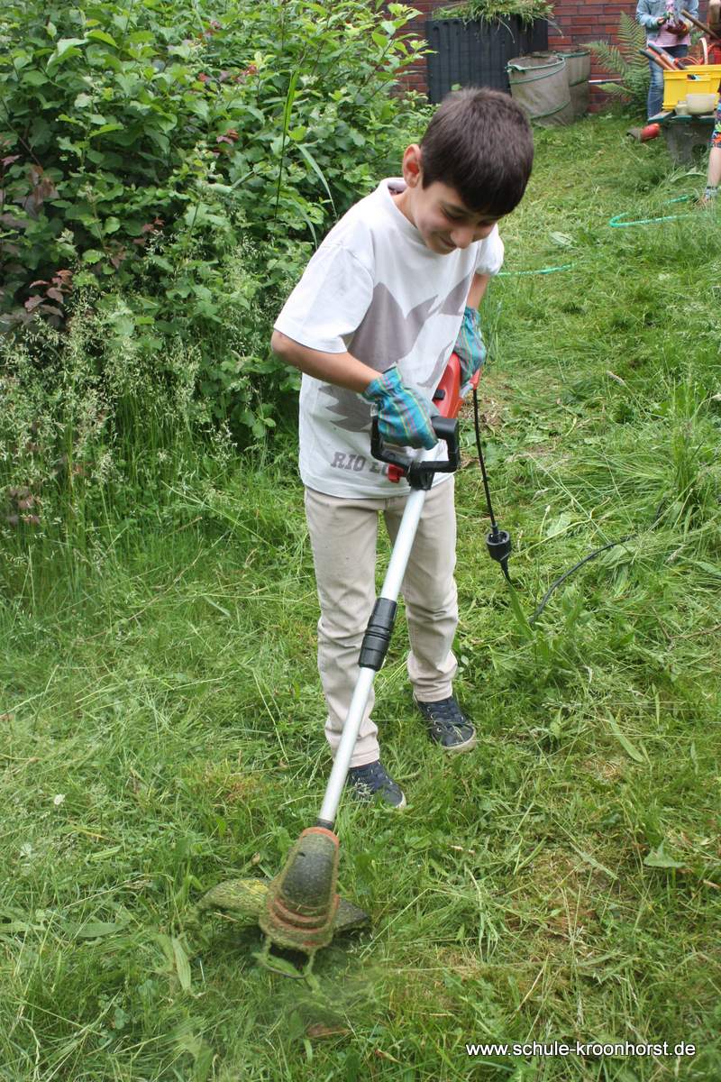 Heute muss der Rasen getrimmt werden. Wie schön, dass so viele Kinder mitgeholfen haben. Sieht doch jetzt wieder ganz schön aus. Nächste Woche steht dann Unkraut jäten auf dem Programm und wieder die Pumpe reinigen.