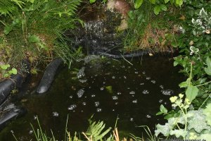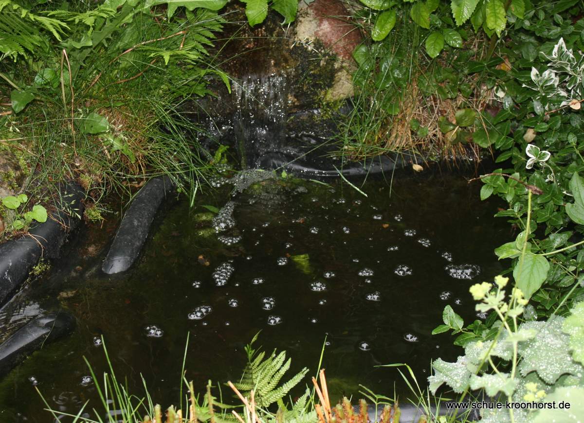 Die Pumpe läuft seit Montag und Fische und Frösche/Kaulquappen und anderes Wassertiere freuen sich. Die Filter waren ganz schön verdreckt.