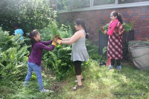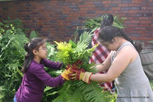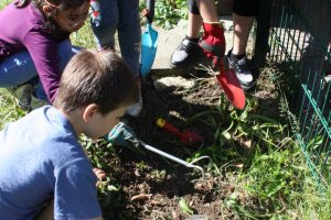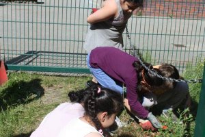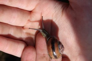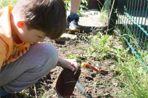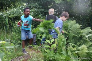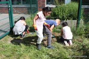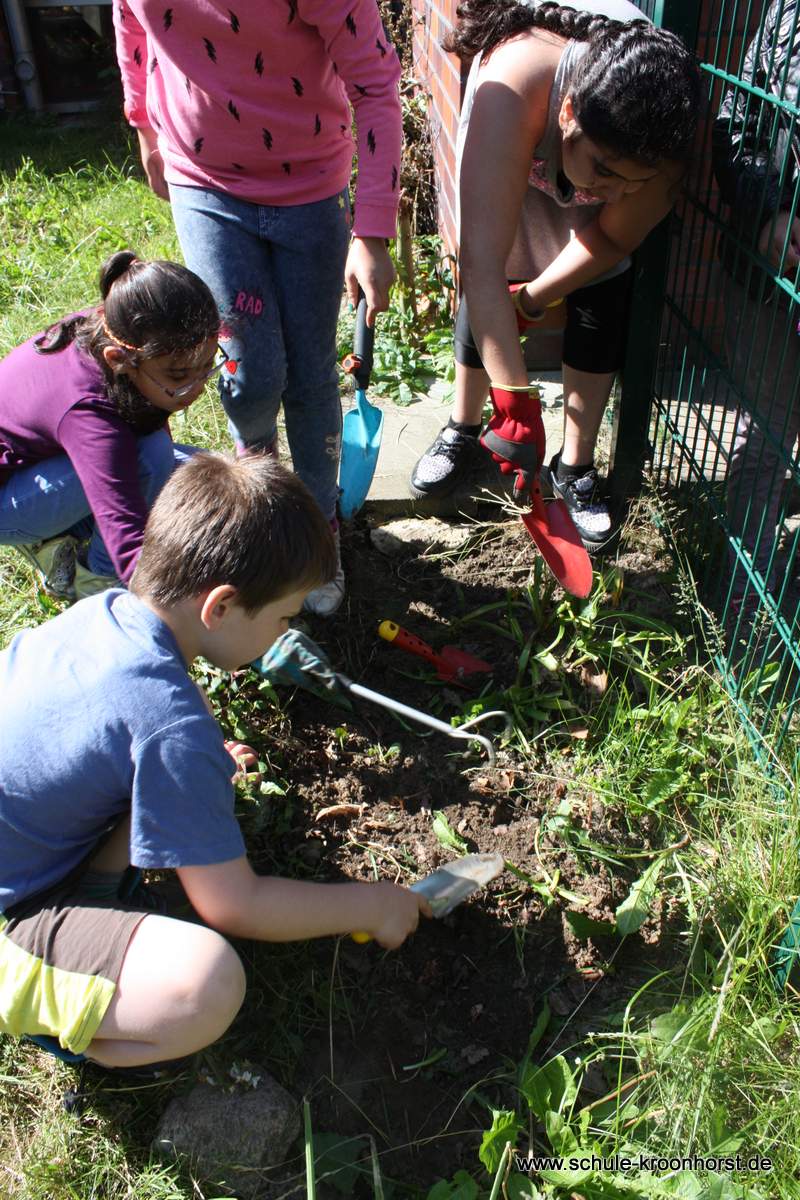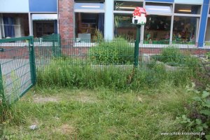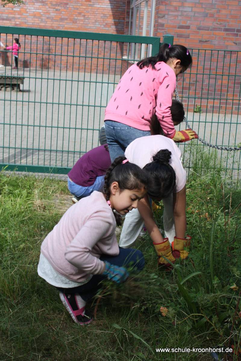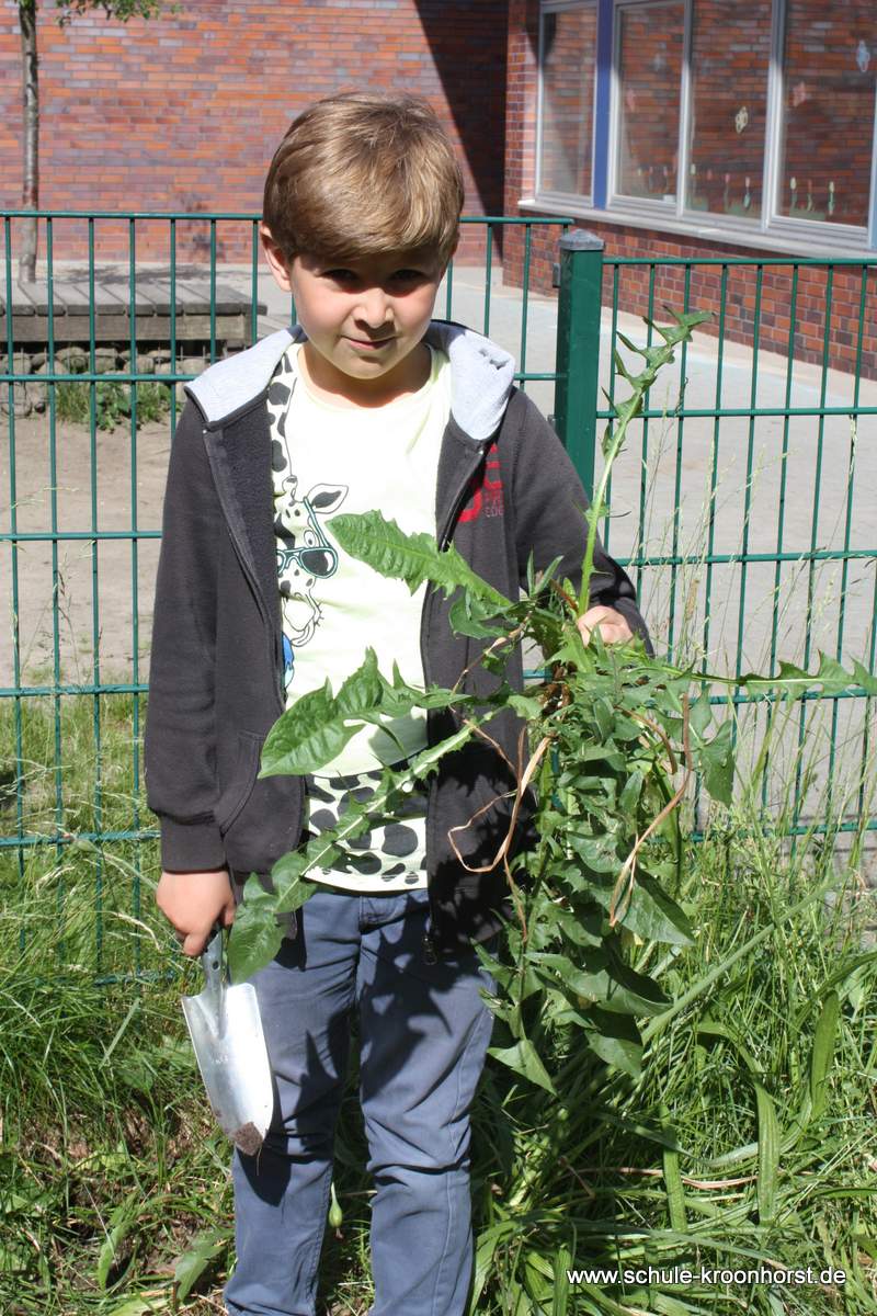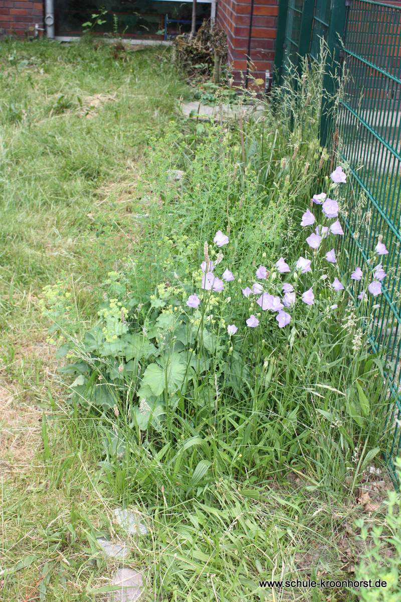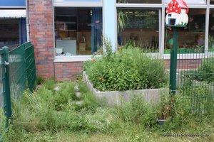 Auf den Beeten am Schulteich wuchert weiter das Unkraut, aber Einiges haben die Kinder schon entfernt. Dabei tauchten viele Schnecken auf. Schön, oder? Weitere Tiere lassen sich trotz Arbeit sehen : Am „Bachlauf“ badete ein Rotkehlchen. Eine Kröte haben wir aus dem Pumphaus befreit. Die jungen Meisen fiepsen in den Rosensträuchern. Ein schönes Biotop unser Schulteich!