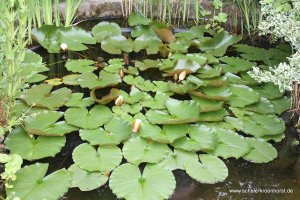 Im Teich blühen inzwischen die Seerosen. Leider war es etwas bedeckt;bei Sonnenschein blühen sie dann richtig auf. – Vielleicht in der nächsten Woche!
